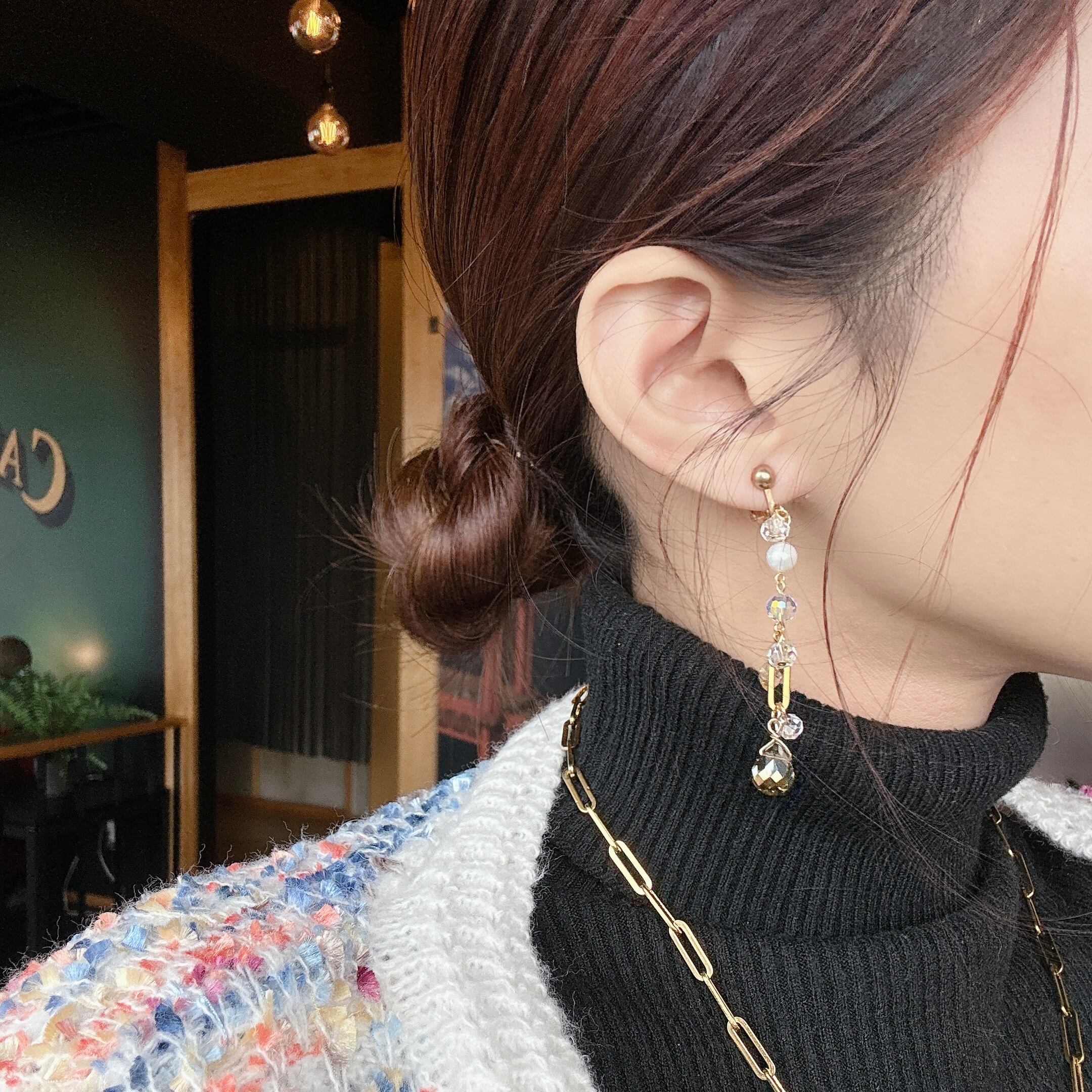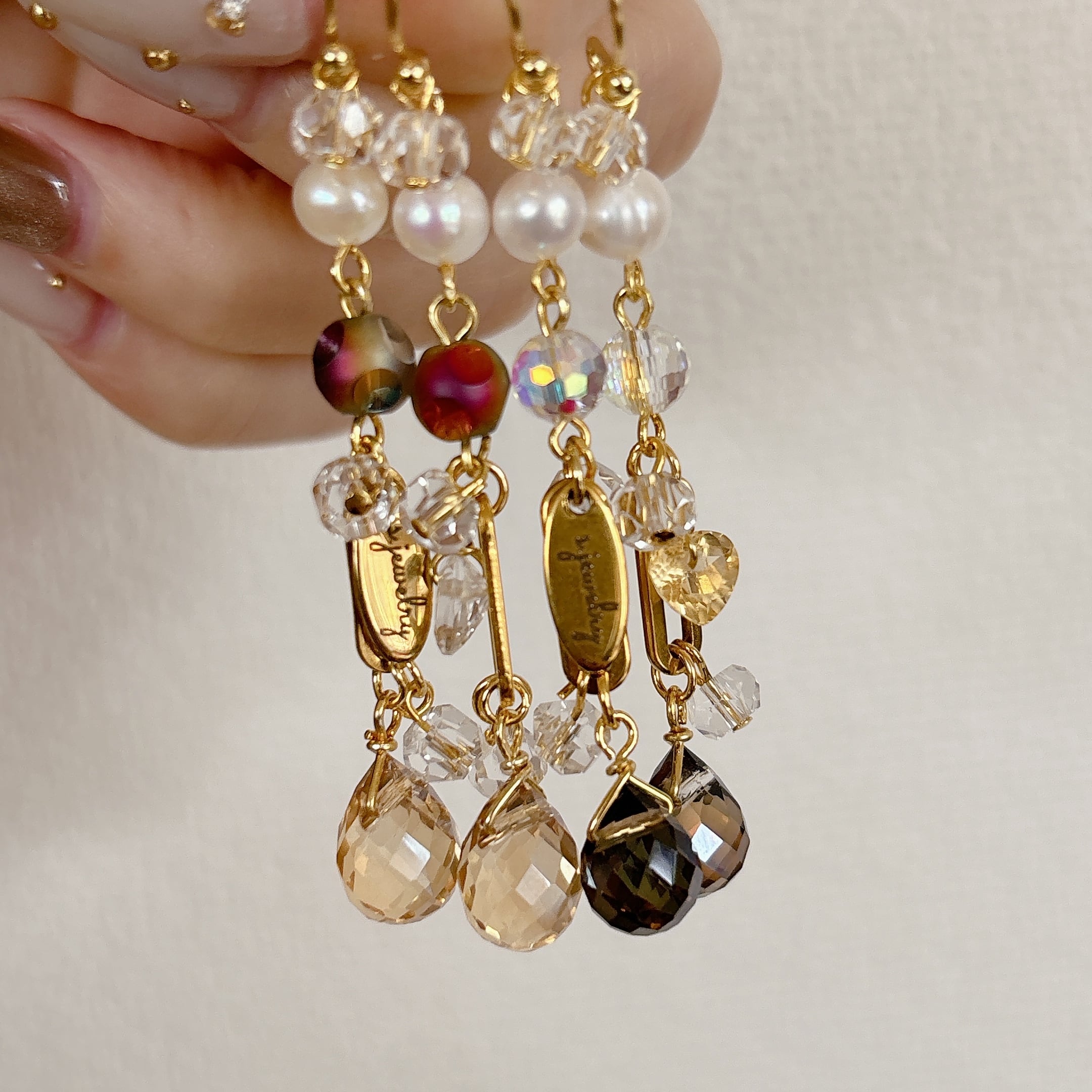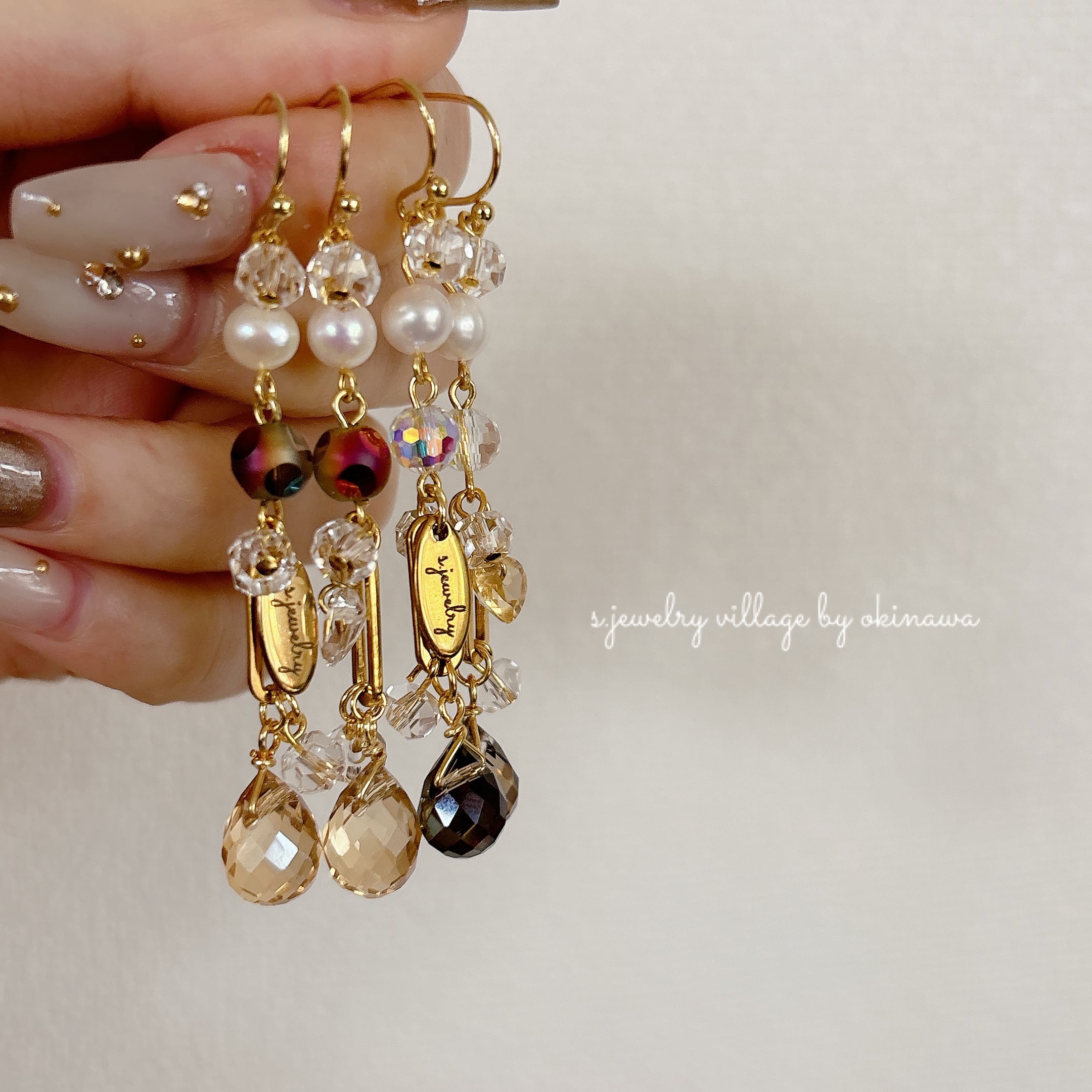 ミックスピアス(ロング)|洗練カジュアル×天然石【アレルギー対応】