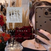 淡水パール×スネークチェーンピアス|mulchwayで4通り【金属アレルギー対応】