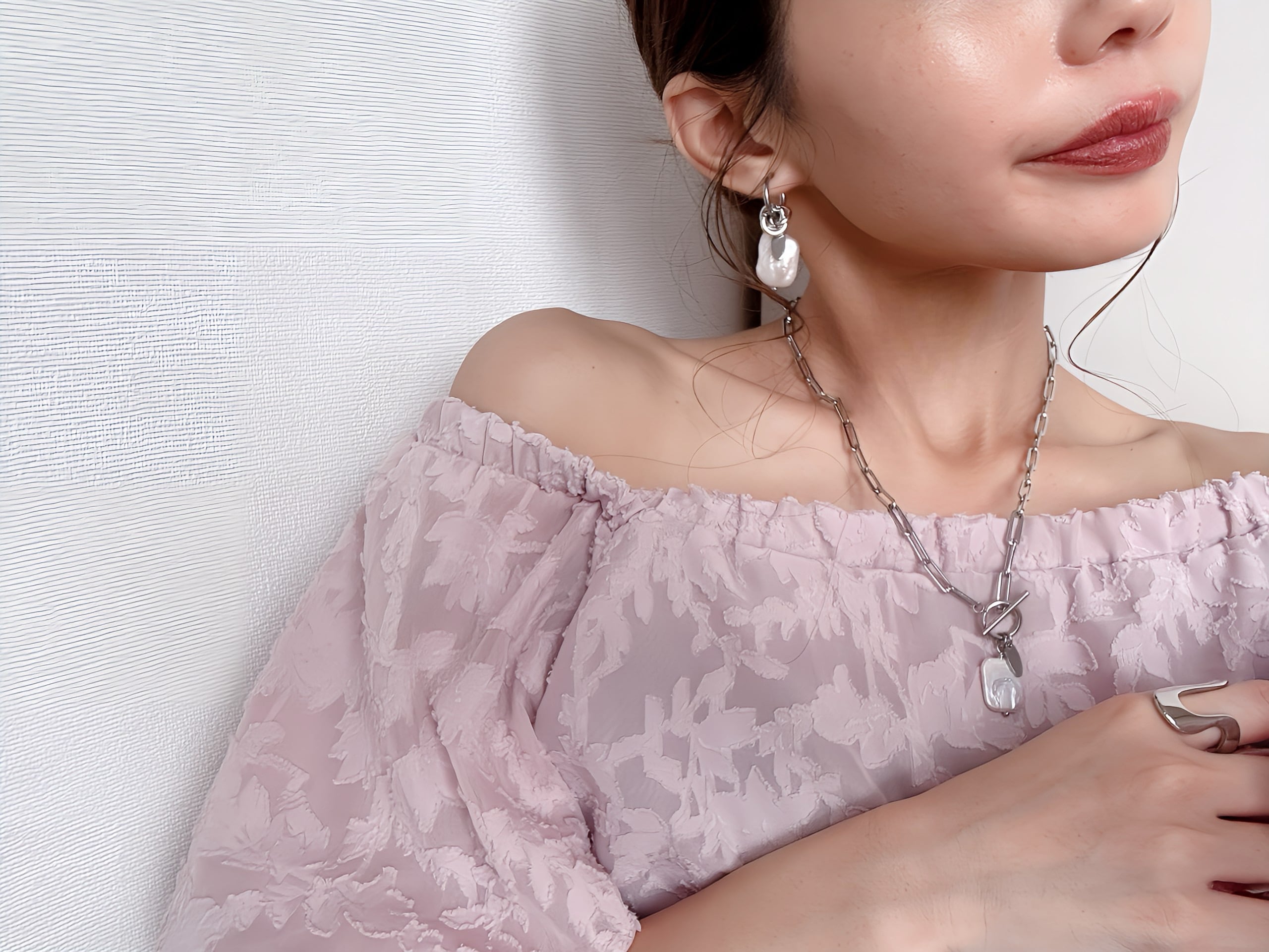 存在感大ネックレス / 大振りネックレス / 淡水パールネックレス / お呼ばれ / 結婚式 / ceremony / occasion / デニムコーデ / カジュアルコーデ / ブラウスコーデ
