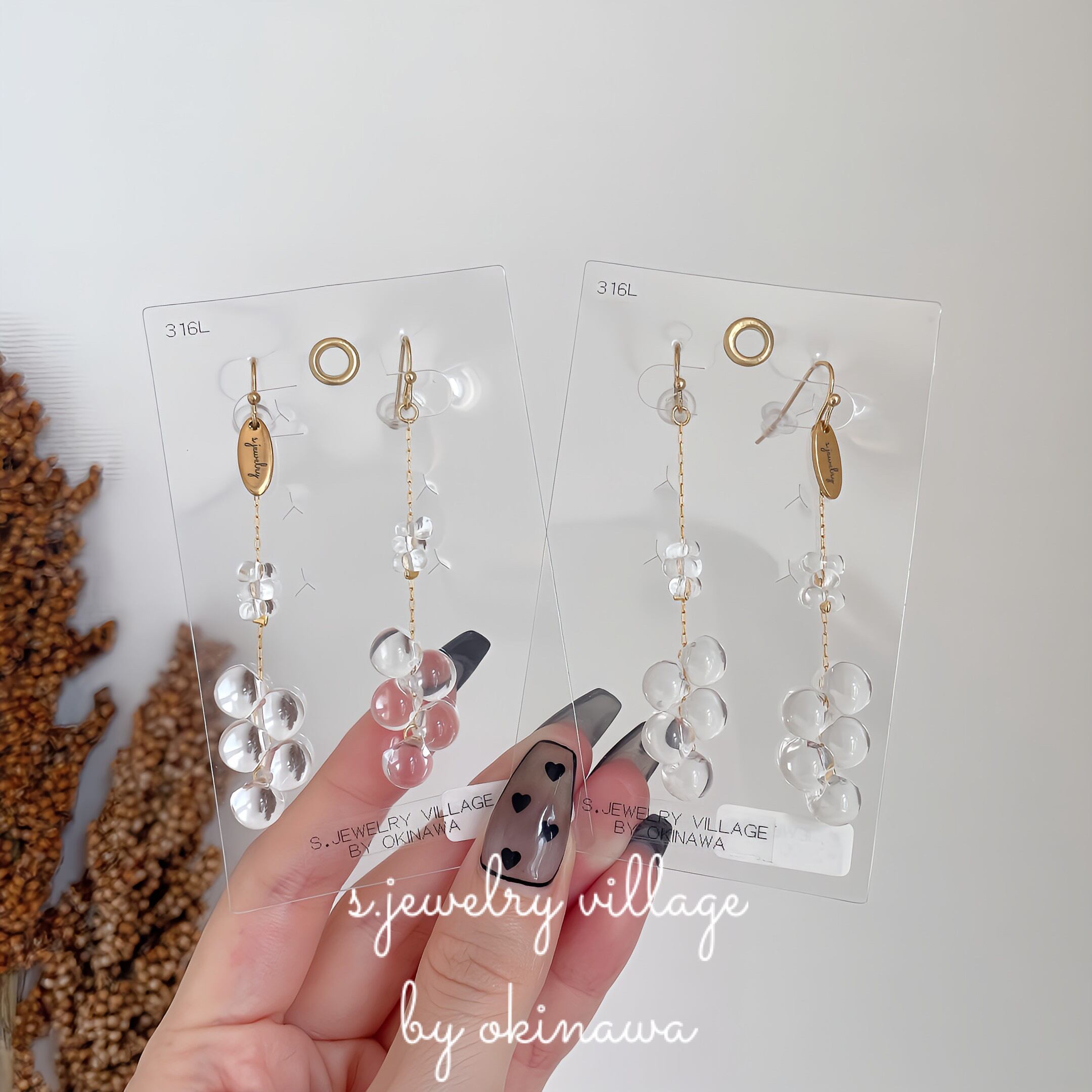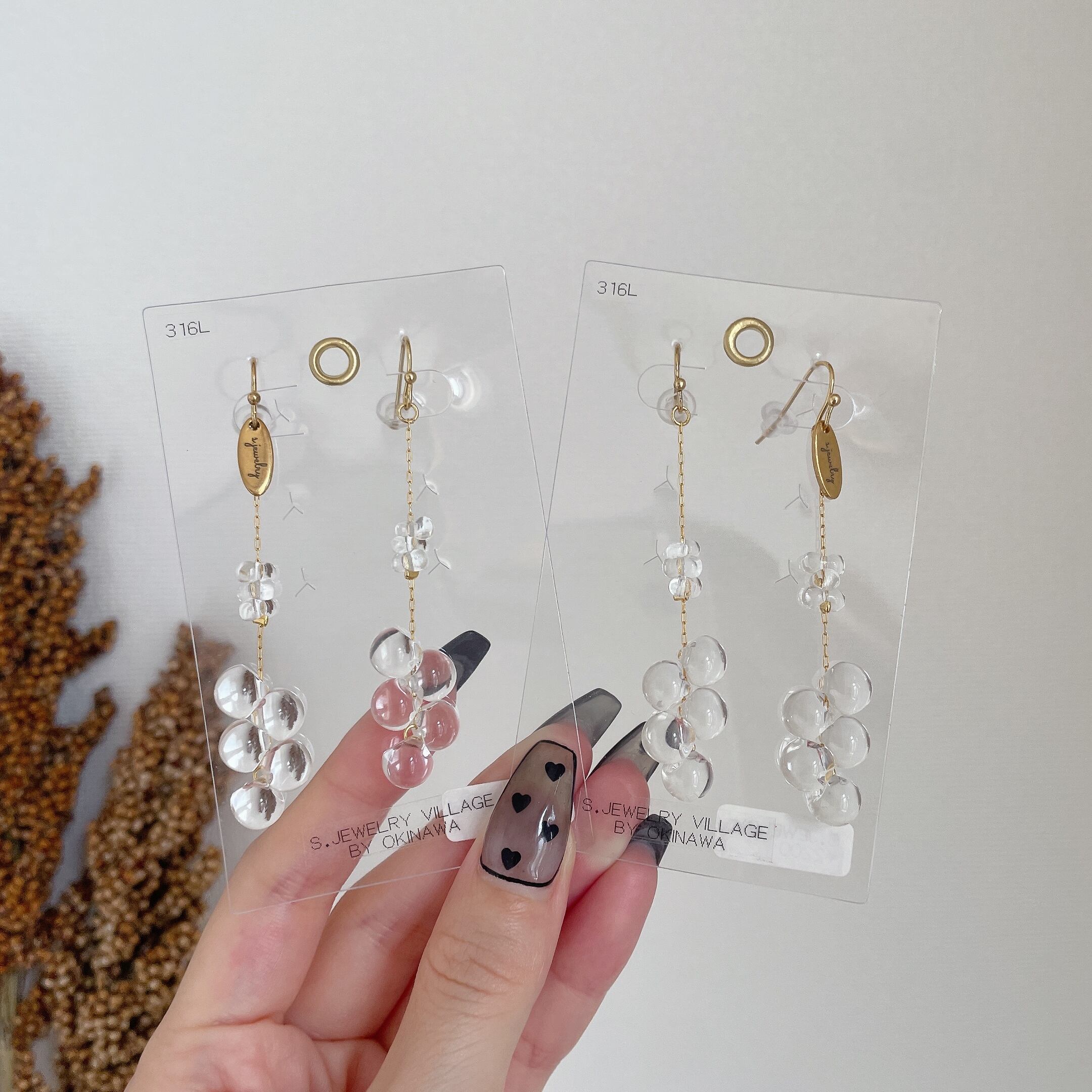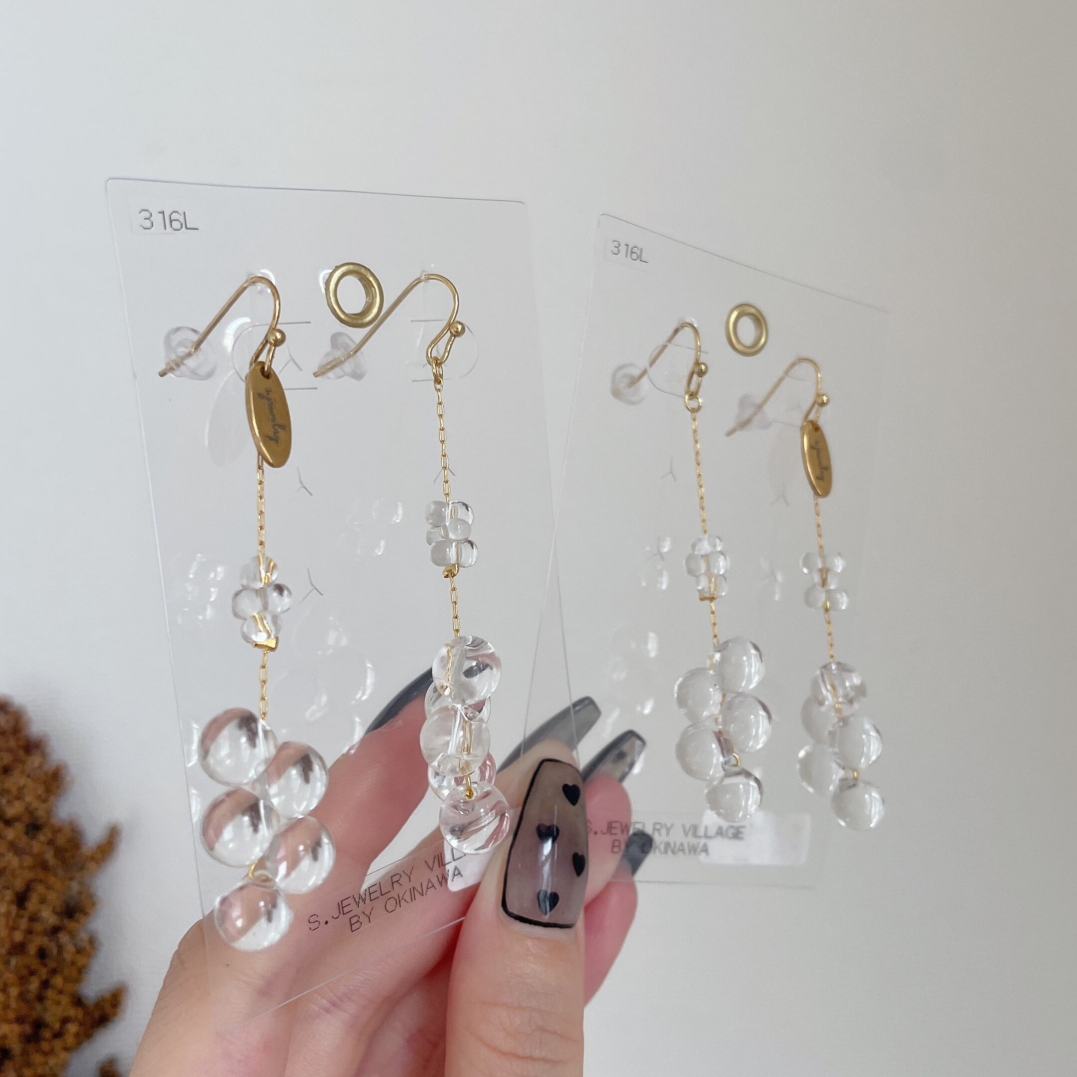 クリアビーズロングピアス | 上品な揺れ×軽量【金属アレルギー対応】