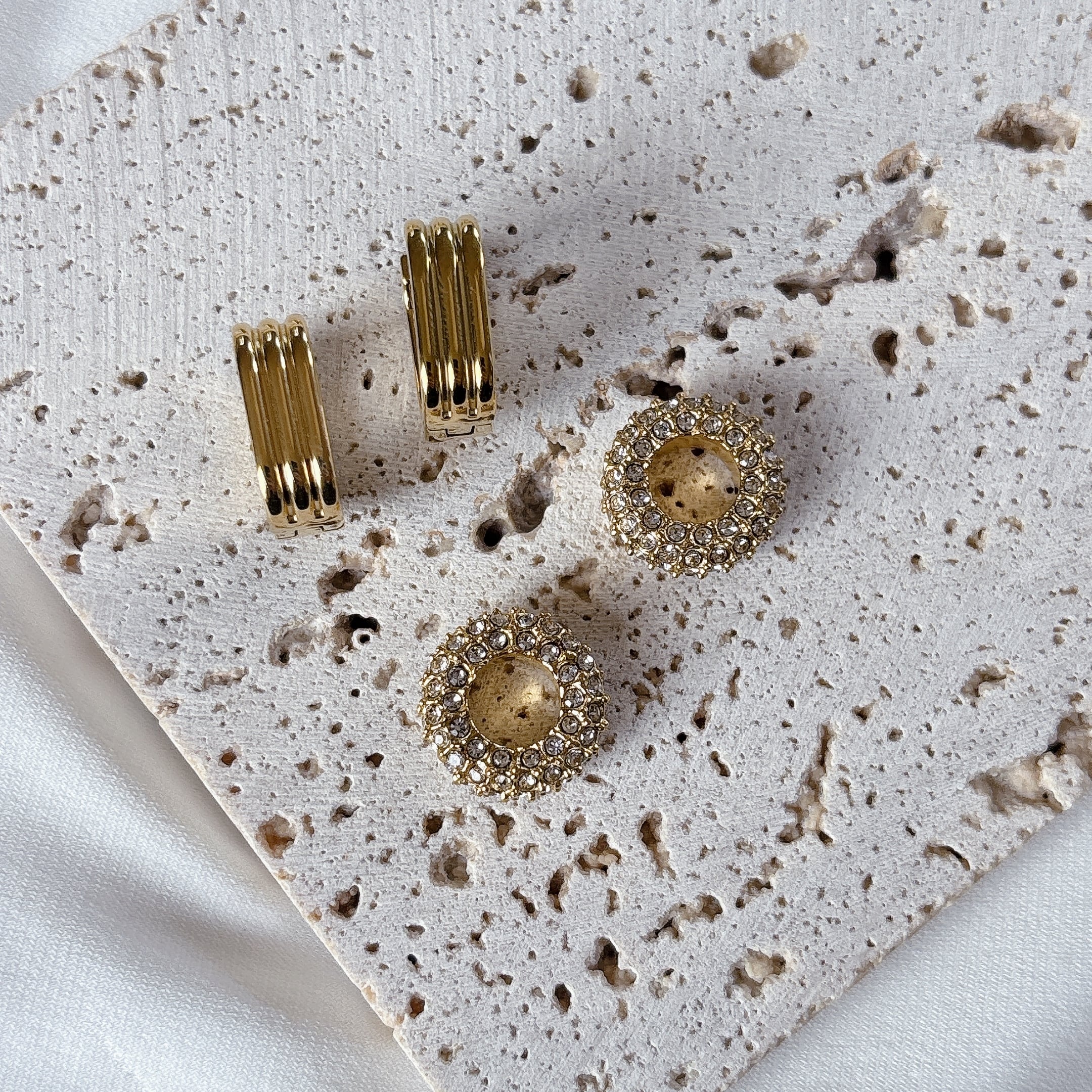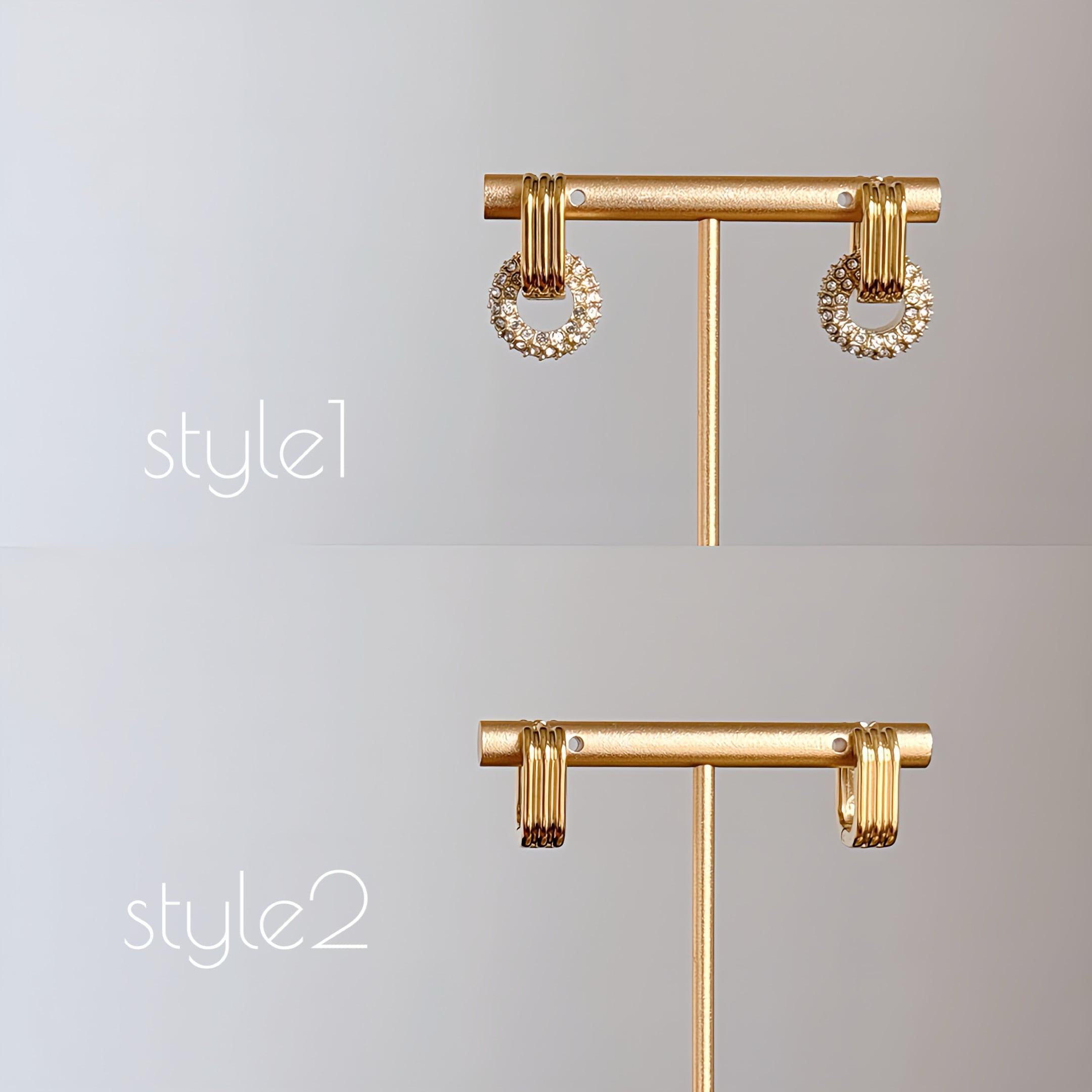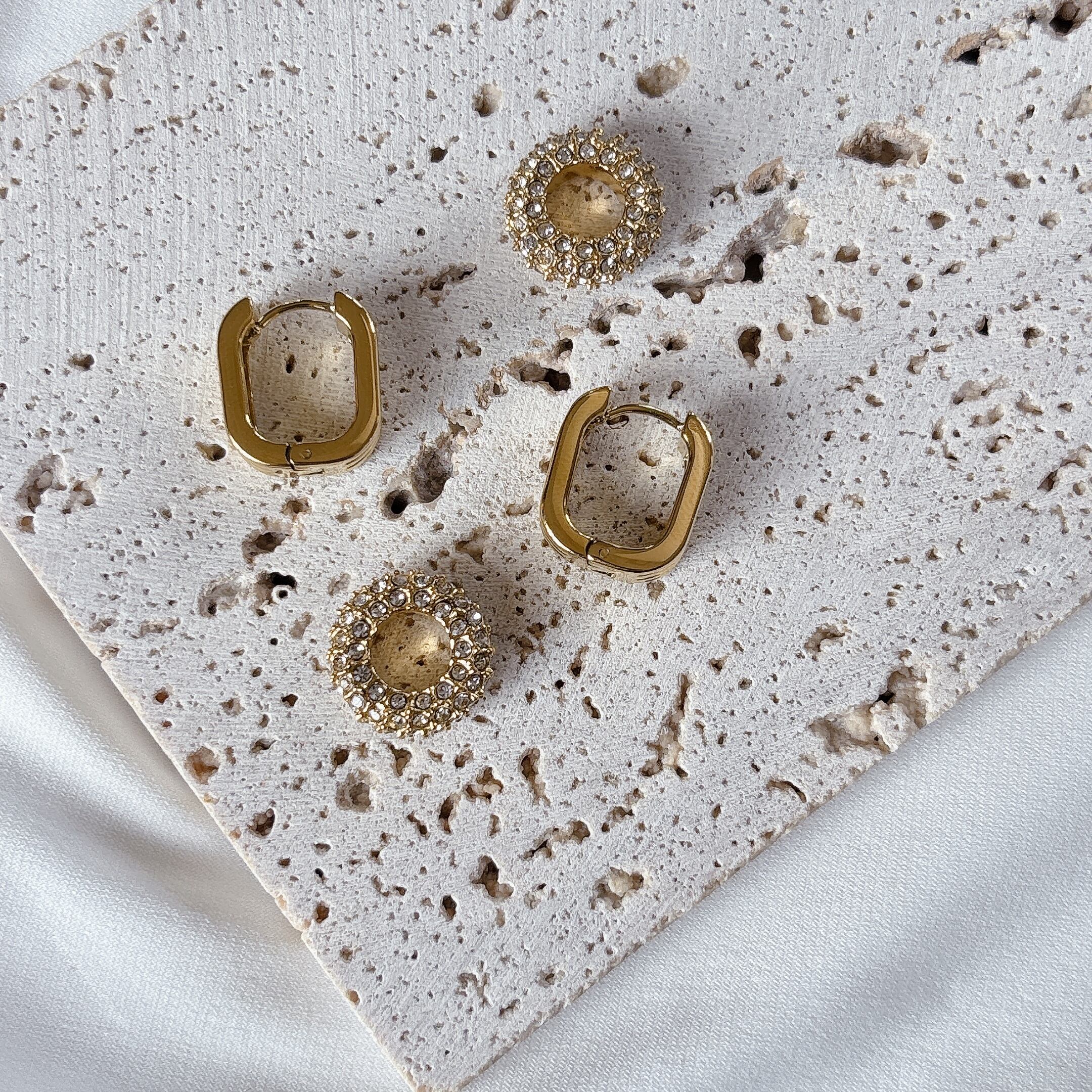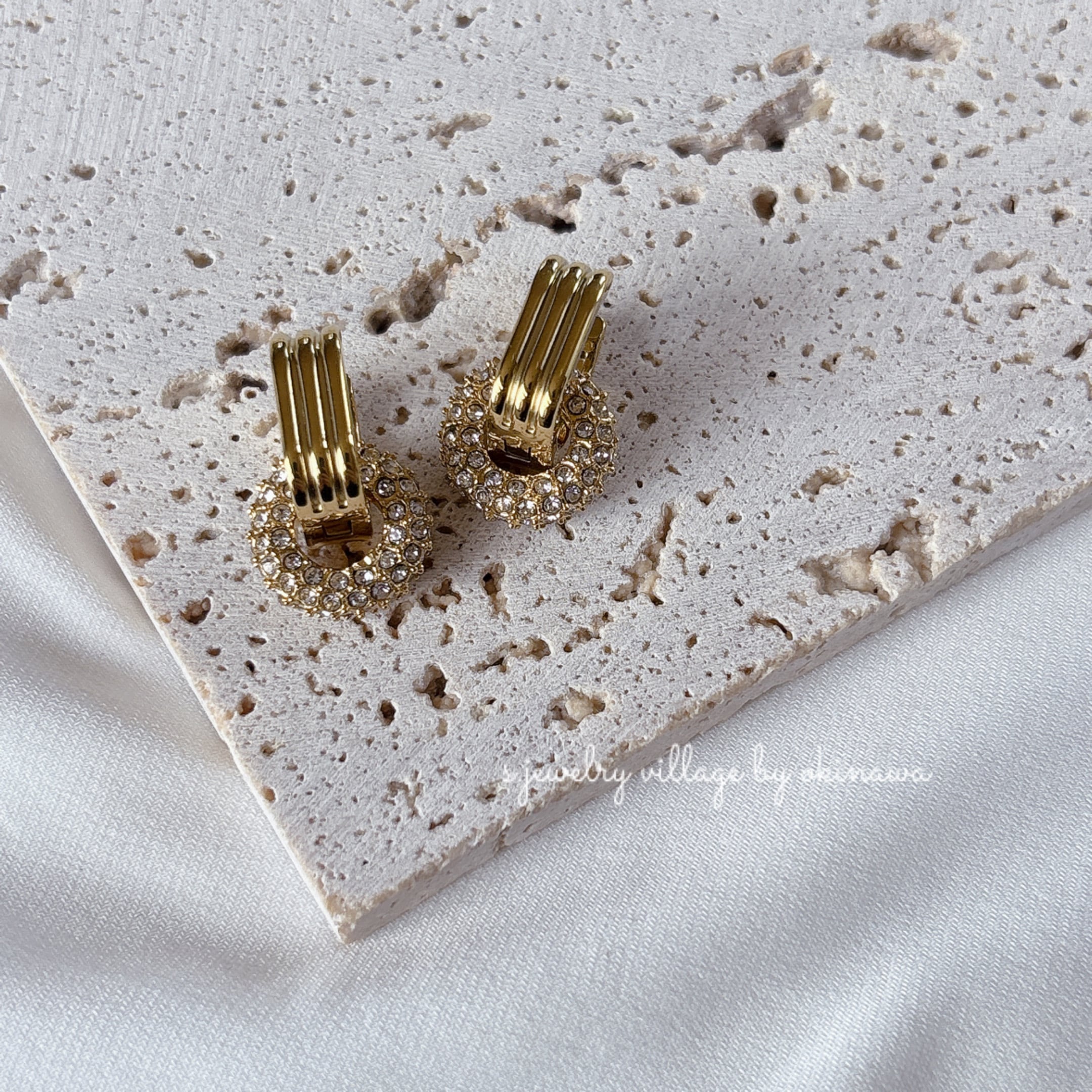 スクエアフープ×ビジューピアス | 2way 綺麗めカジュアル【金属アレルギー対応】