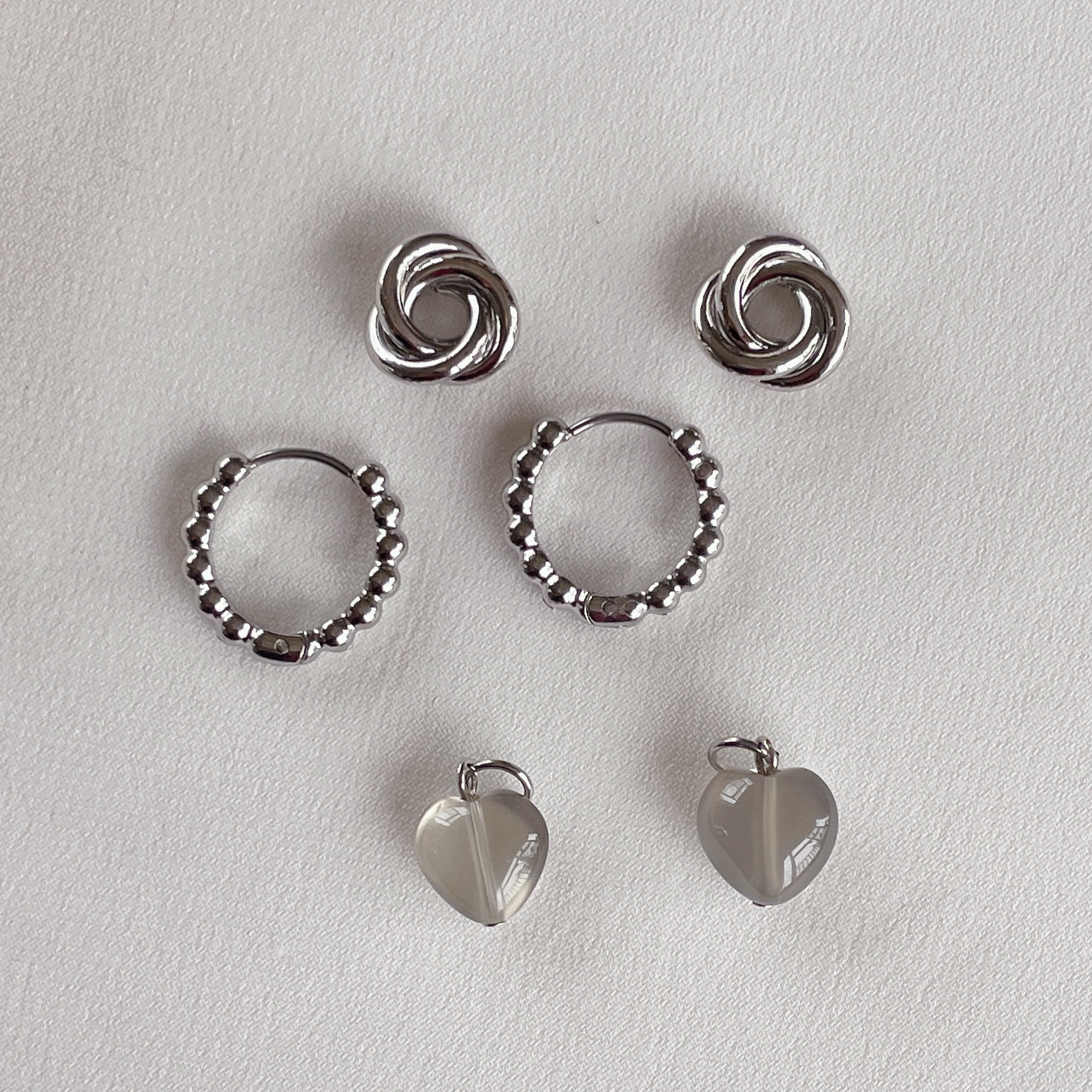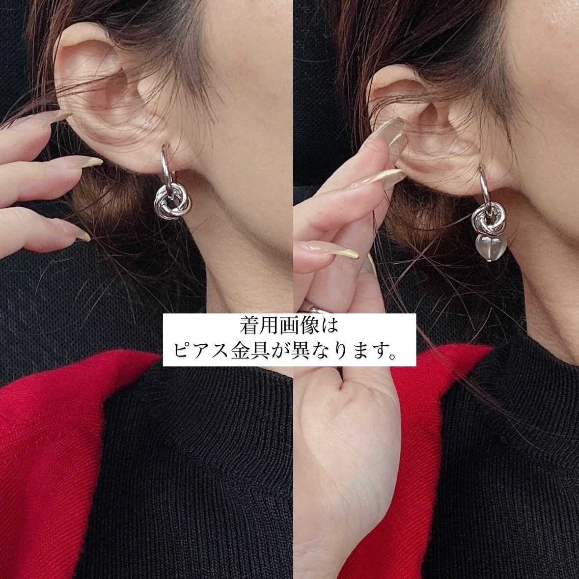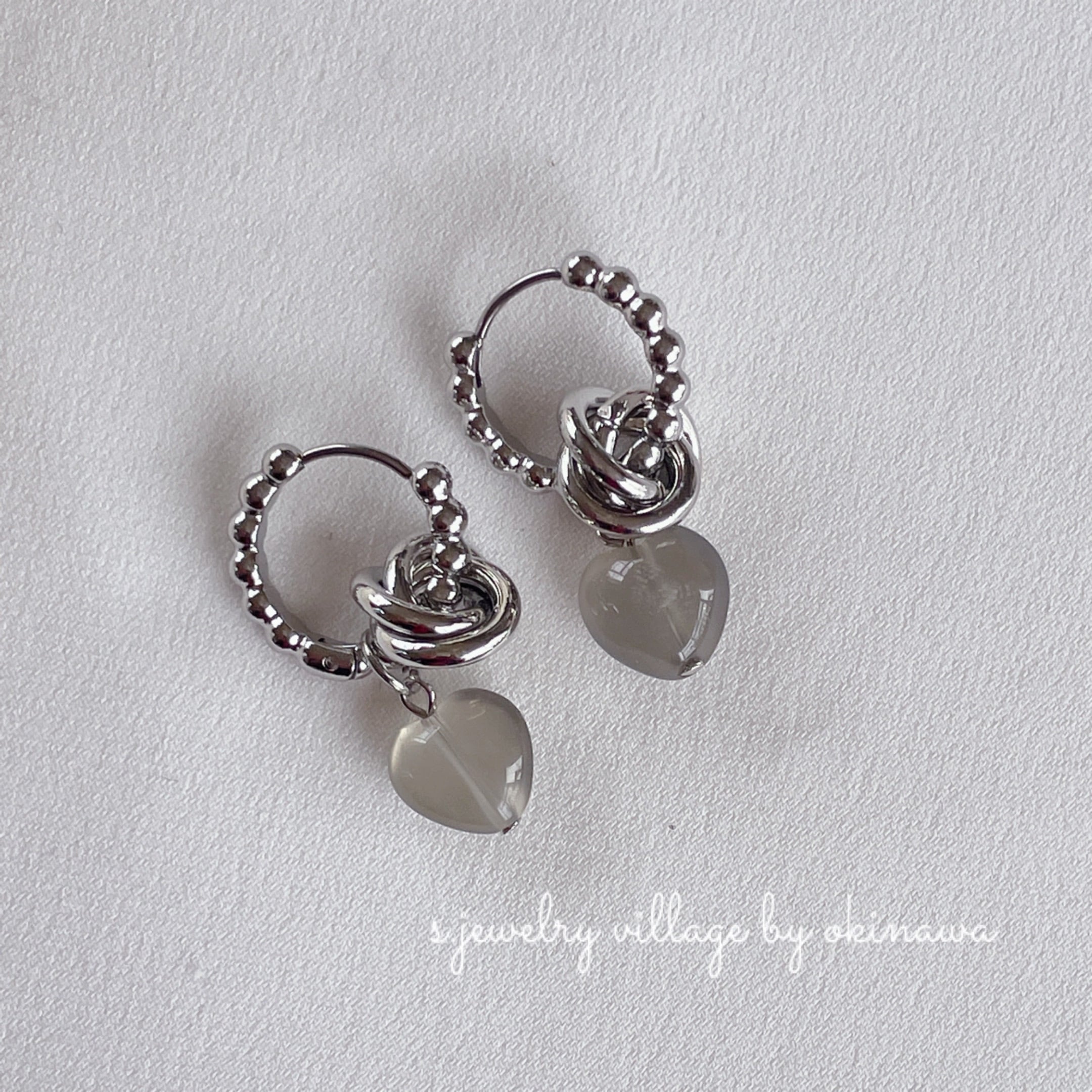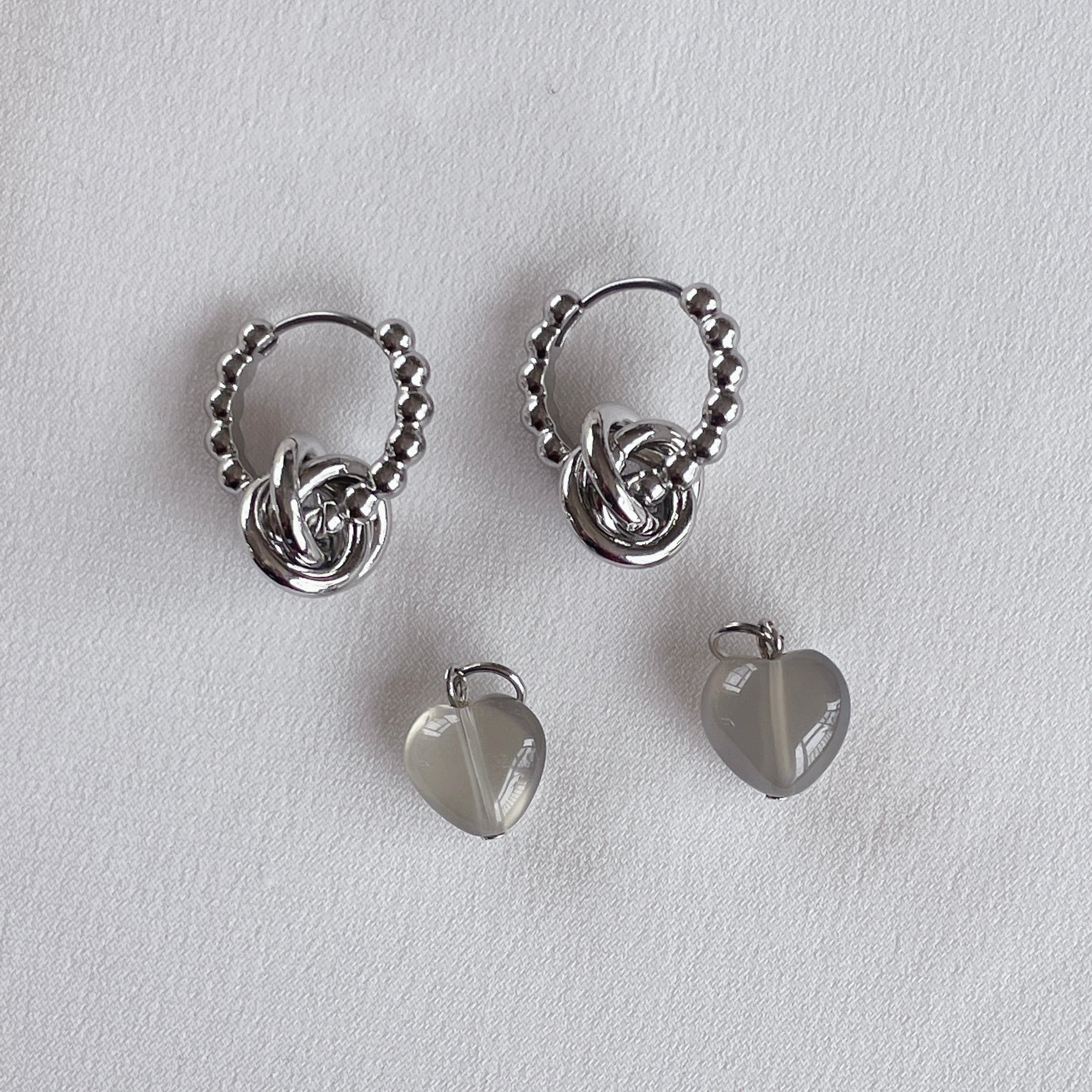 マルチウェイでチャームを取り外しして楽しめるグレームーンストーンピアス♡甘くなりすぎないフォルムのハートのグレームーンストーンが程よい光沢感、色味で大人アクセサリーとしてお楽しみいただけます。