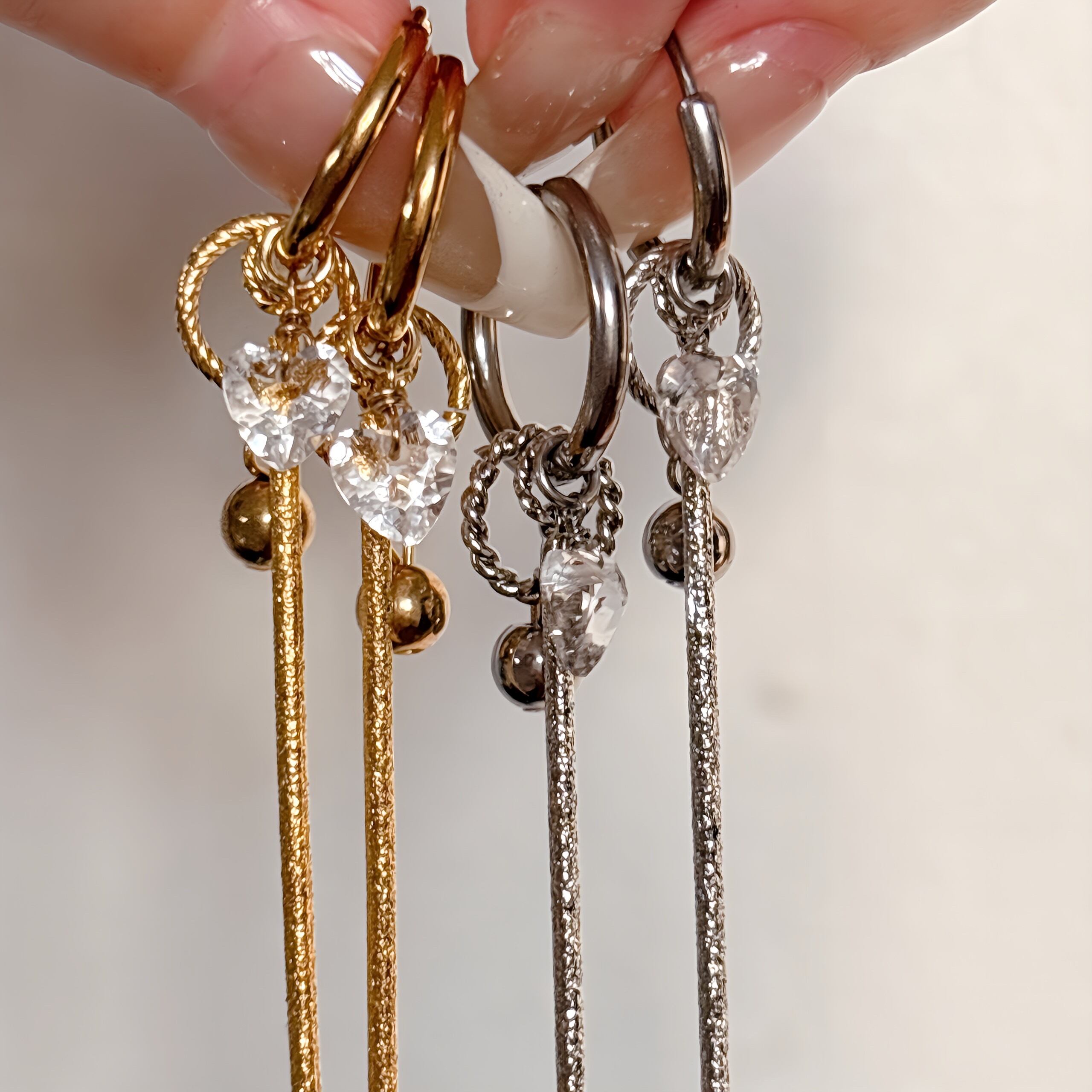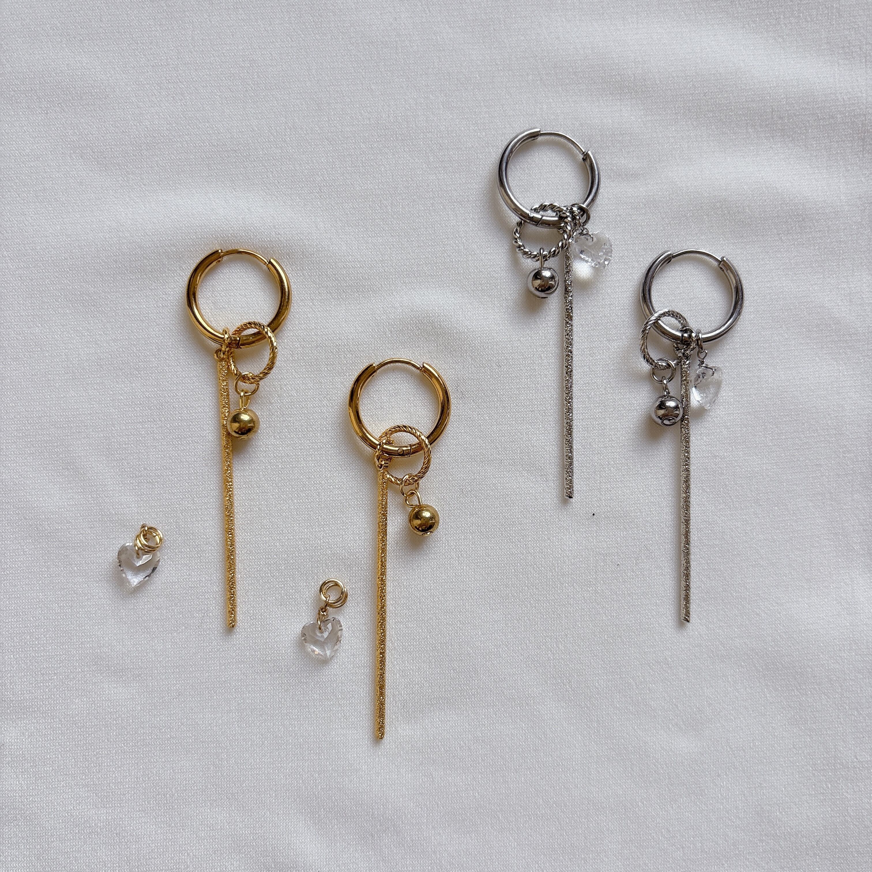 水晶ハートマルチウェイピアス|綺麗めカジュアル×揺れるデザイン【金属アレルギー対応】