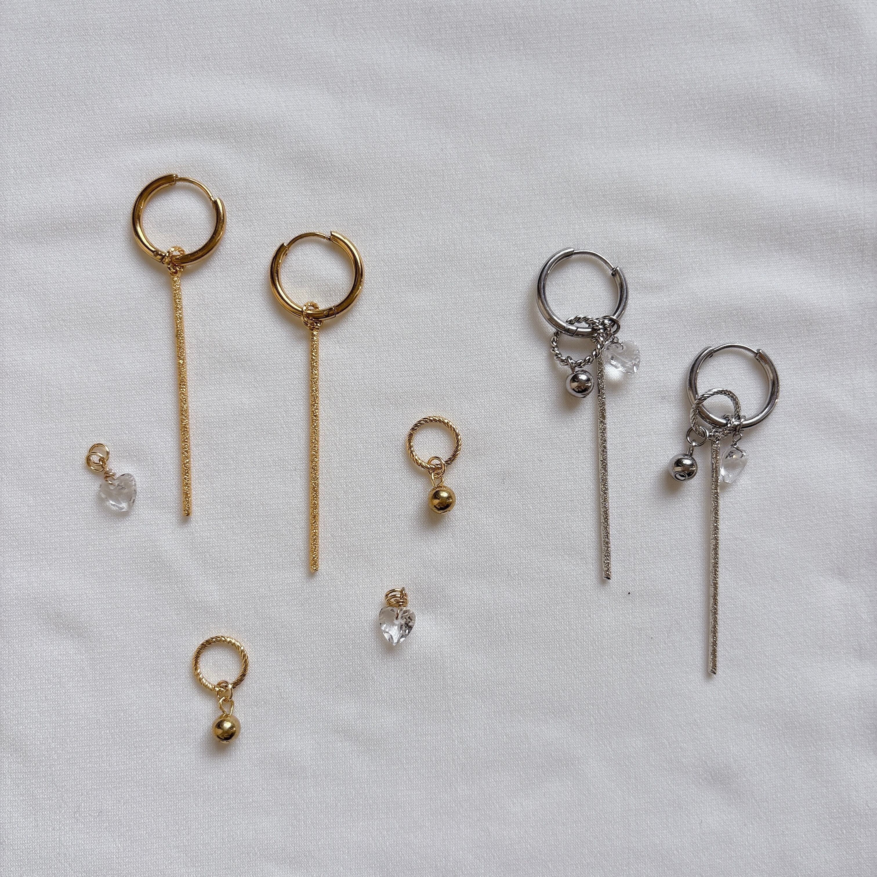 チャームは取り外し可能で、シンプルなフープピアスとしても使えるmulchway仕様。