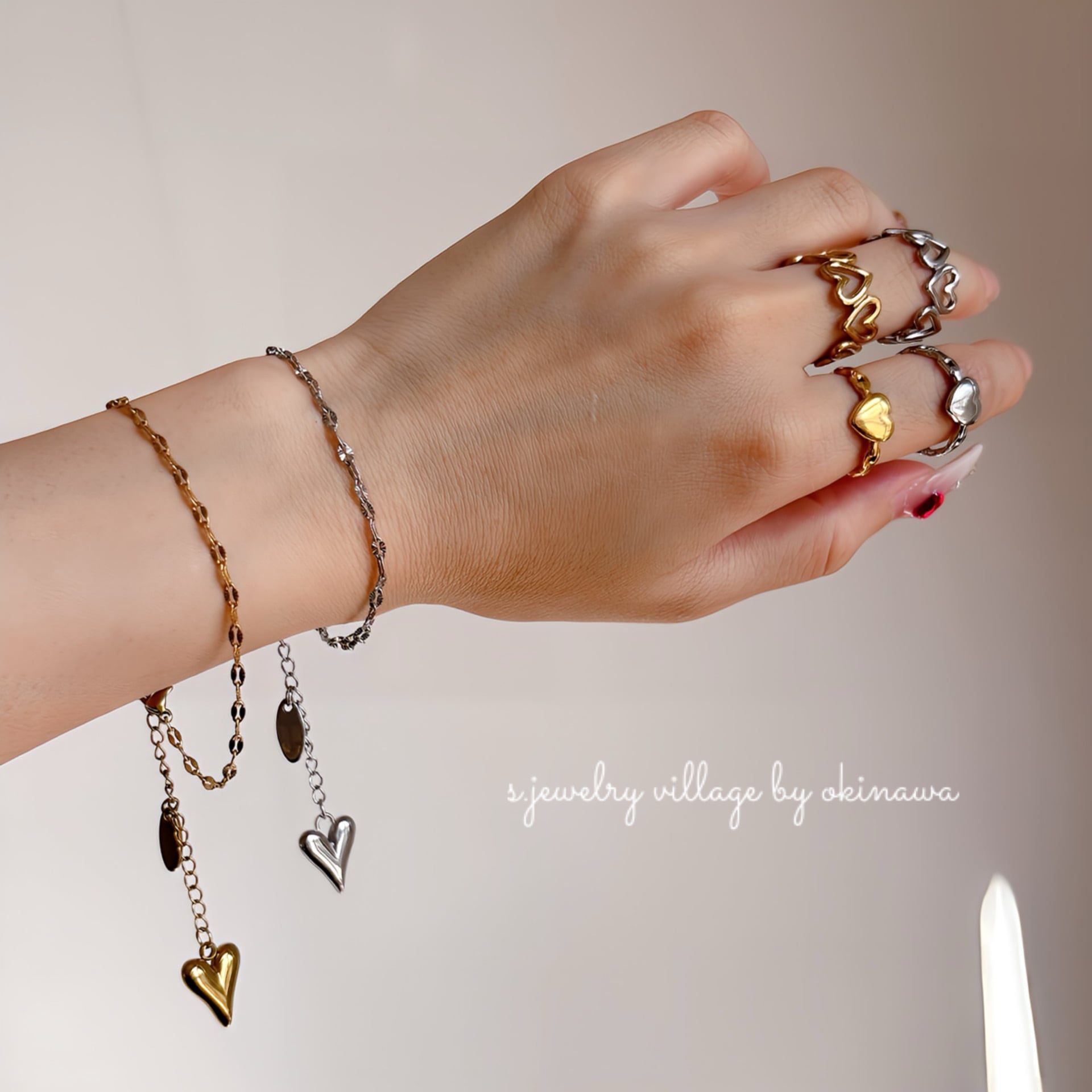 ハートチェーン風リング | 大人可愛い×存在感【金属アレルギー対応】