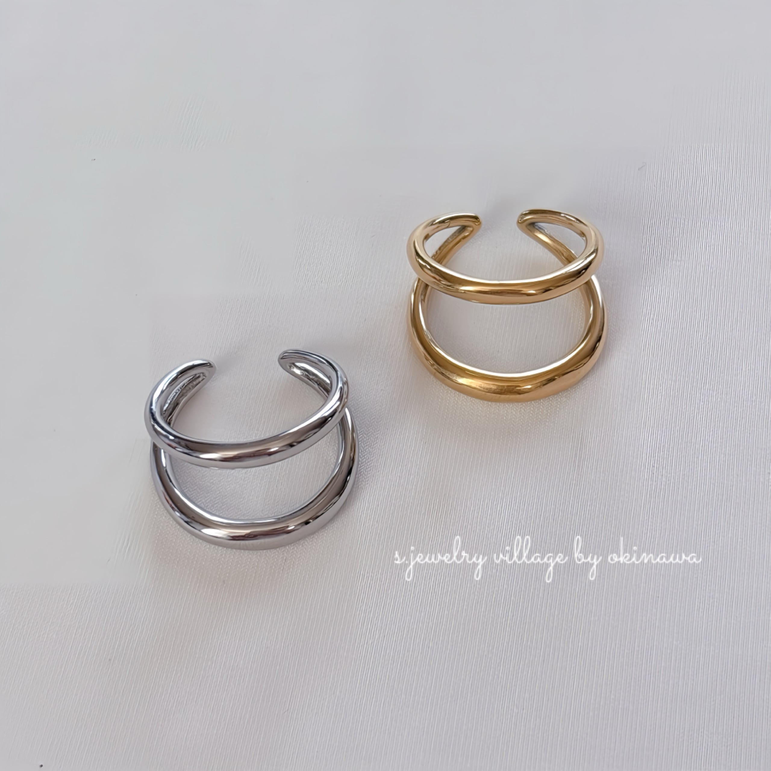 ダブルフープデザインリング | 大人カジュアル×大振り使い【金属アレルギー対応】
