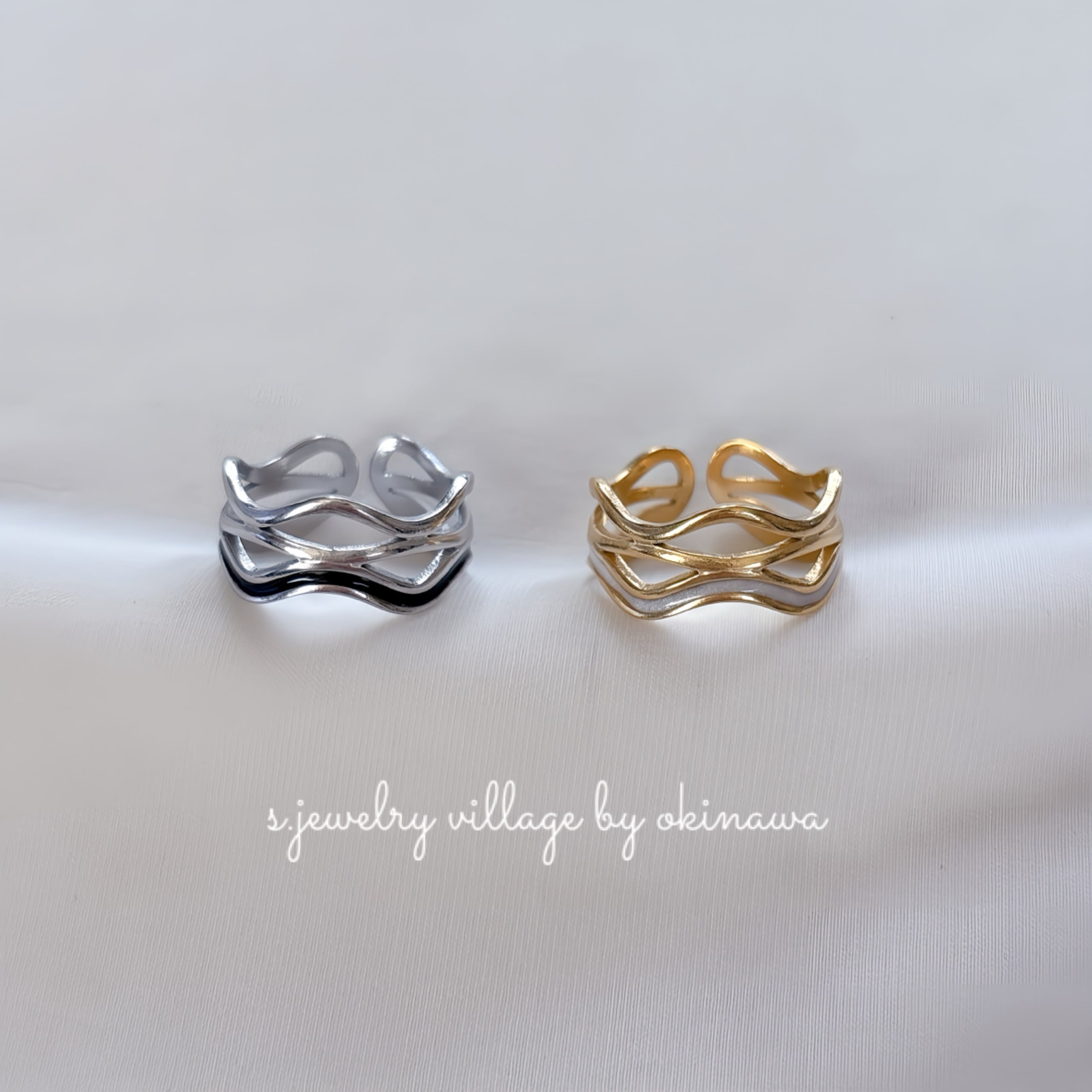ウェーブラインデザインリング | 大人カジュアル×大振り使い【金属アレルギー対応】