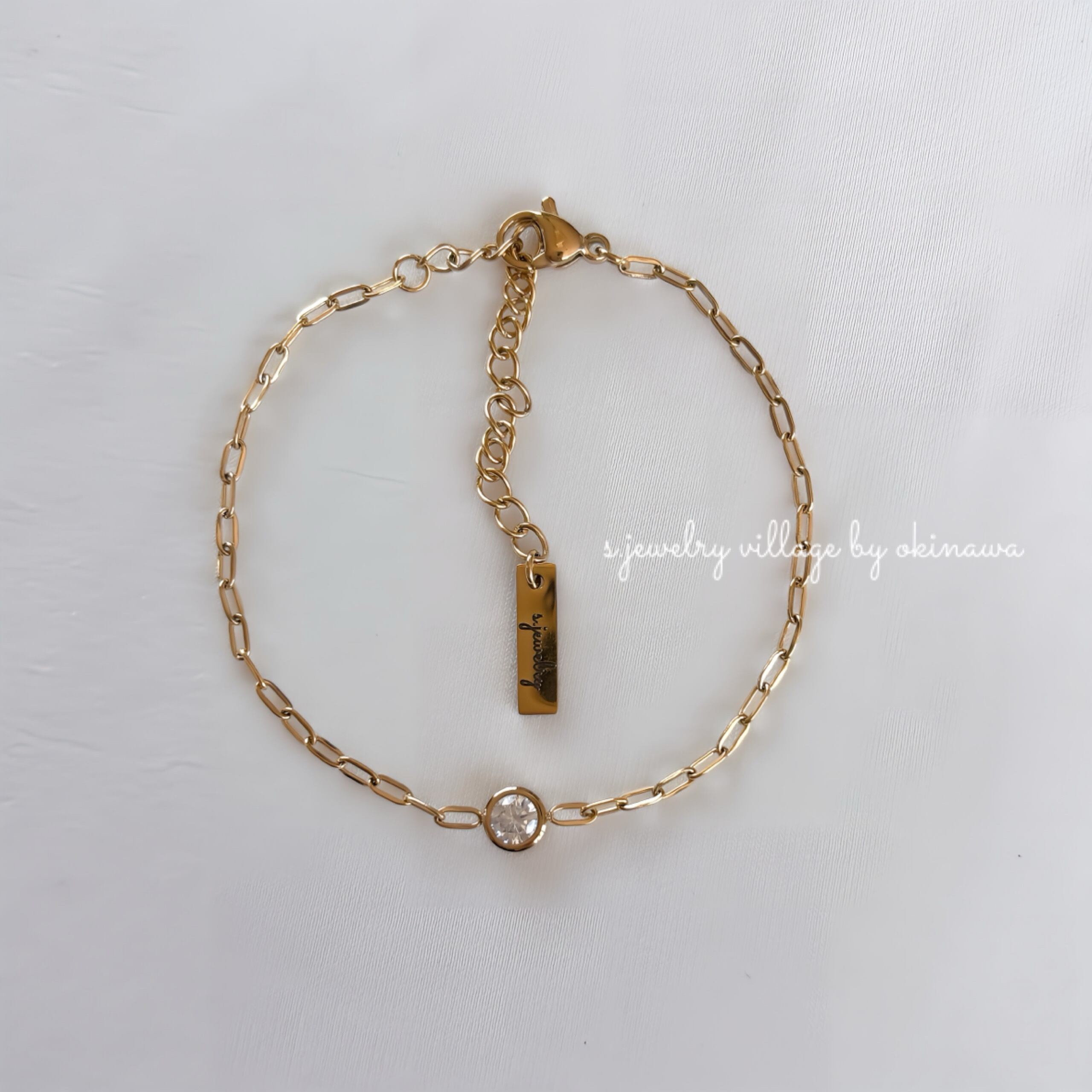 ワンポイントビジューブレスレット | 大人アクセサリー【金属アレルギー対応】