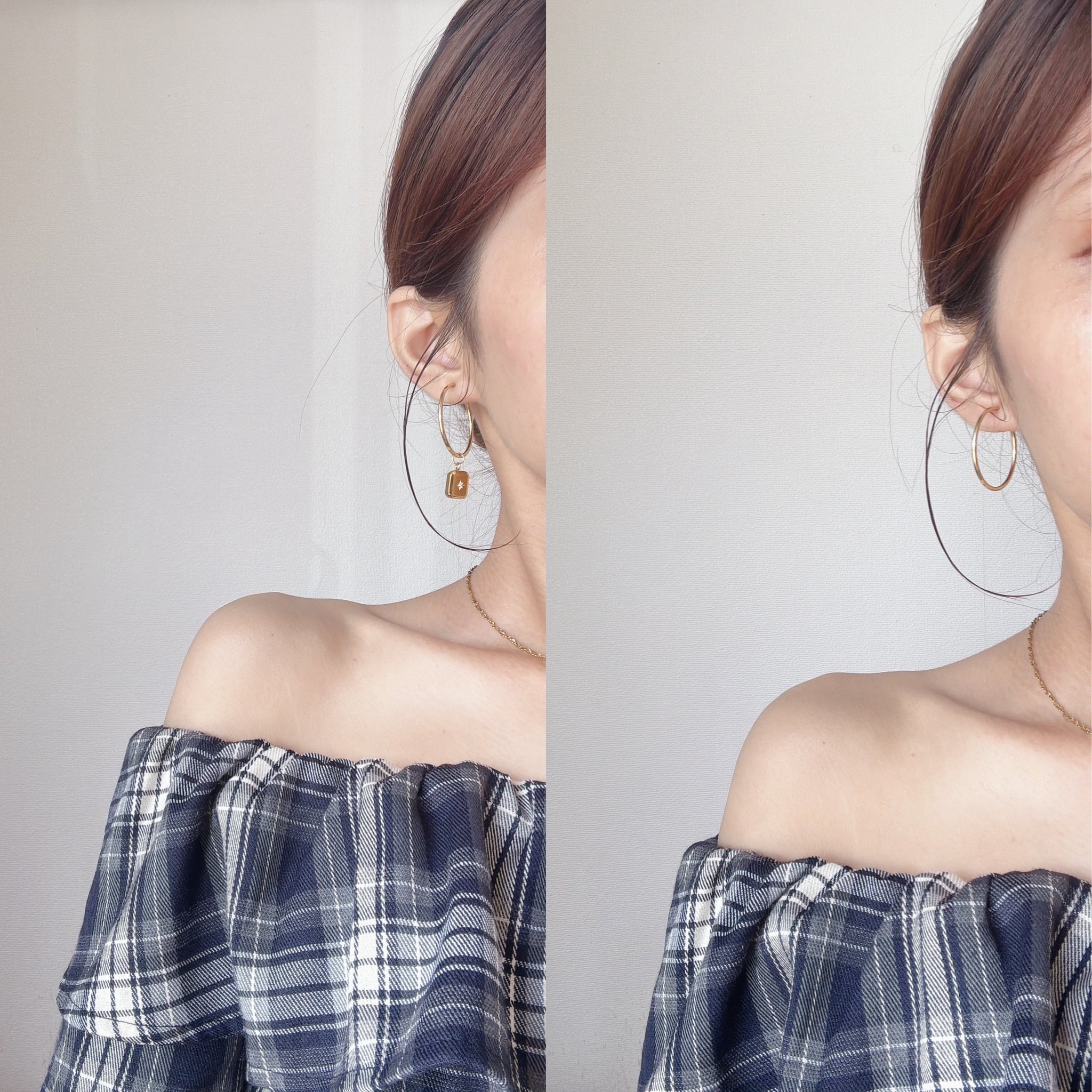 フープだけでミニマルに、チャームを付けて遊び心をプラス、と気分でアレンジできます。