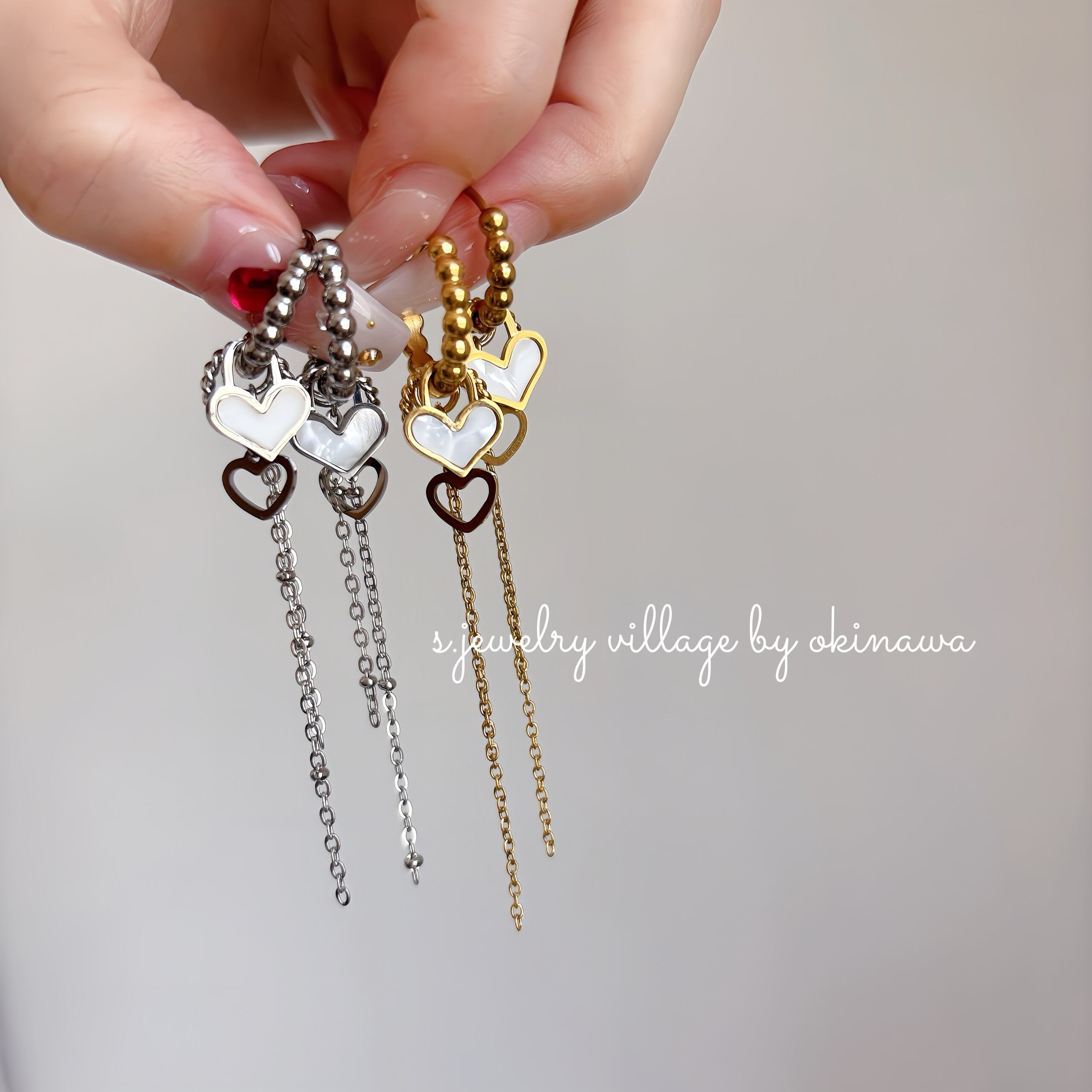 ダブルハートチャームピアス | mulch way × 大人かわいい【金属アレルギー対応】