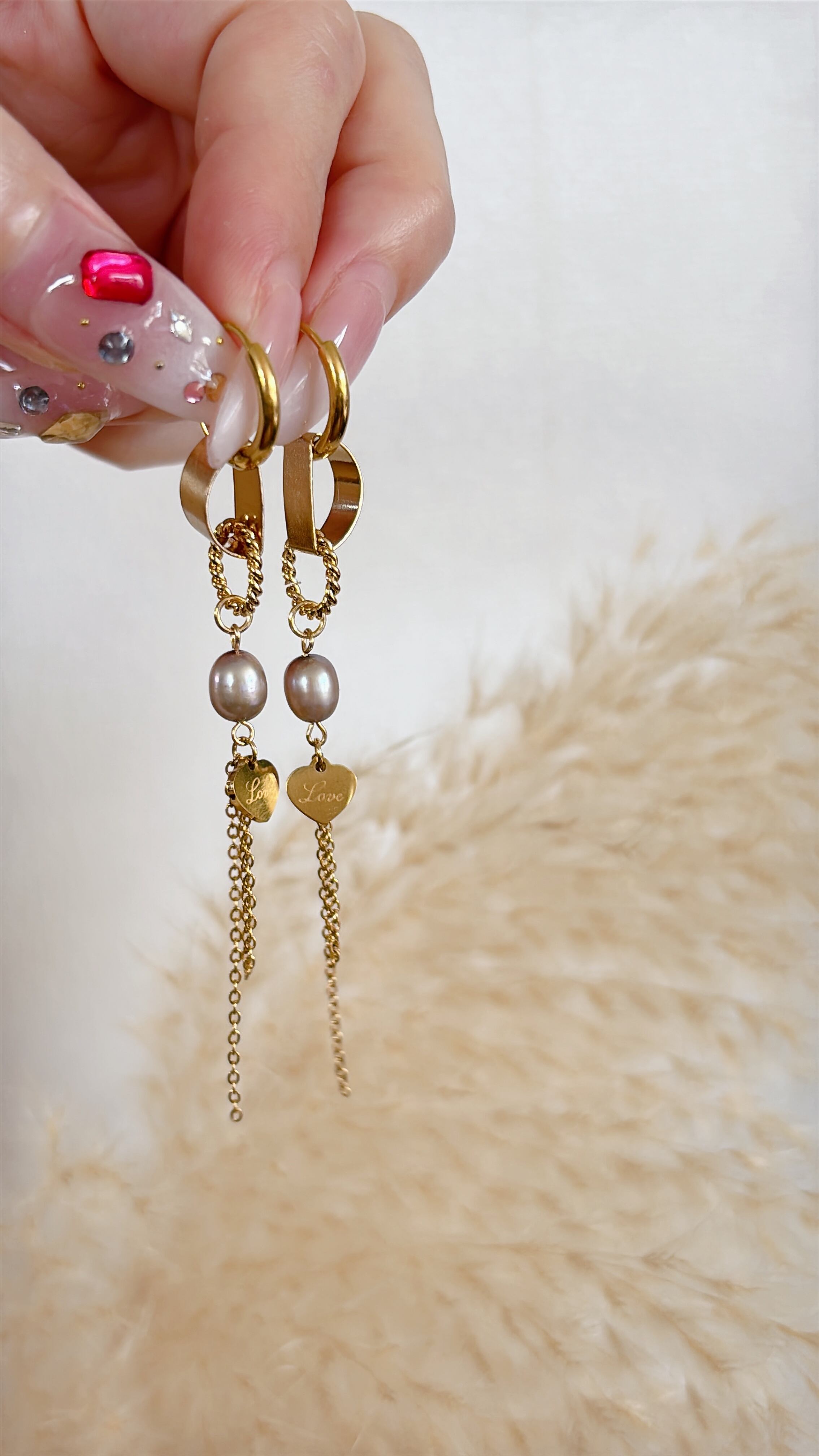 2wayで楽しめるロングピアス♡ピンクブラウン系の淡水パールがポイントのデザインです♡