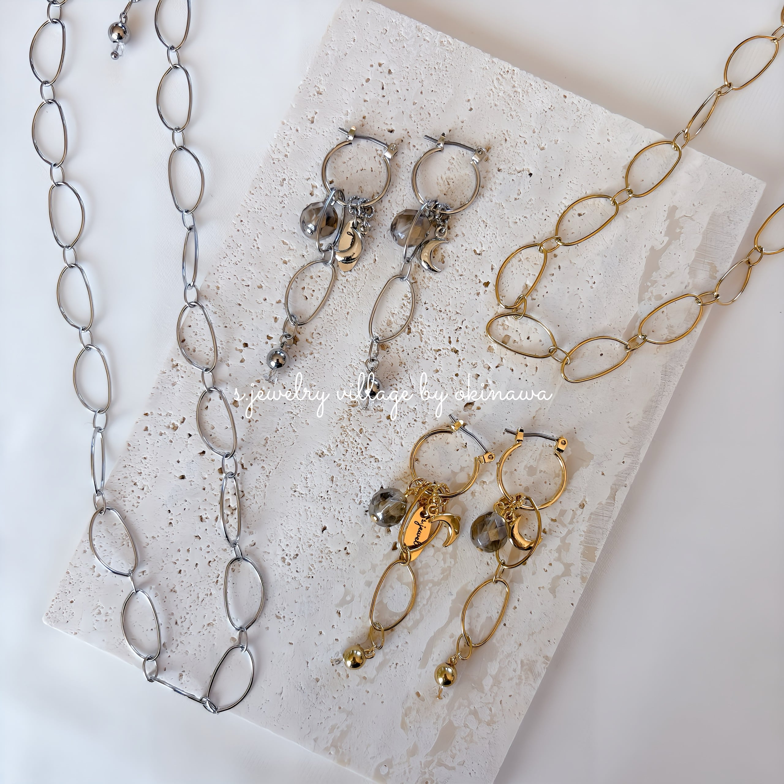 オーバルチェーンと三日月ピアス | mulchway × 大人カジュアル【金属アレルギー対応】