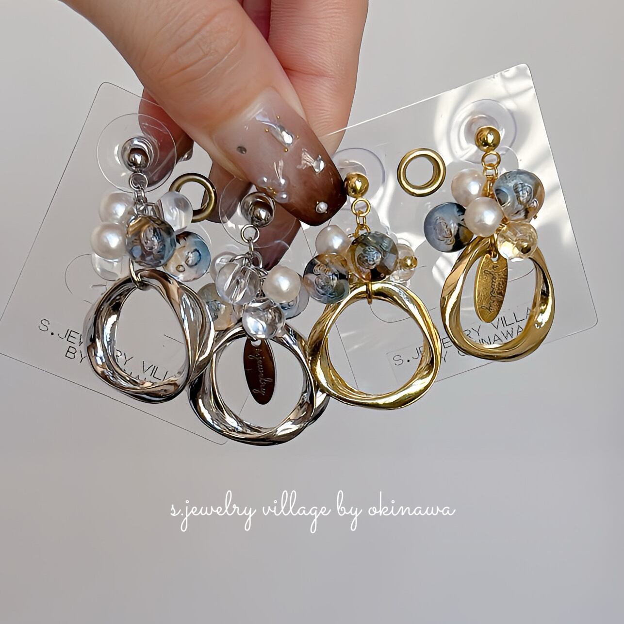 バブルビーズとダブルフープピアス | 大人カジュアル×立体感【金属アレルギー対応】