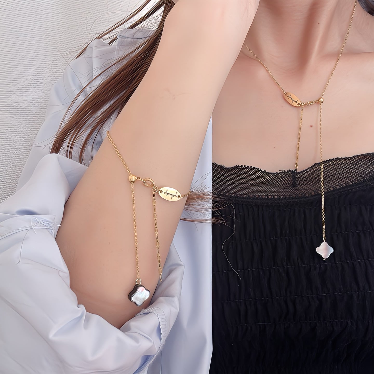 遊び心を取り入れたデザイン。細めのチェーンにシンプルながら、デザイン性が楽しめます。スライドして金具が止められるのでお洋服の雰囲気に合わせて長さを変えてお楽しみください♡