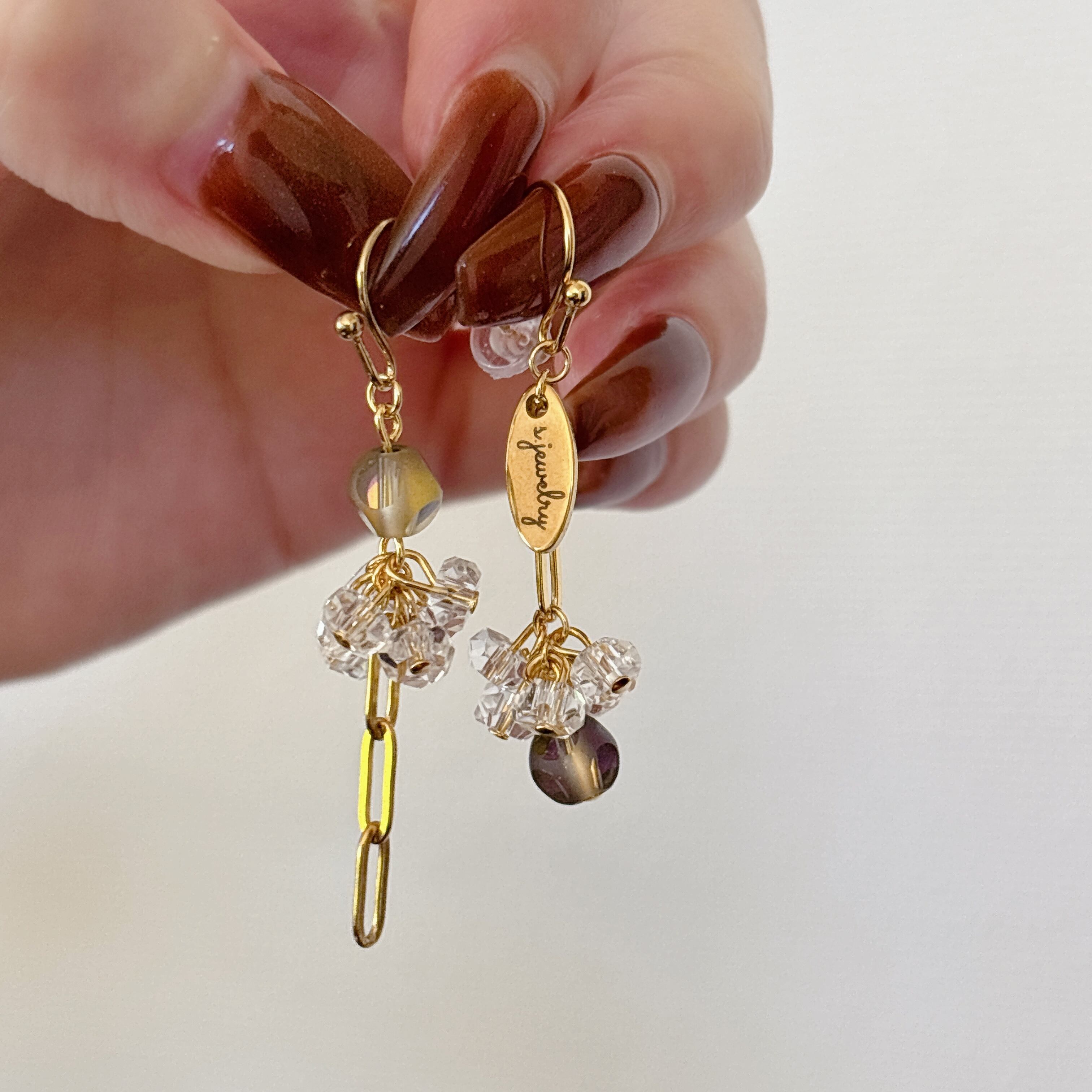 水晶×アシンメトリーピアス|透明感×大人の抜け感【金属アレルギー対応】