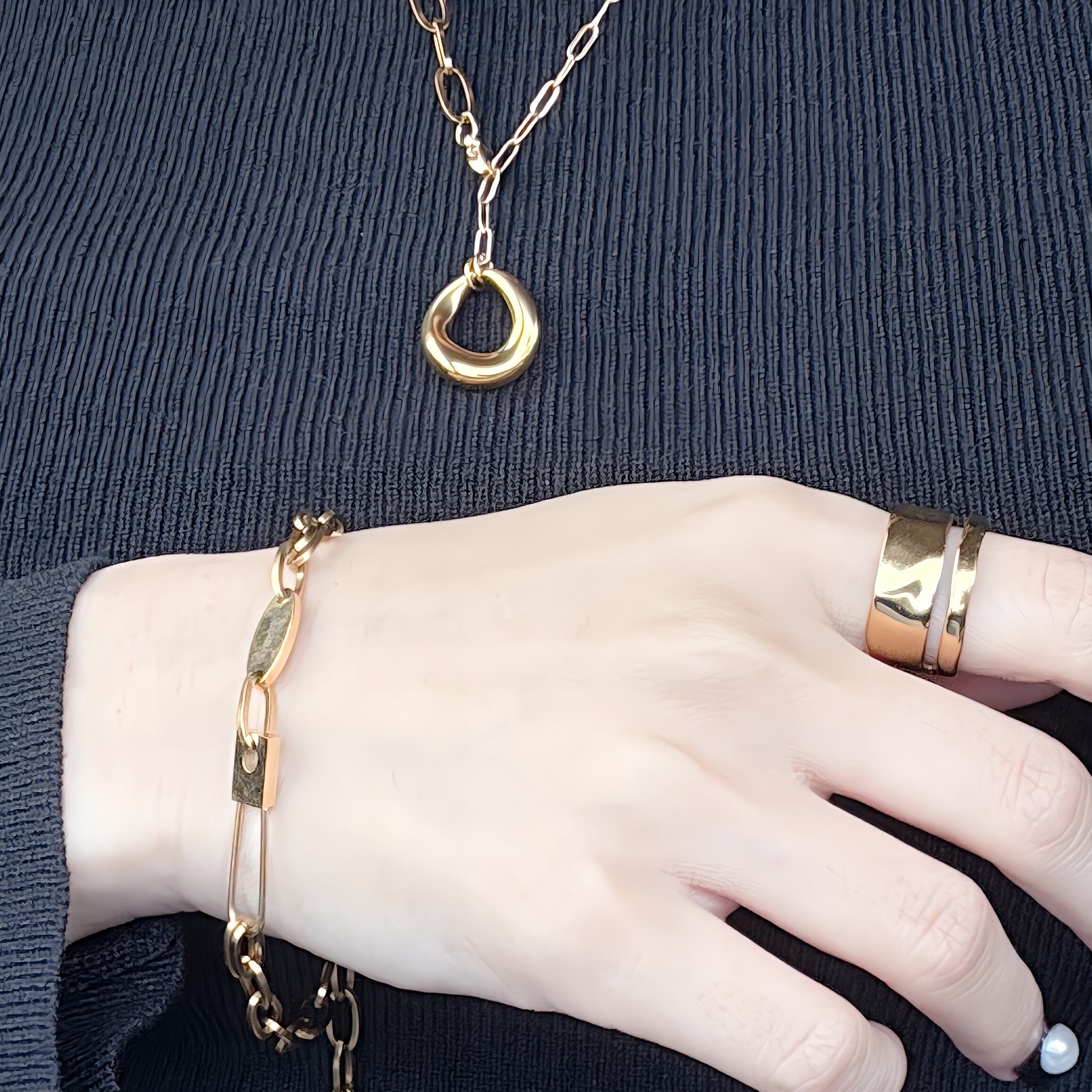 大人カジュアル、綺麗目コーデ共に凛とオシャレ度のアップするアクセントになるネックレス。合わせ方は自由自在。お好きな場所で無限大に金具が止められるのでお洋服の雰囲気に合わせてお楽しみください♡