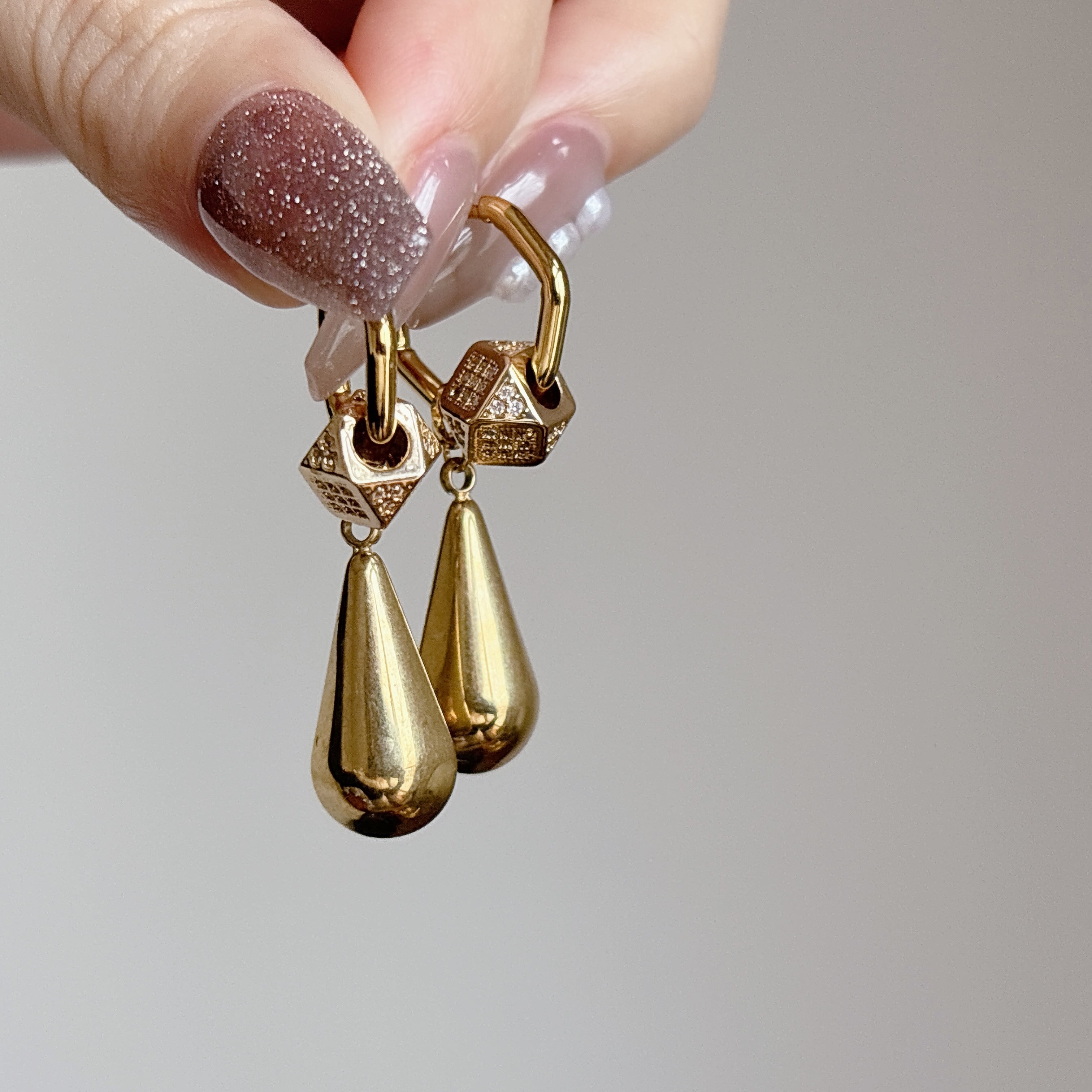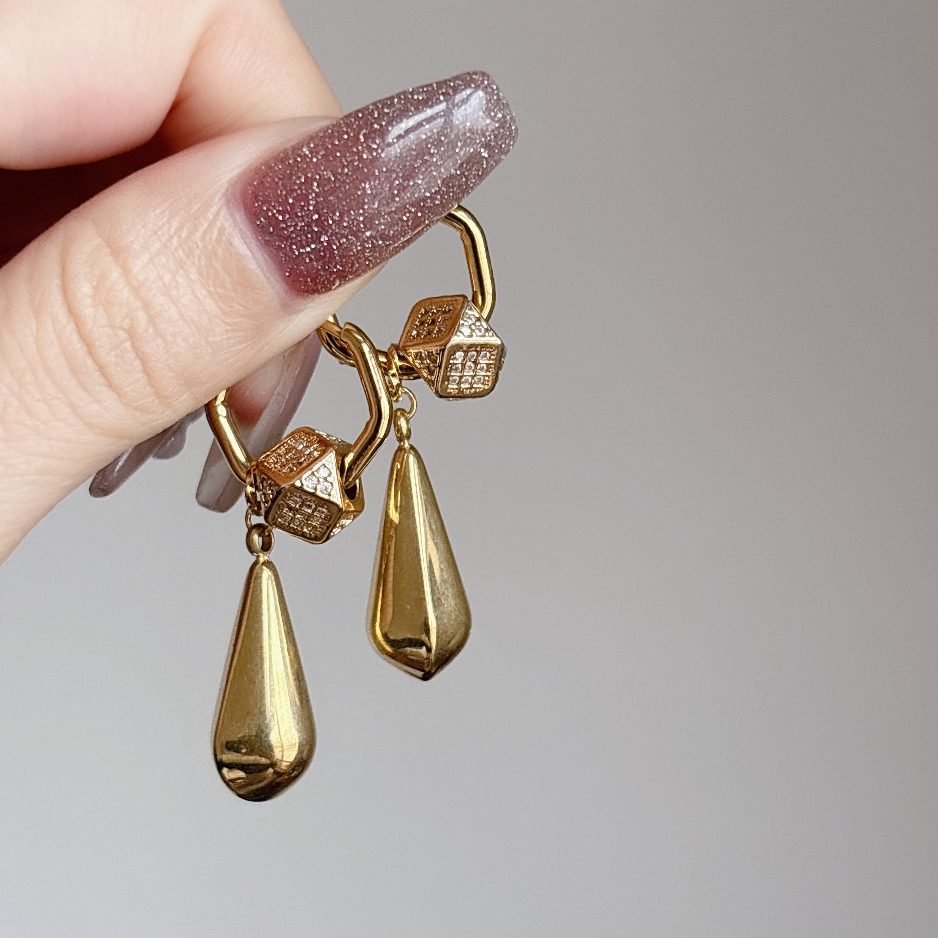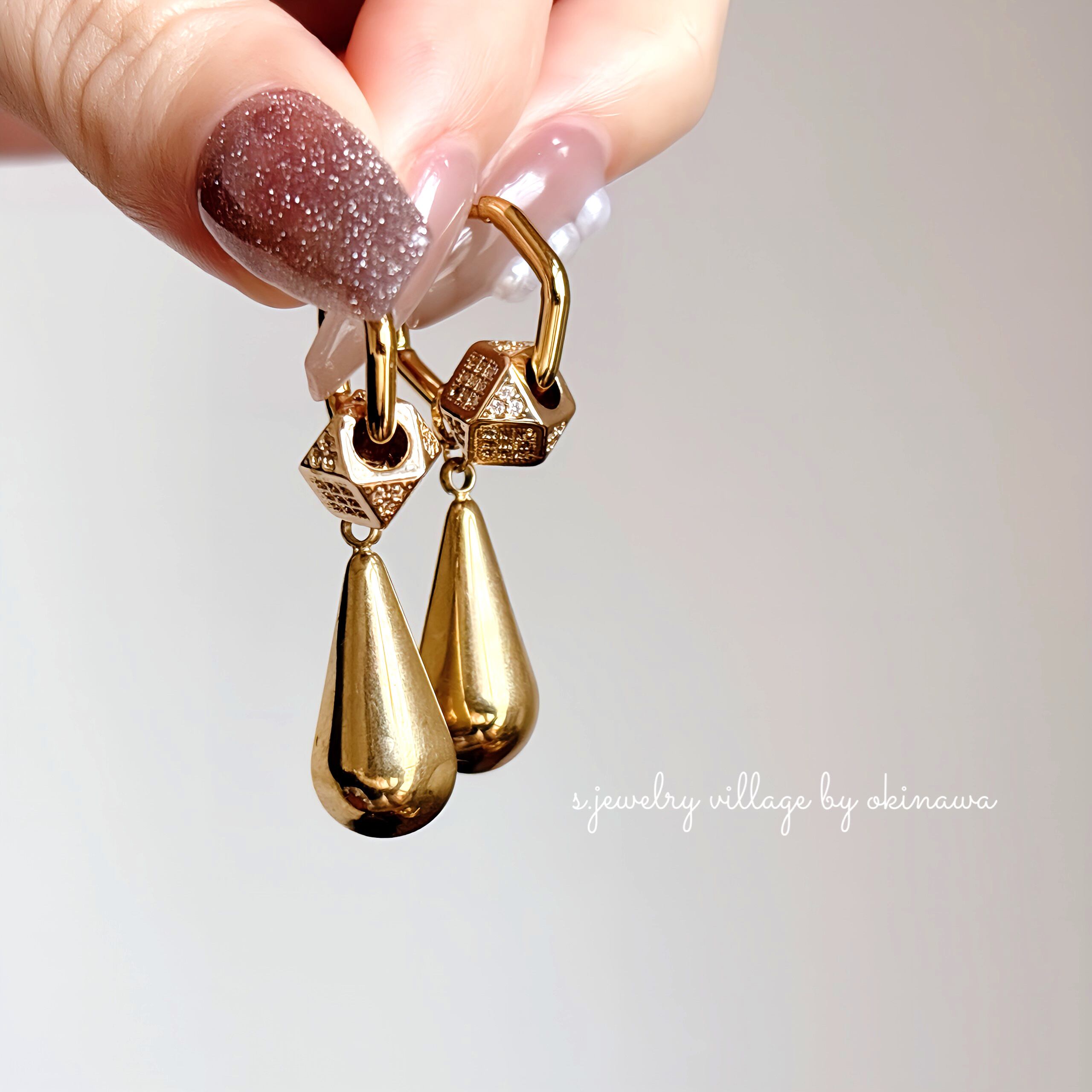 カクカクフープフープ×ゴールドドロップピアス|4way×ゴールドアクセント【金属アレルギー対応】