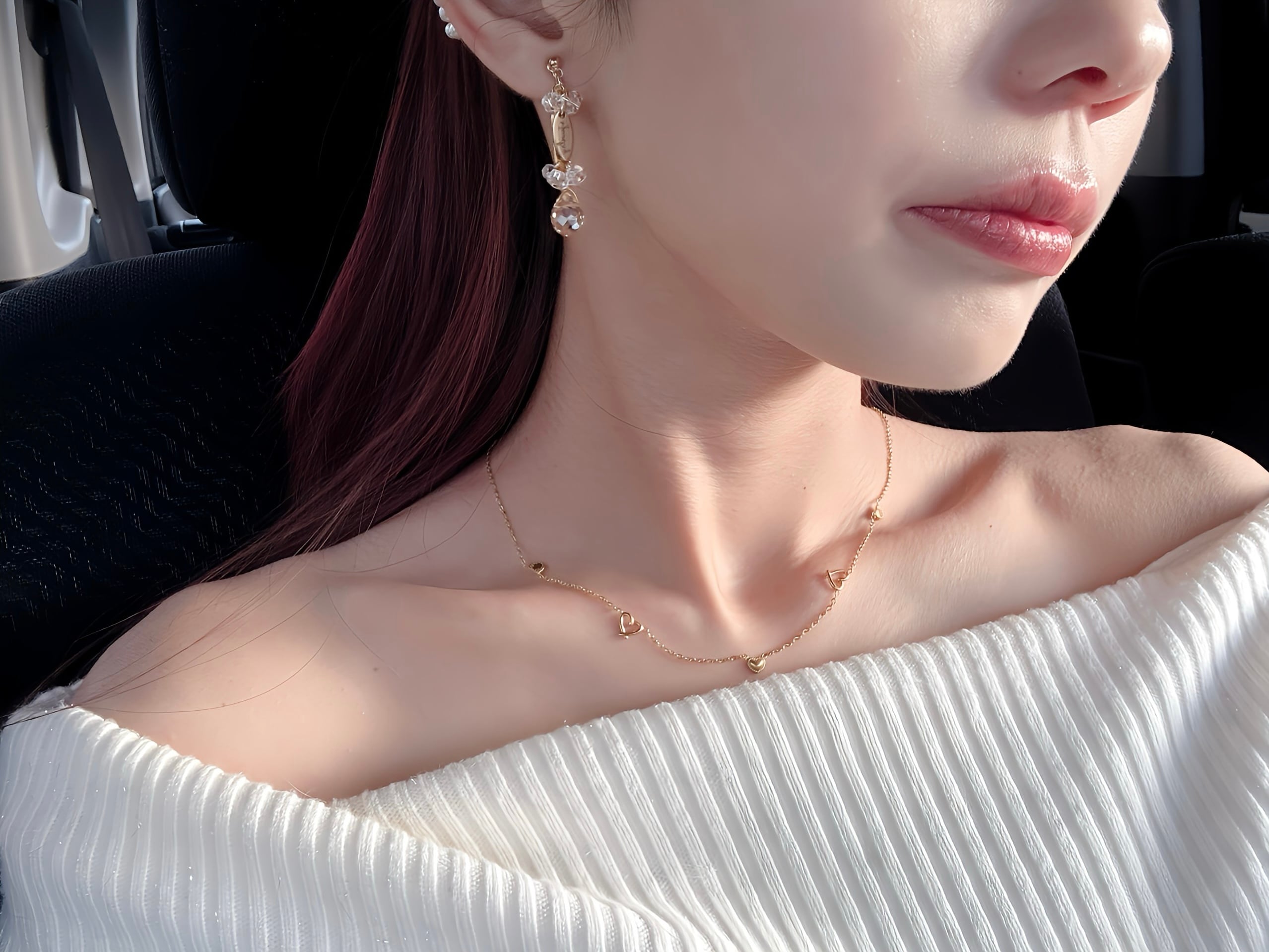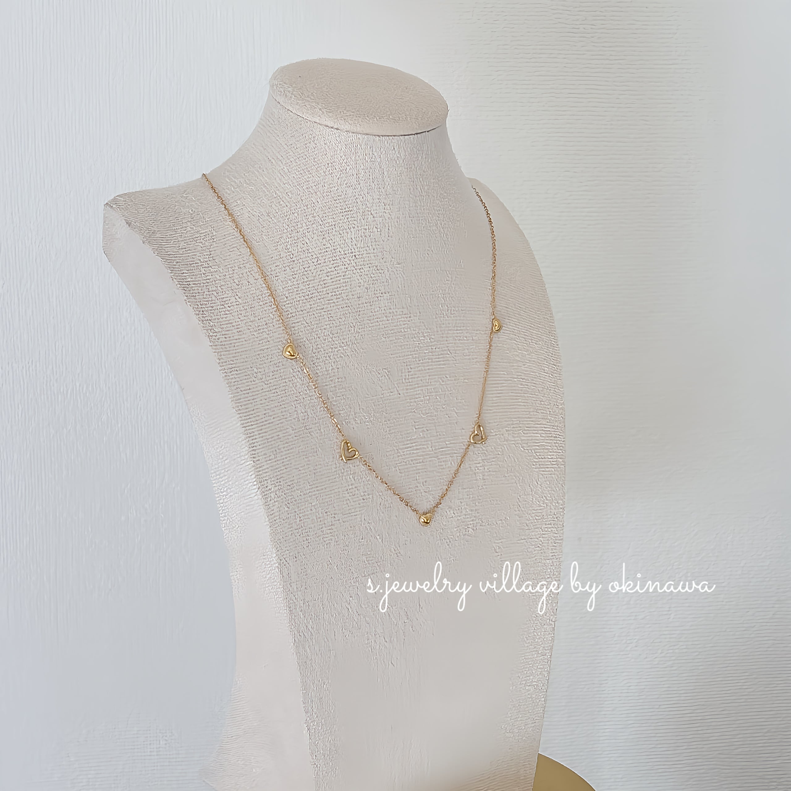 5粒mixハートネックレス | 大人カジュアル × 大人可愛い【金属アレルギー対応】