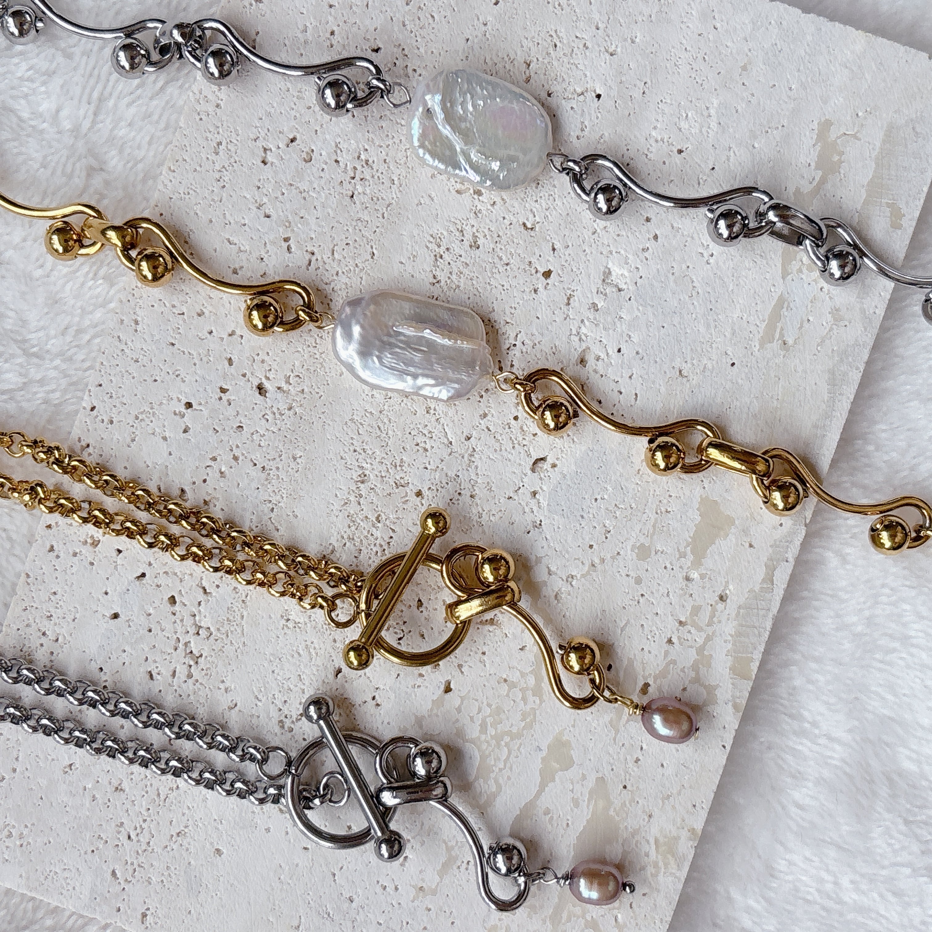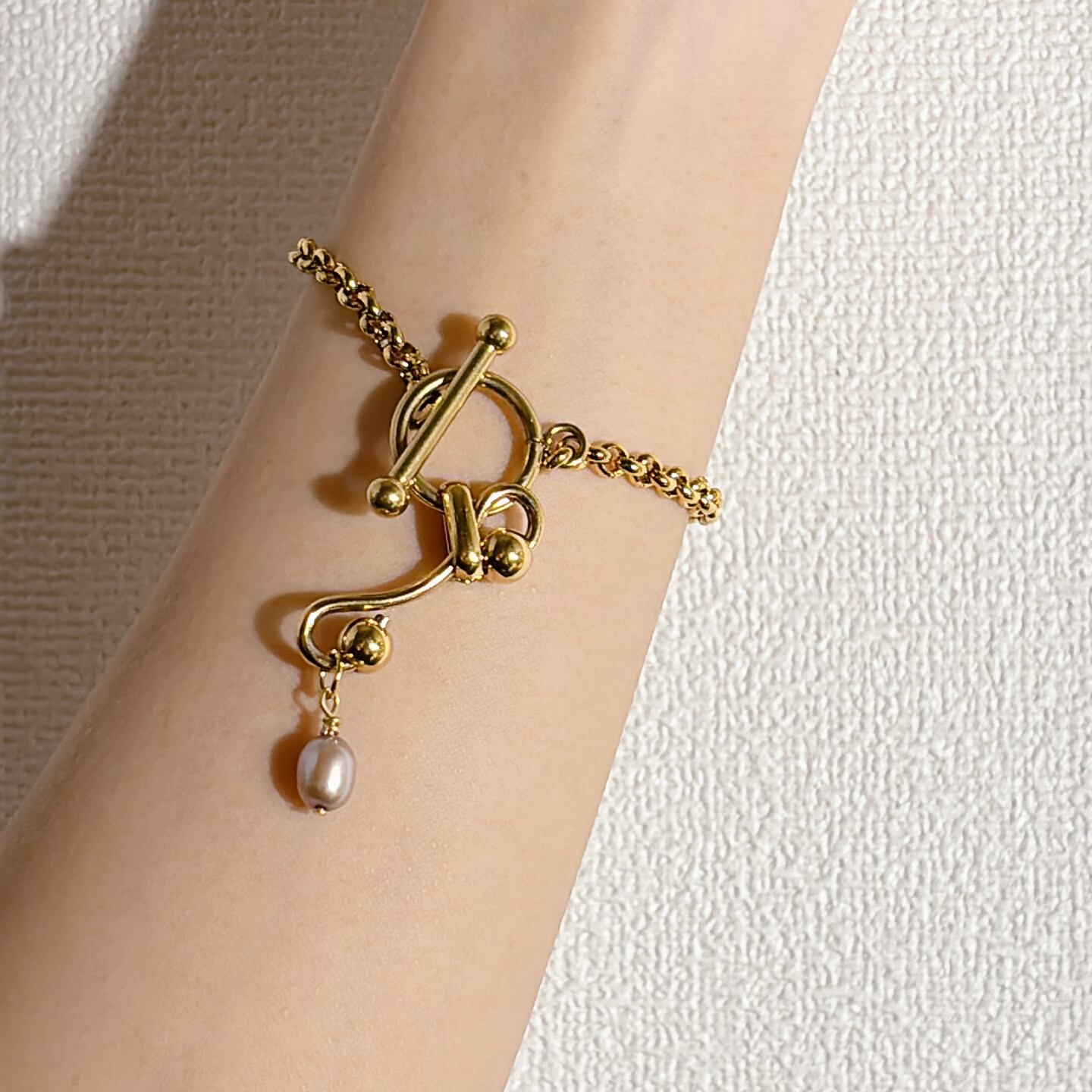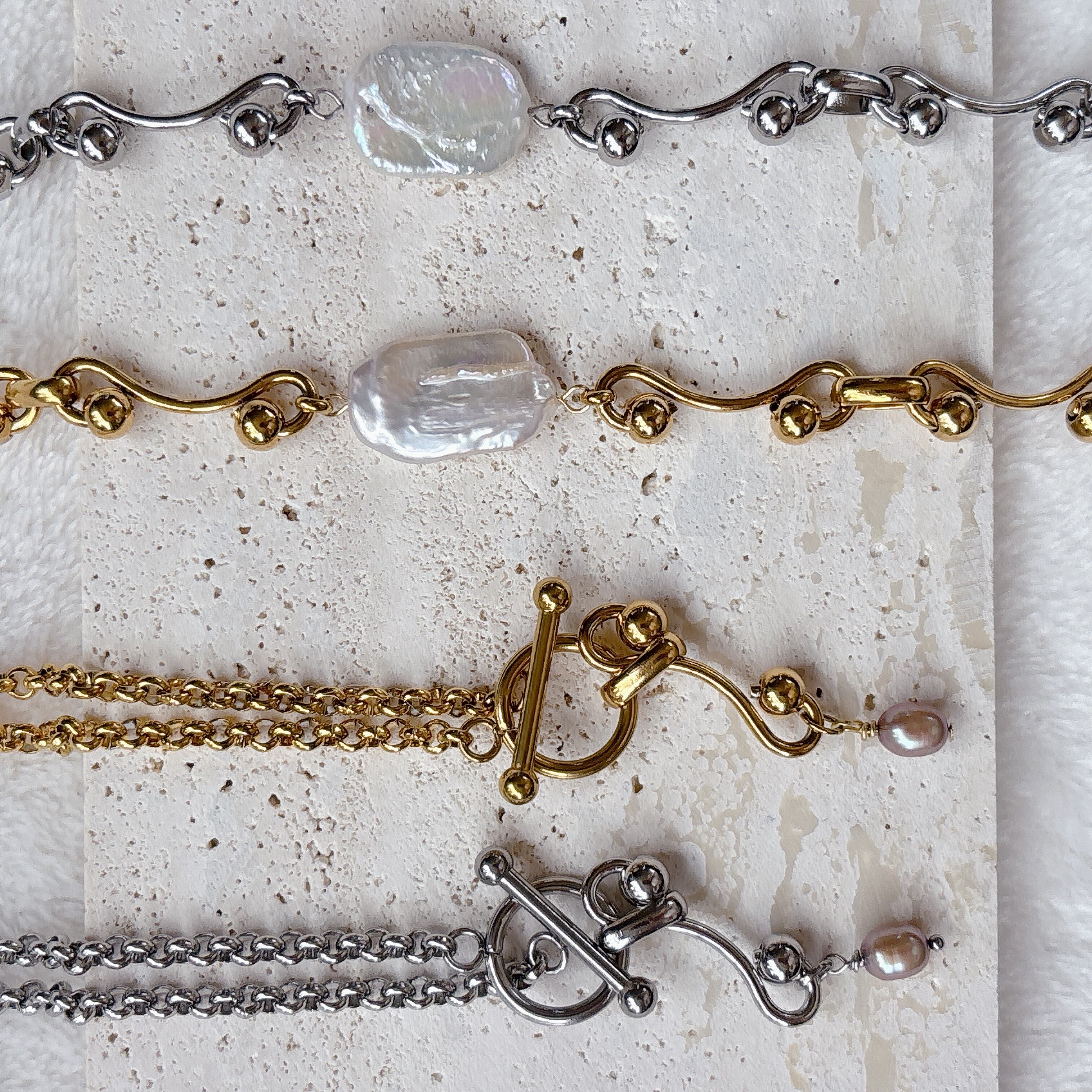 淡水パール×ニュアンスマンテルブレスレット | 存在感×カジュアル【金属アレルギー対応】
