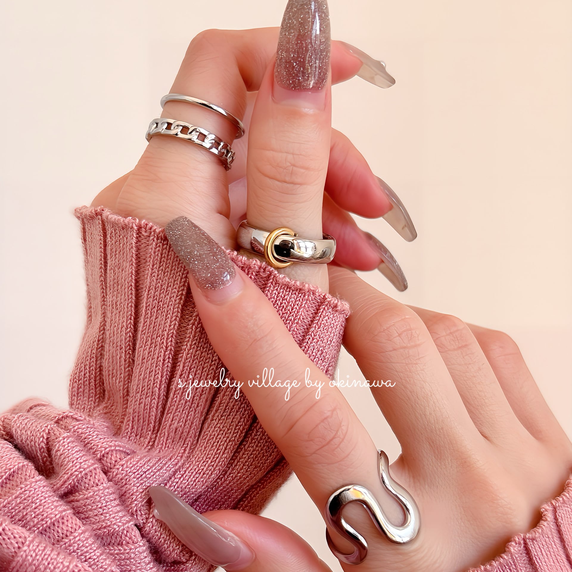 2連デザインリング | 大人カジュアル×大人使い【金属アレルギー対応】