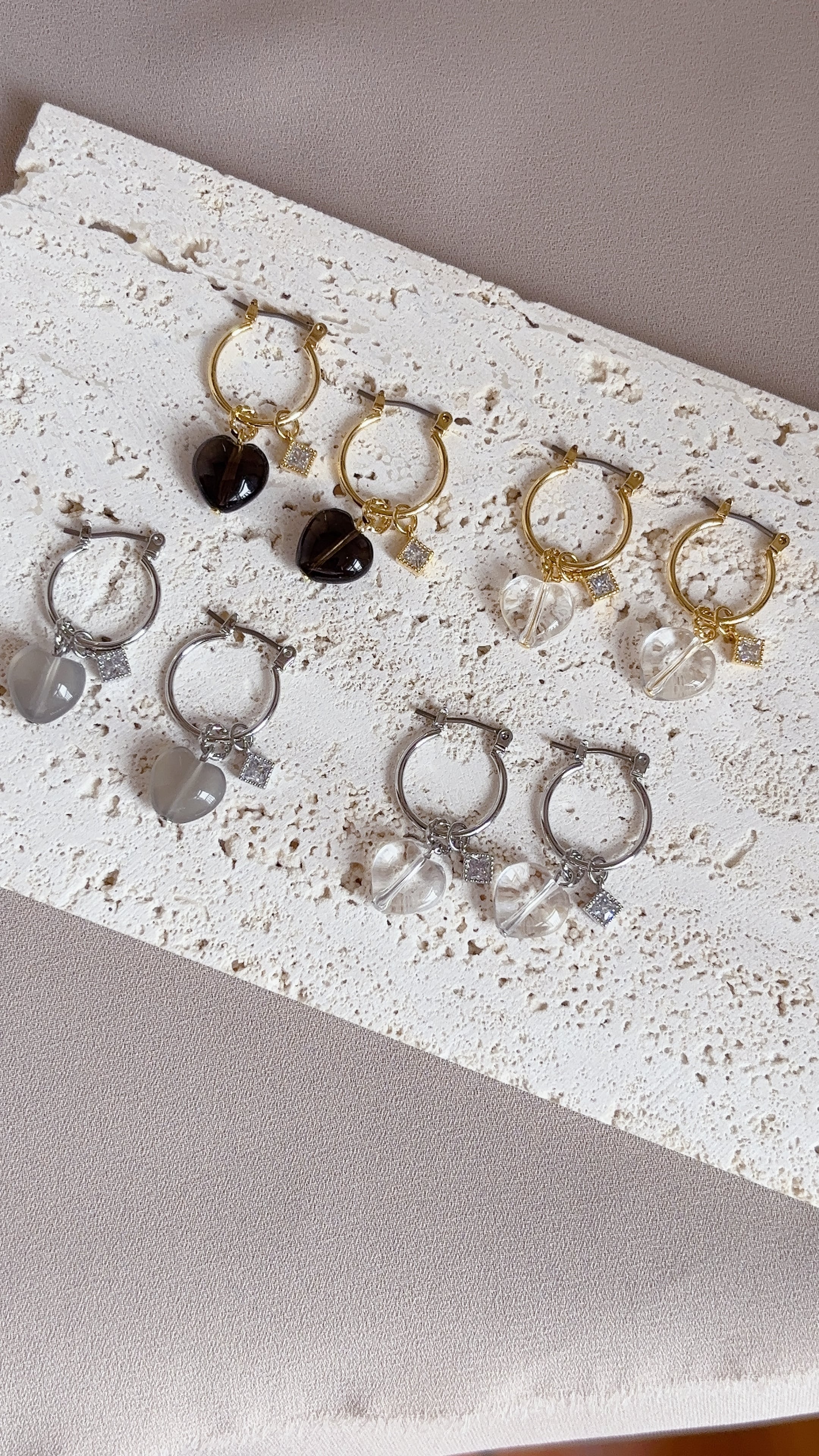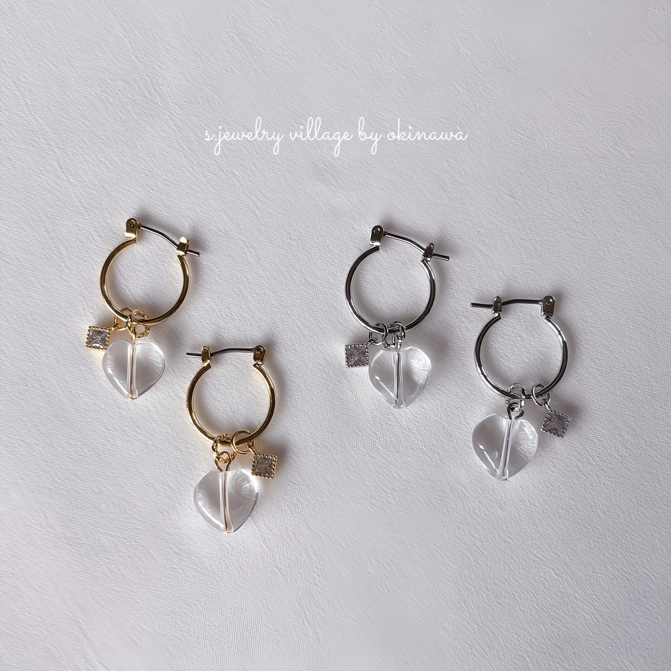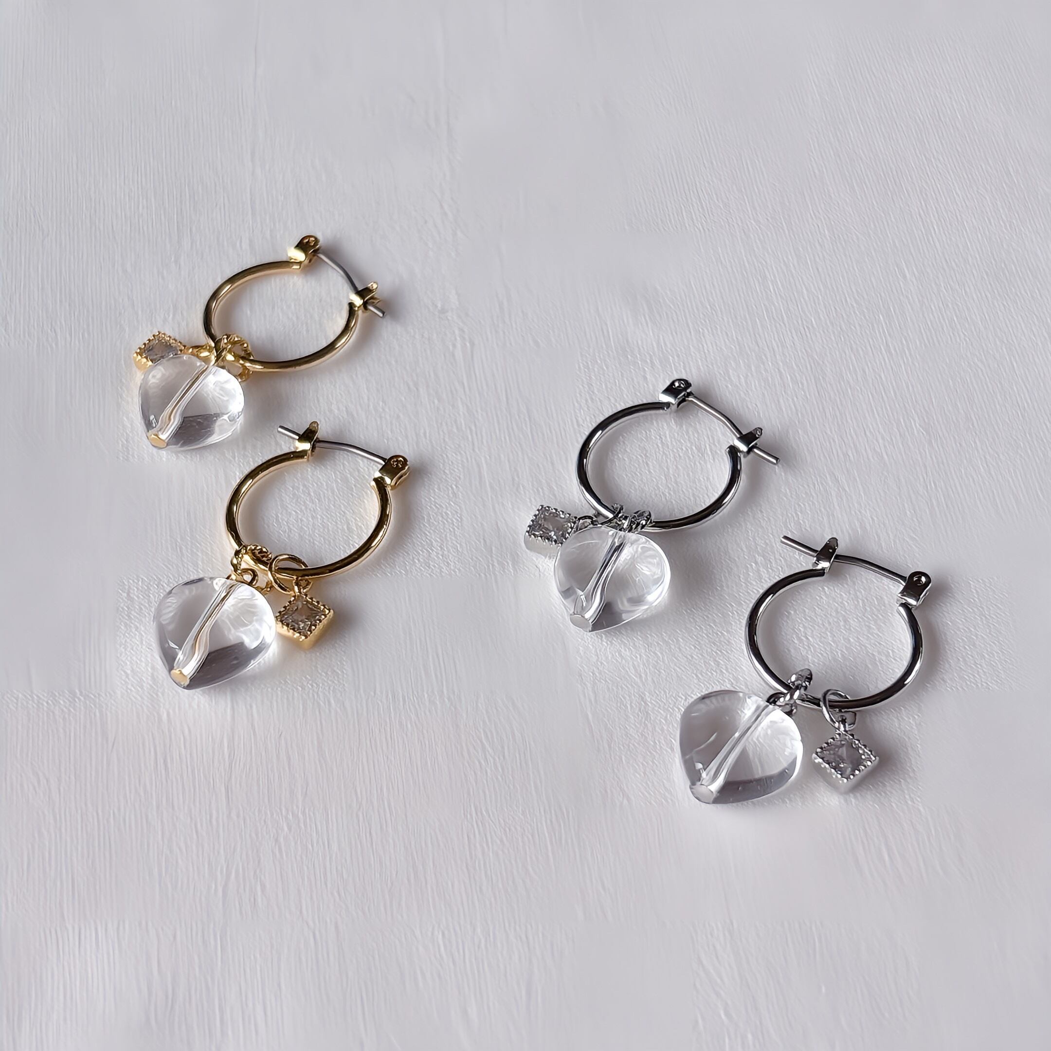 ハート水晶×フープピアス|大人可愛いマルチデザイン【金属アレルギー対応】