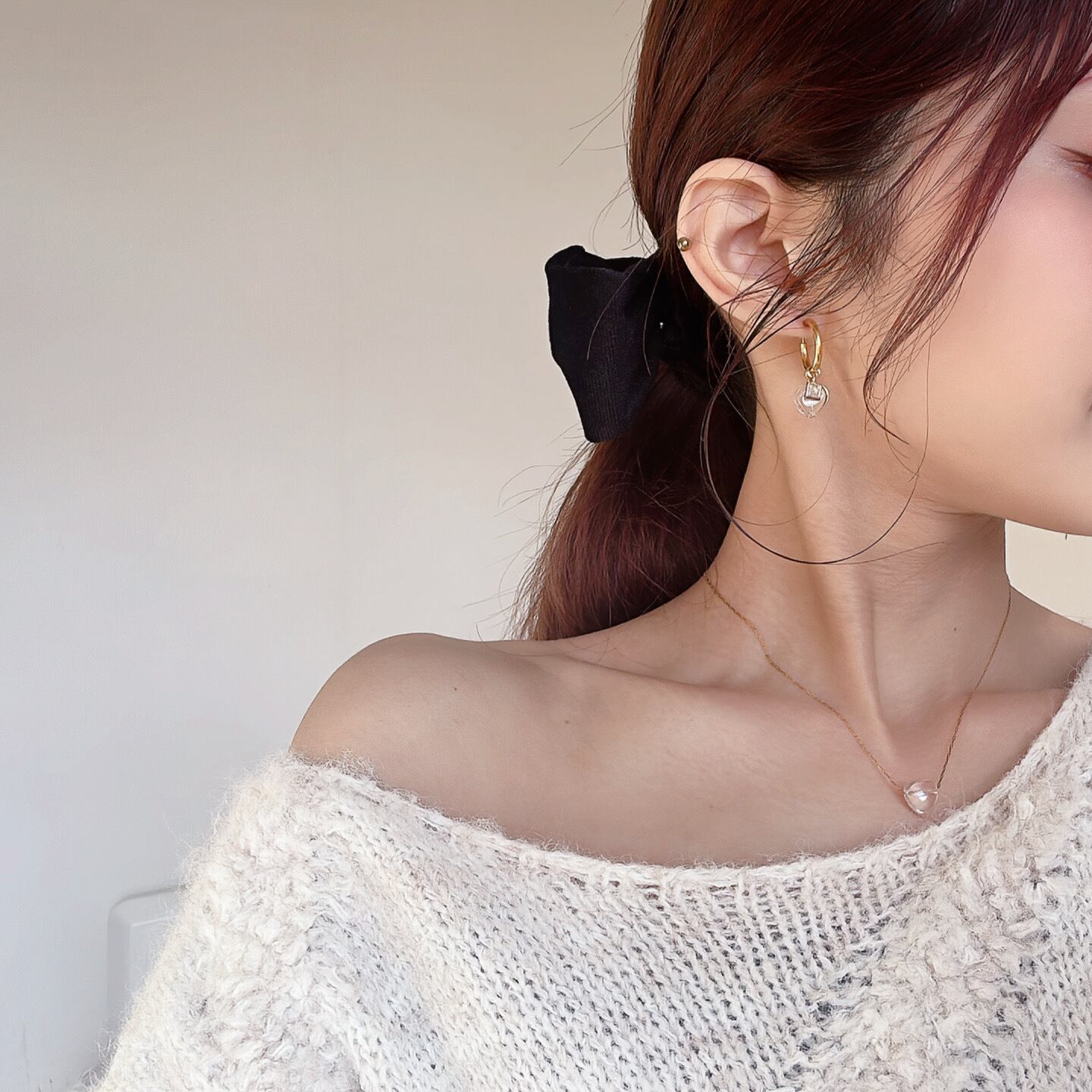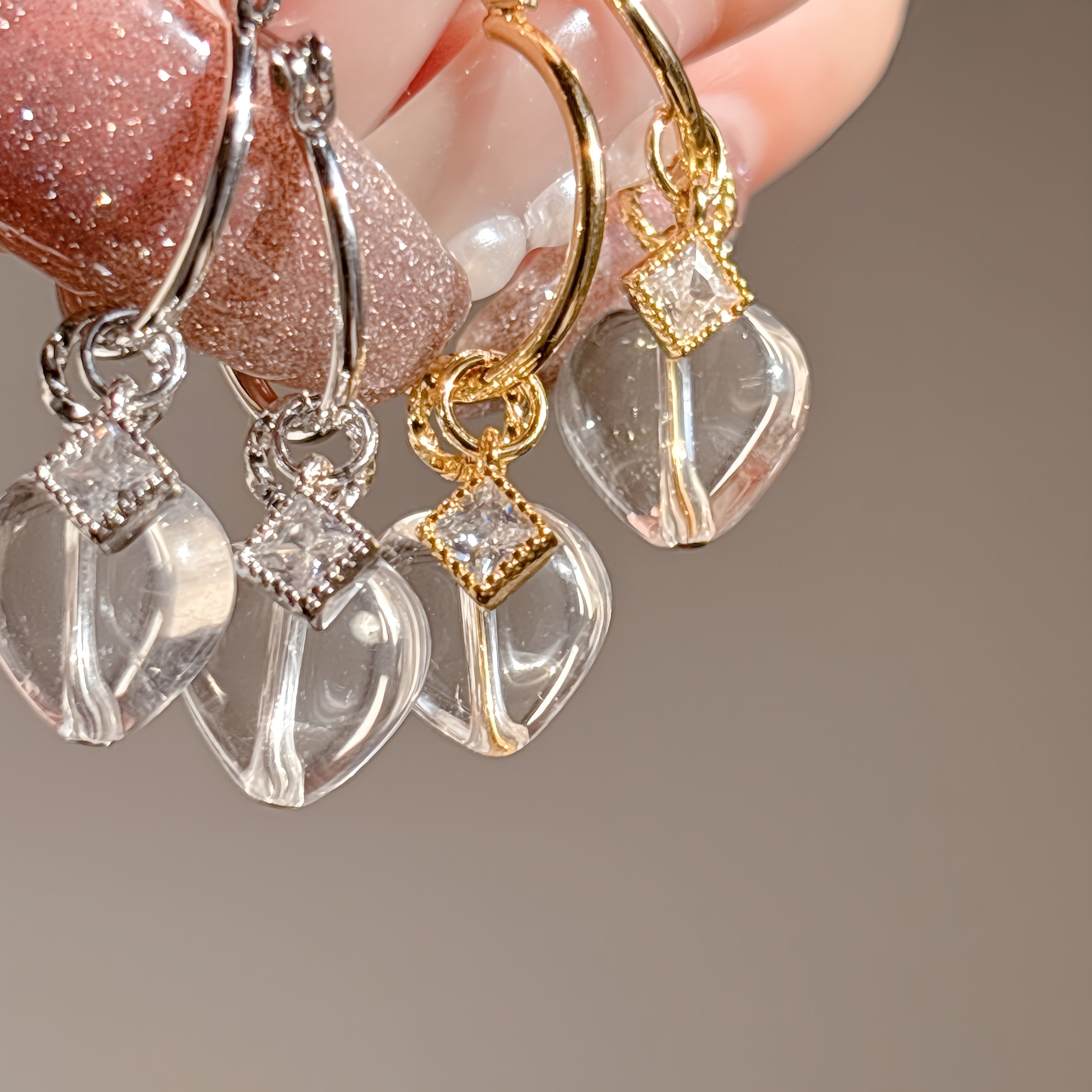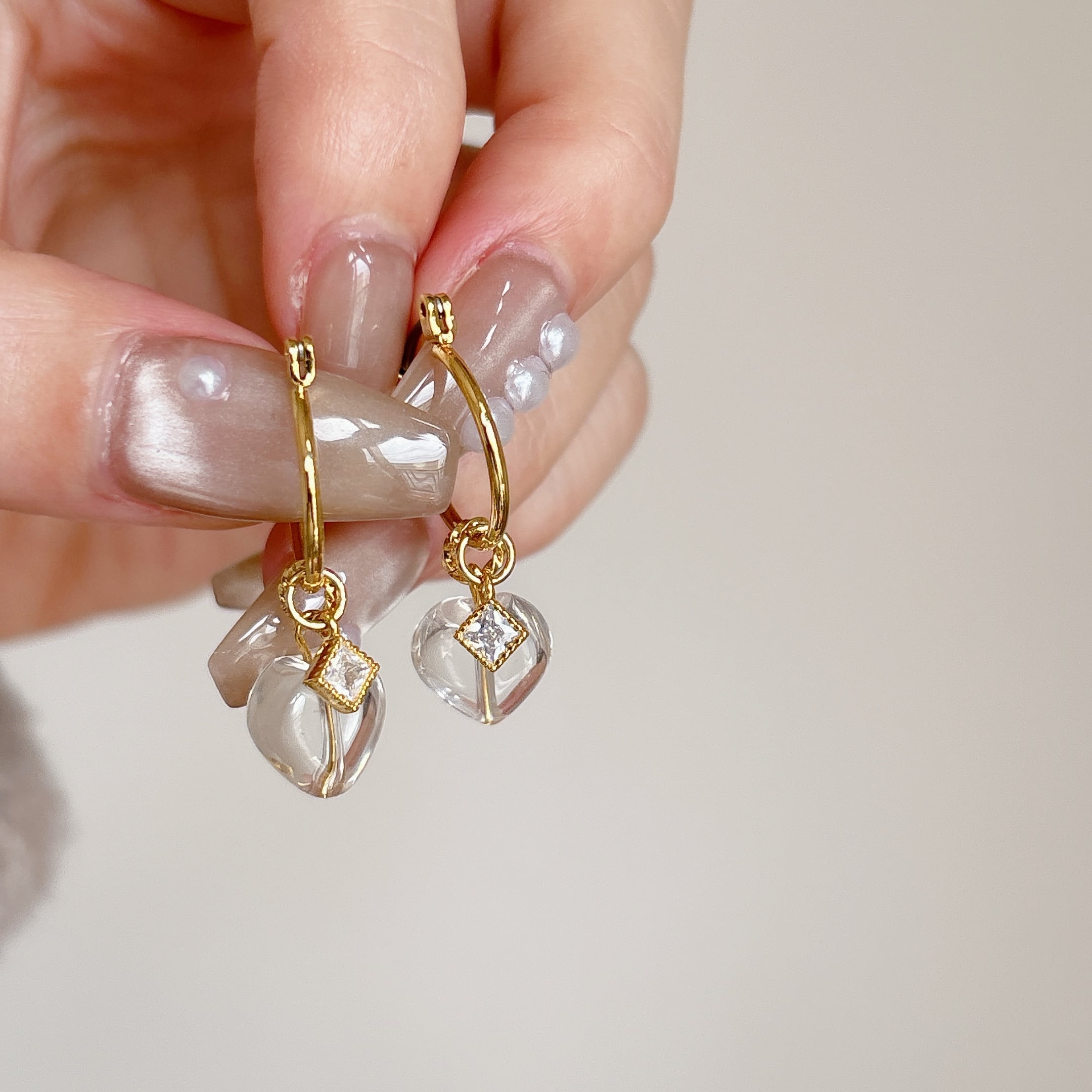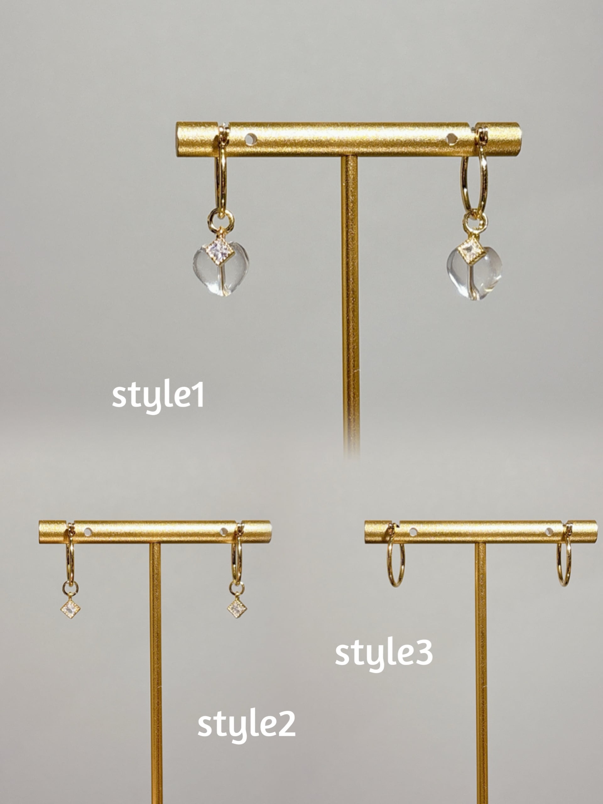 ハート水晶×フープピアス|大人可愛いマルチデザイン【金属アレルギー対応】