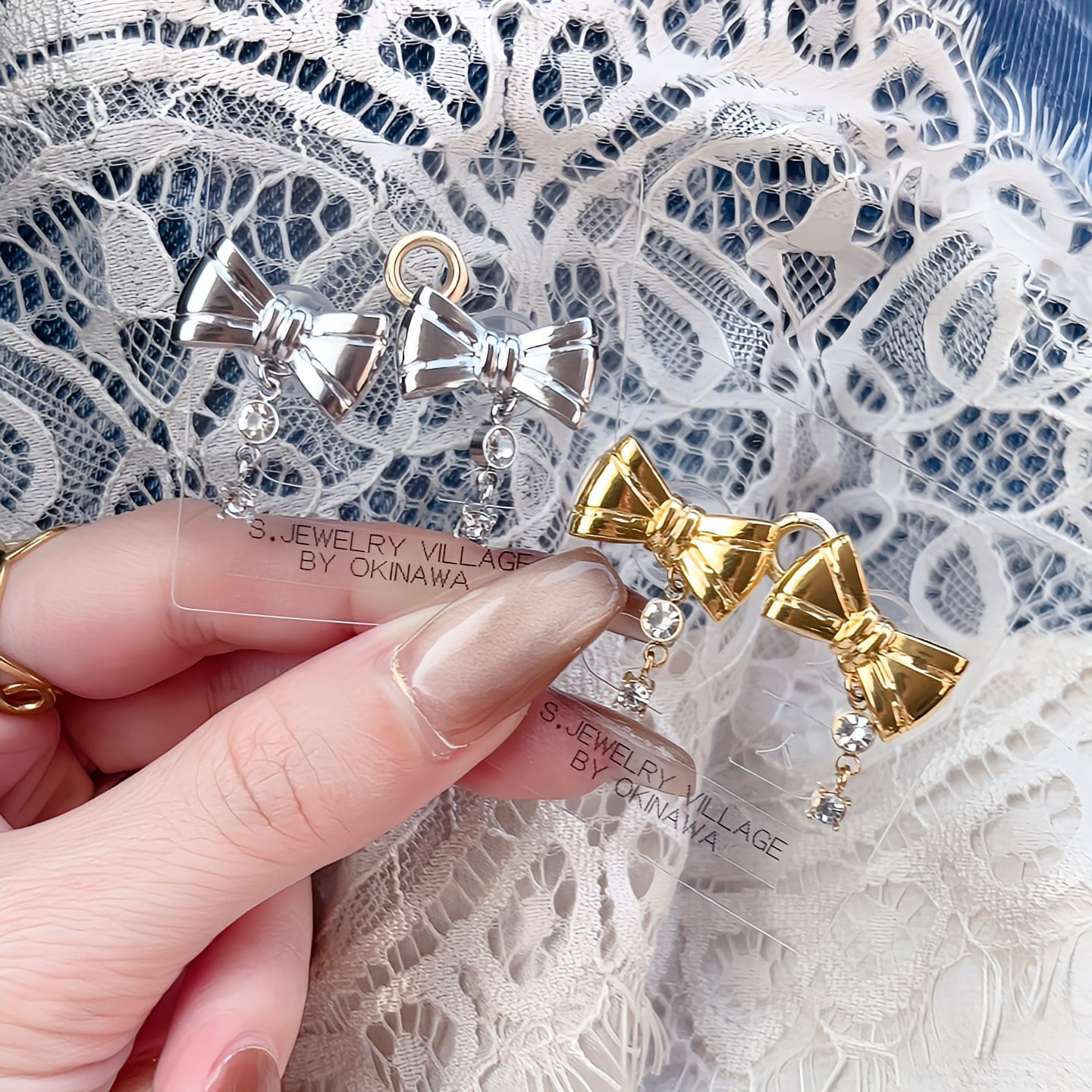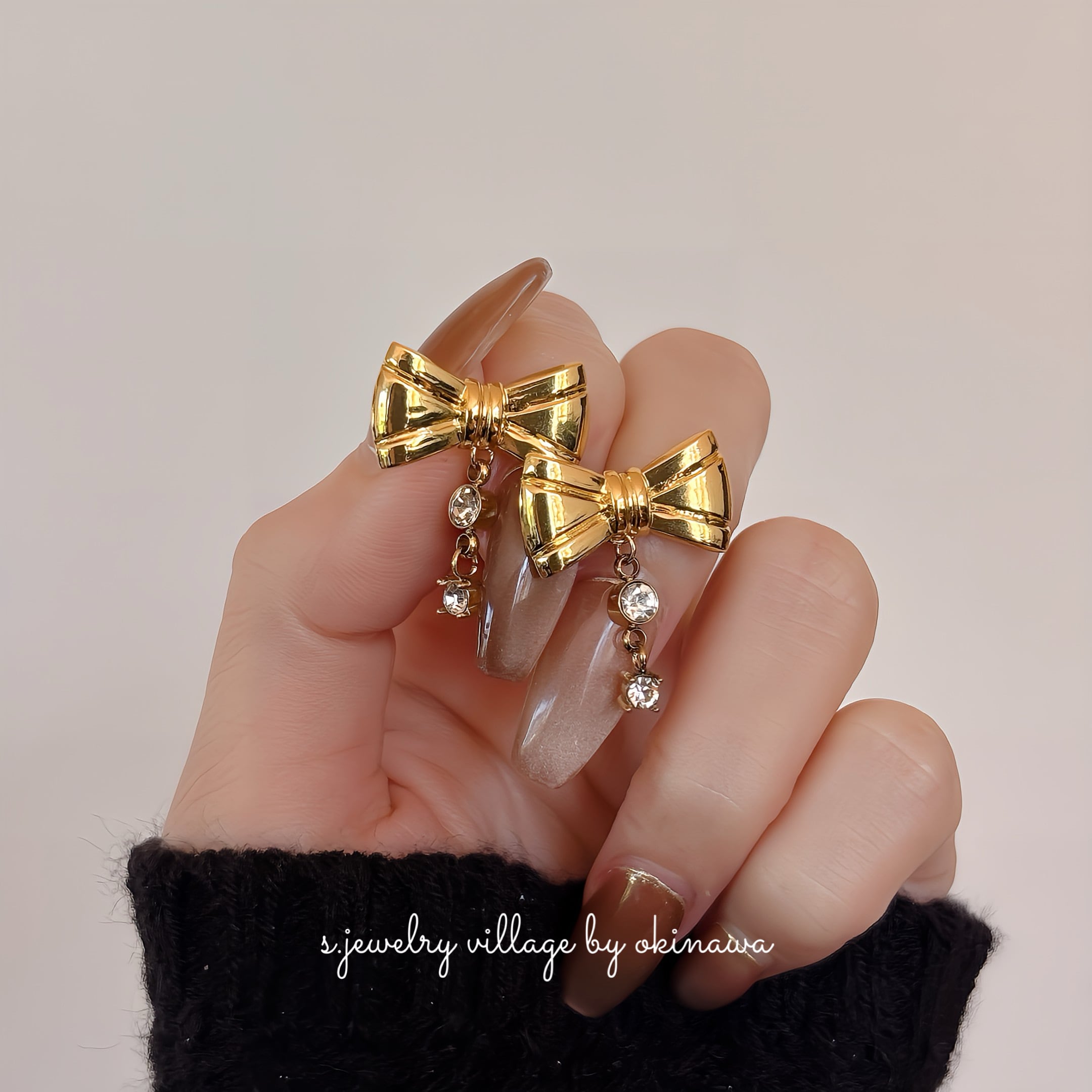 リボンビジューピアス | 2way 綺麗めカジュアル【金属アレルギー対応】