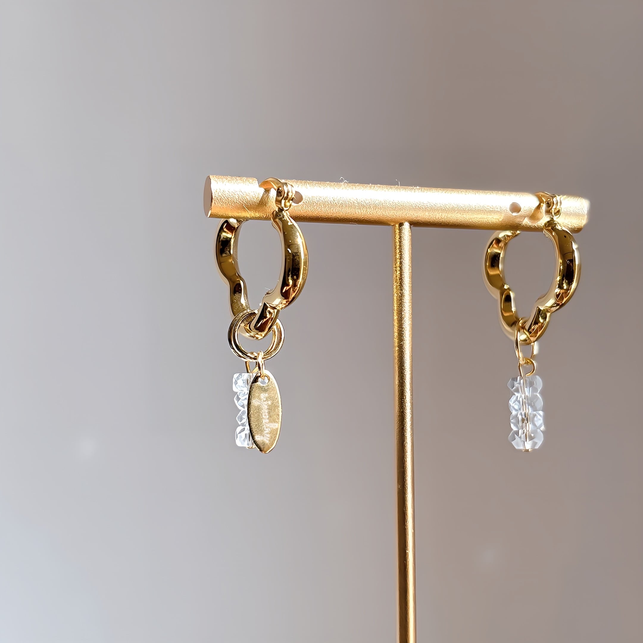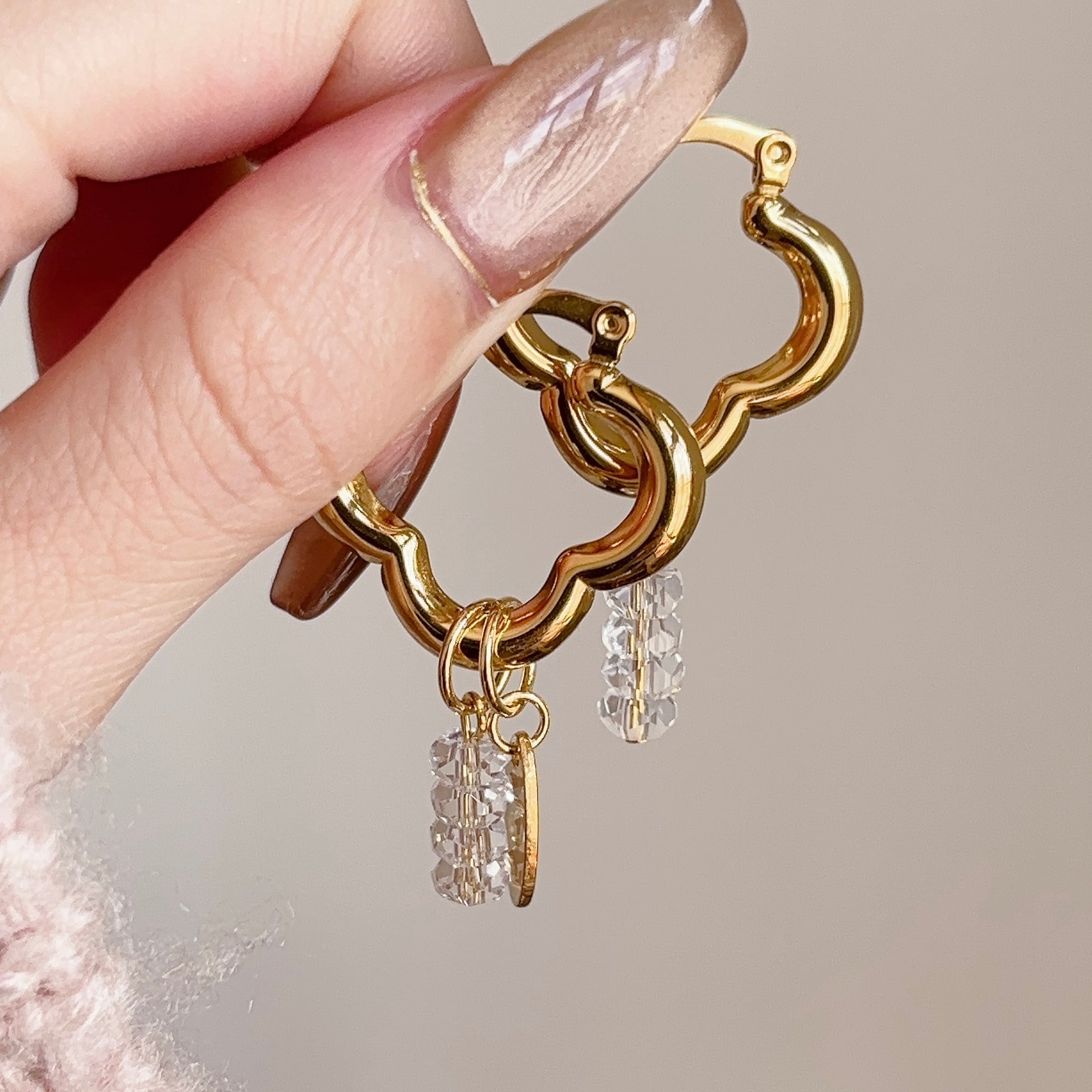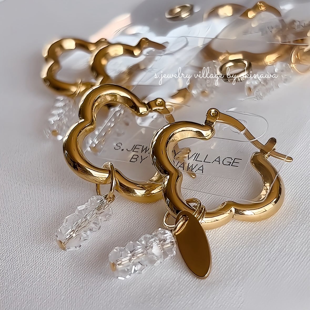 フラワーフープ×水晶ピアス | 2way 大ぶりピアス【金属アレルギー対応】