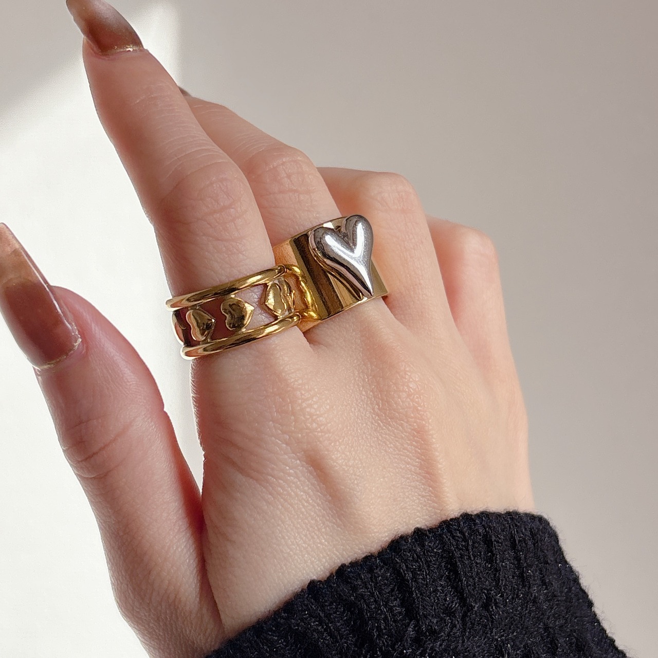 ハートラインリング | 大人カジュアル×大振り使い【金属アレルギー対応】