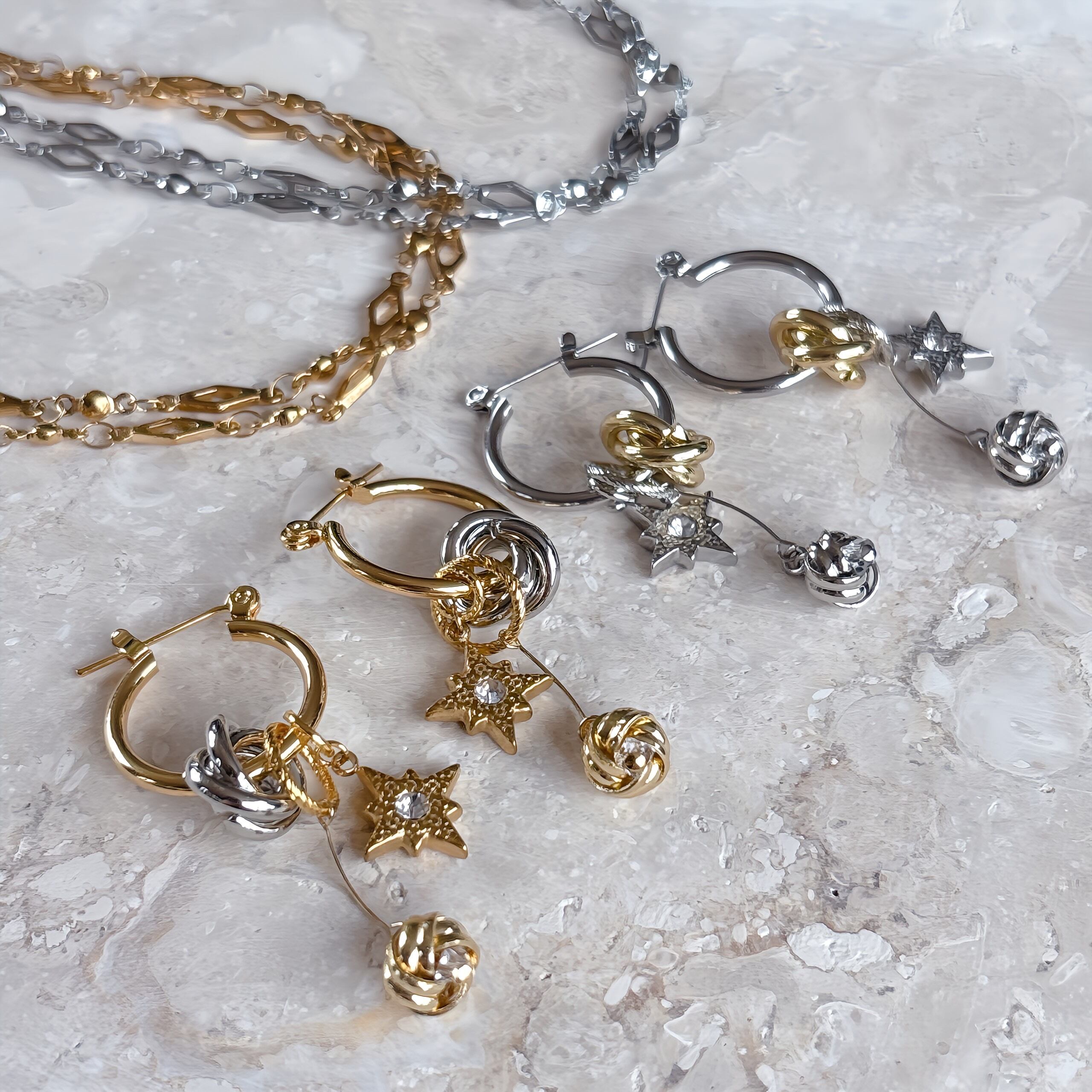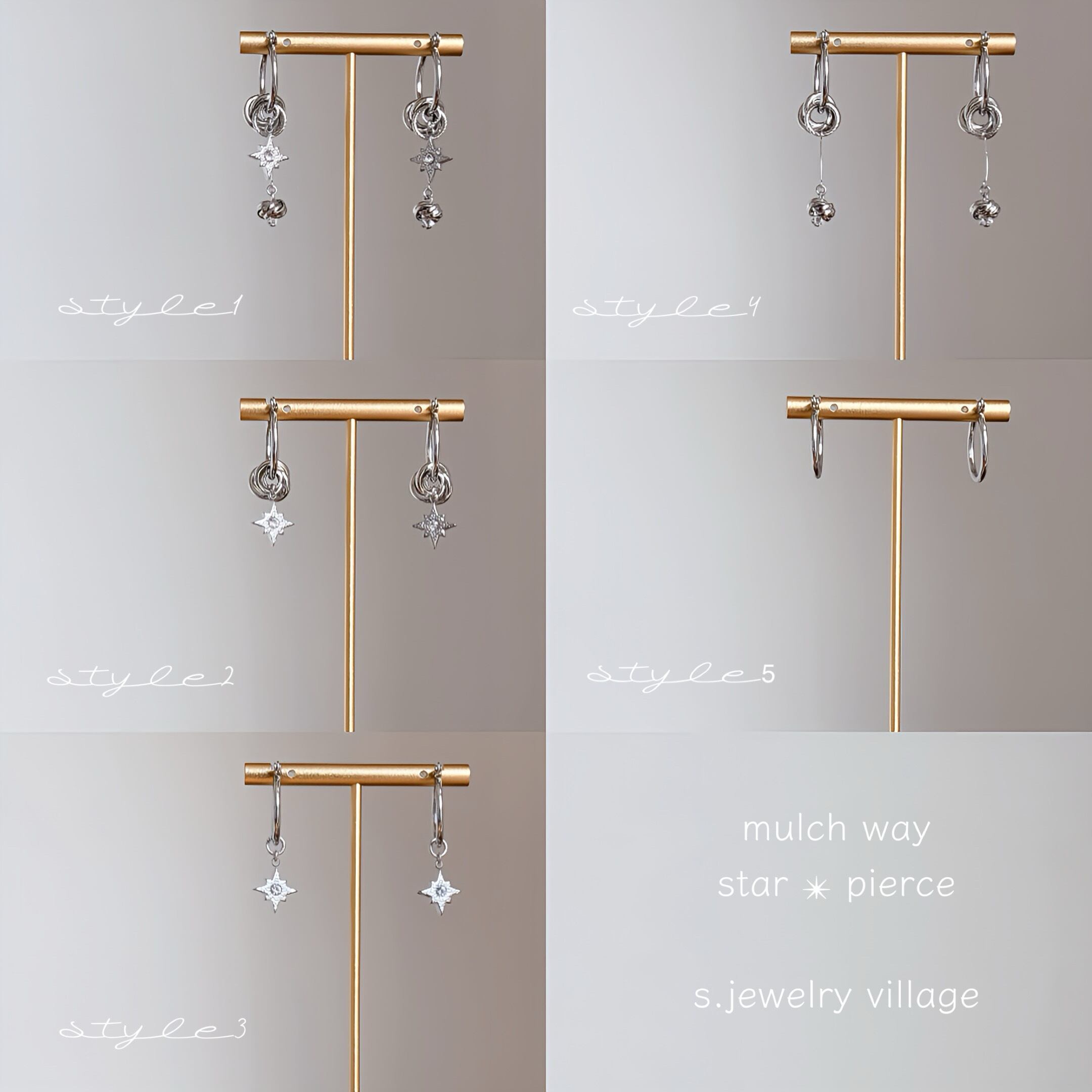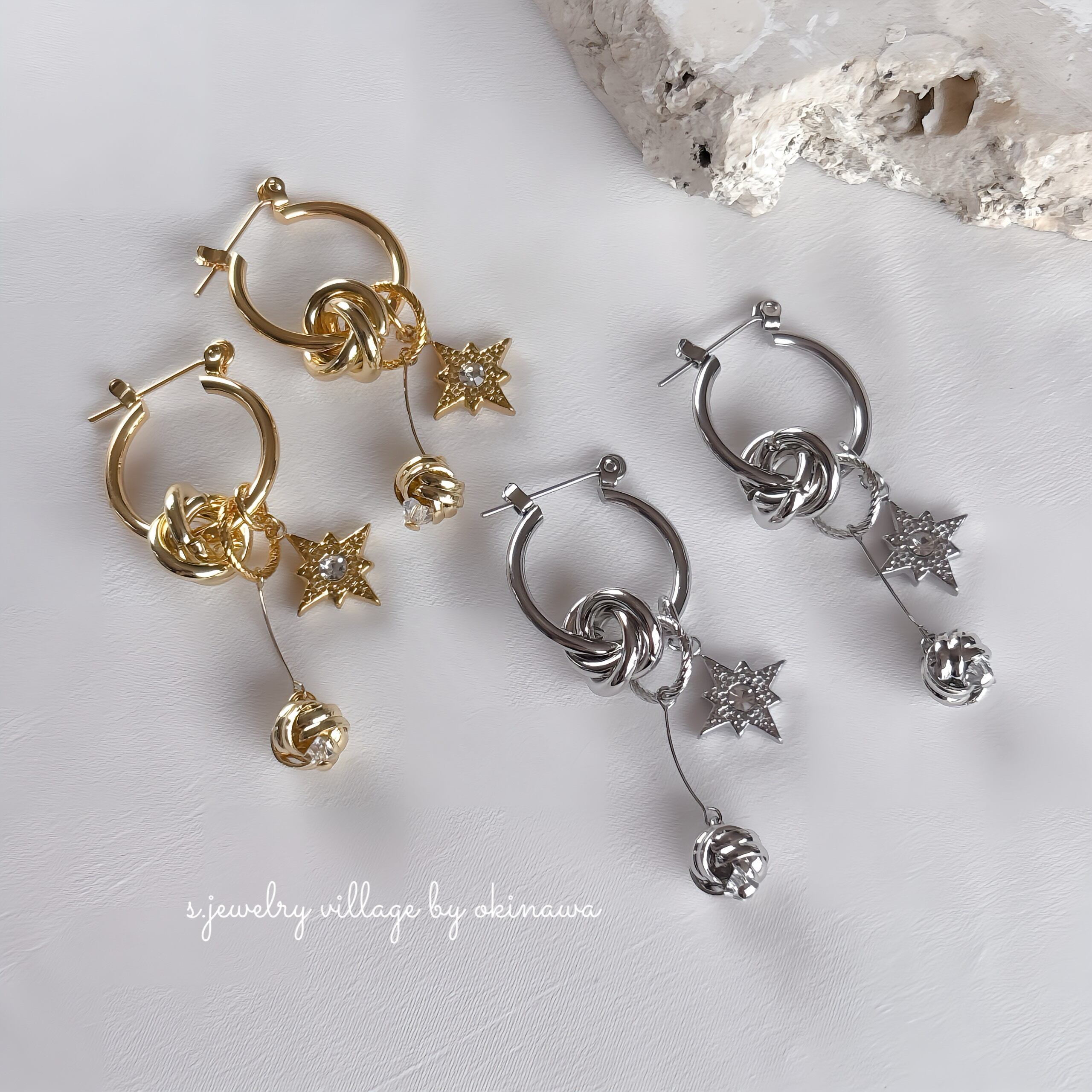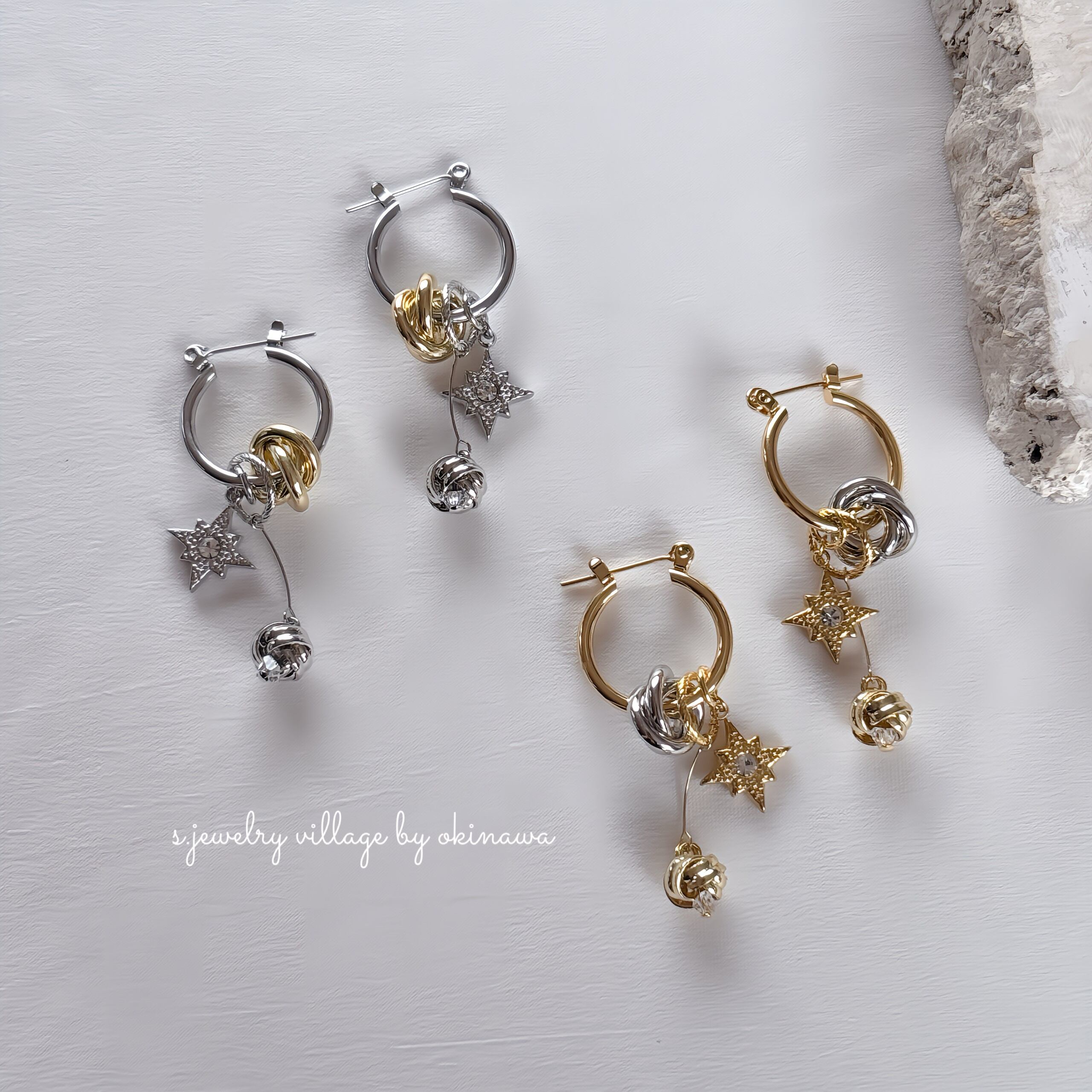 星チャーム×ノットピアス | mulch way × 大人カジュアル【金属アレルギー対応】