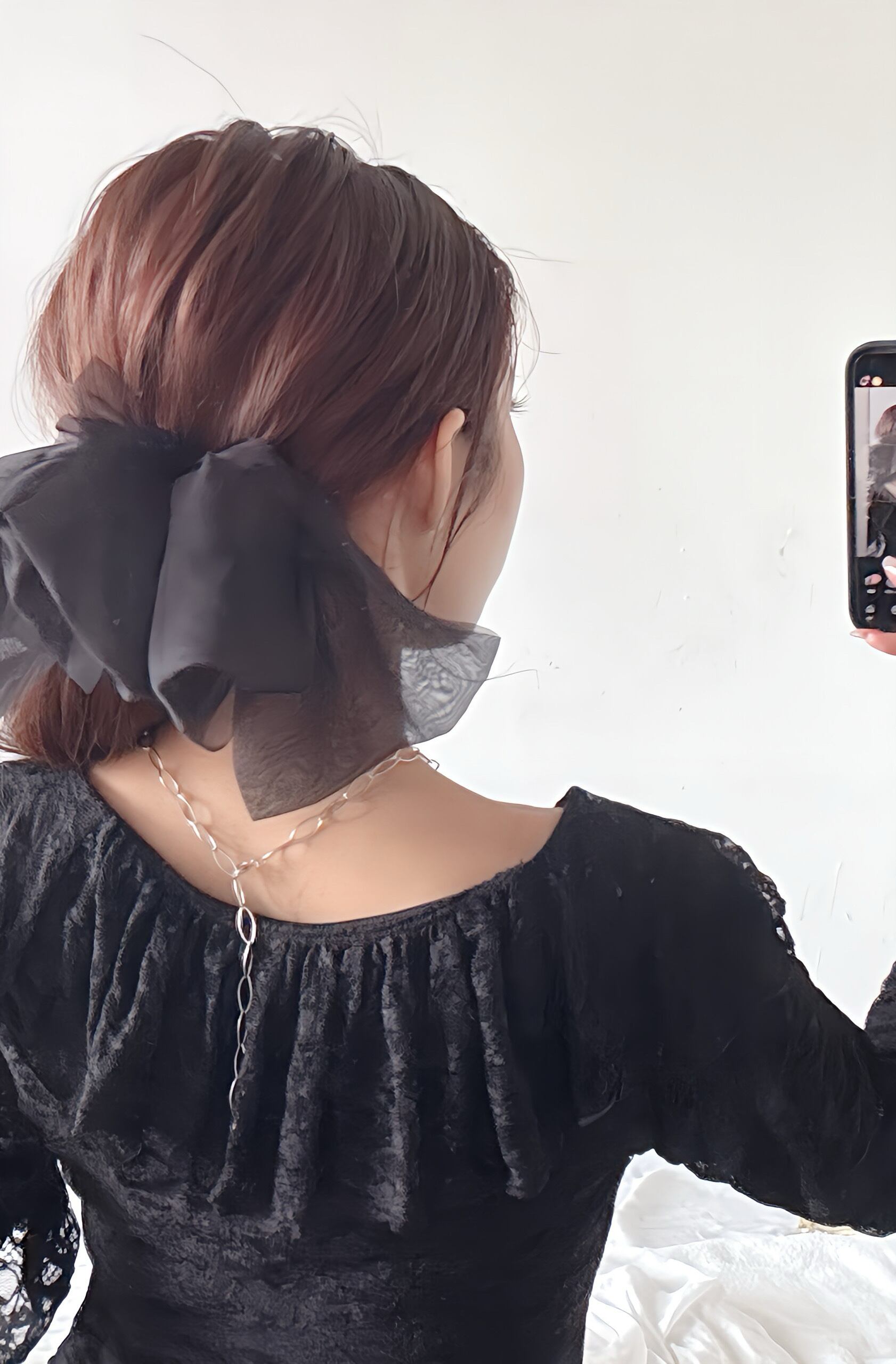 どの位置でも留め具が留められるので、その日の気分やお洋服に合わせた長さで楽しめます。