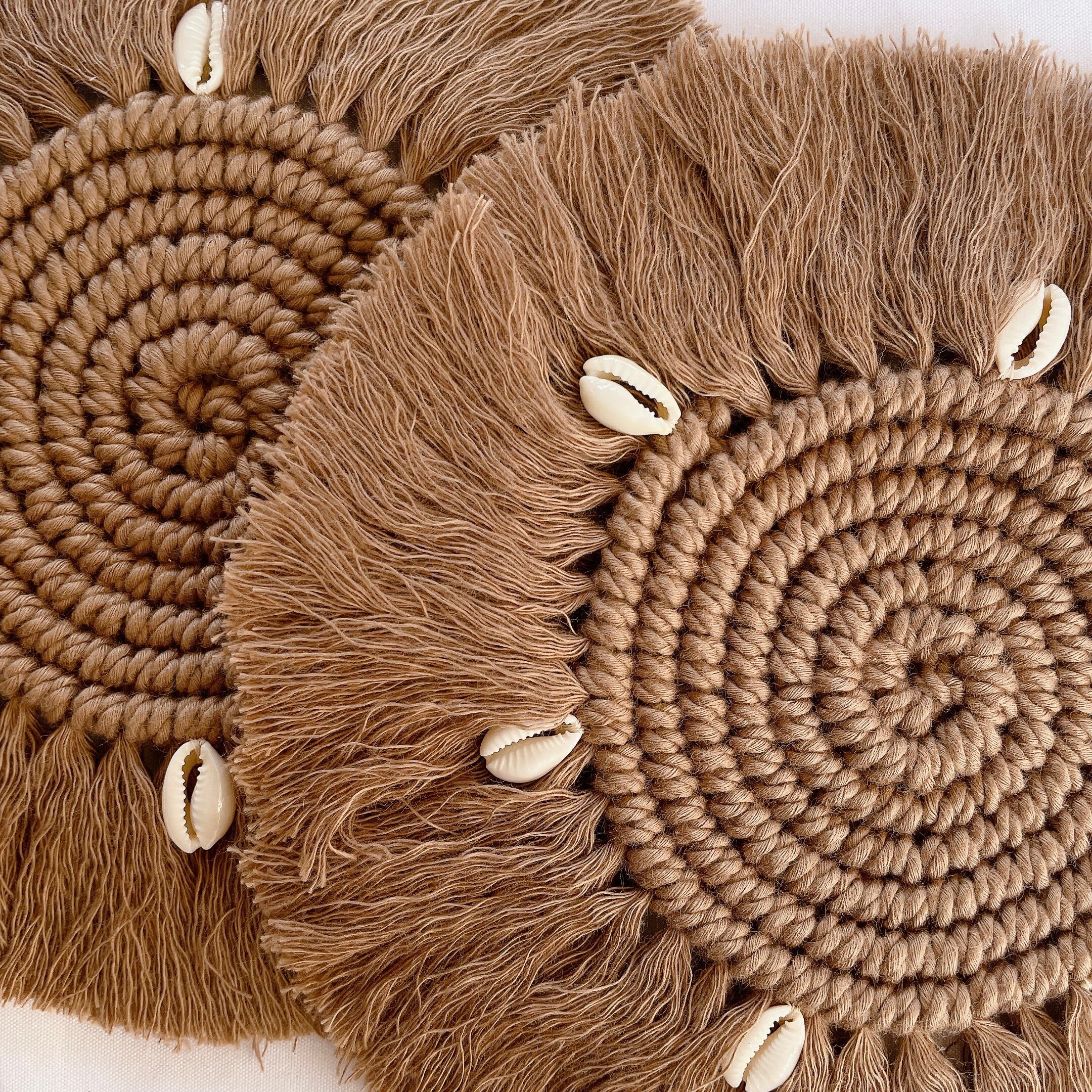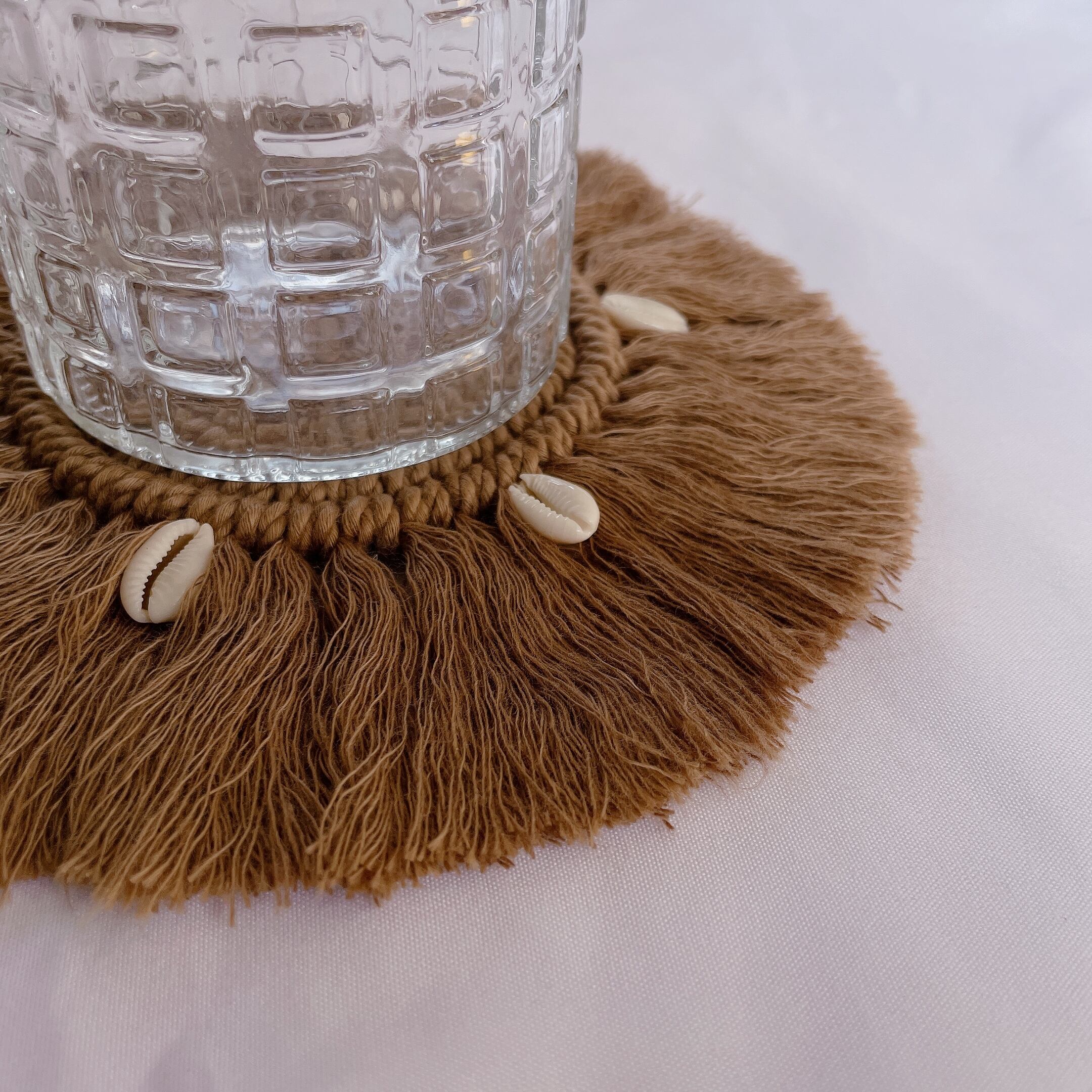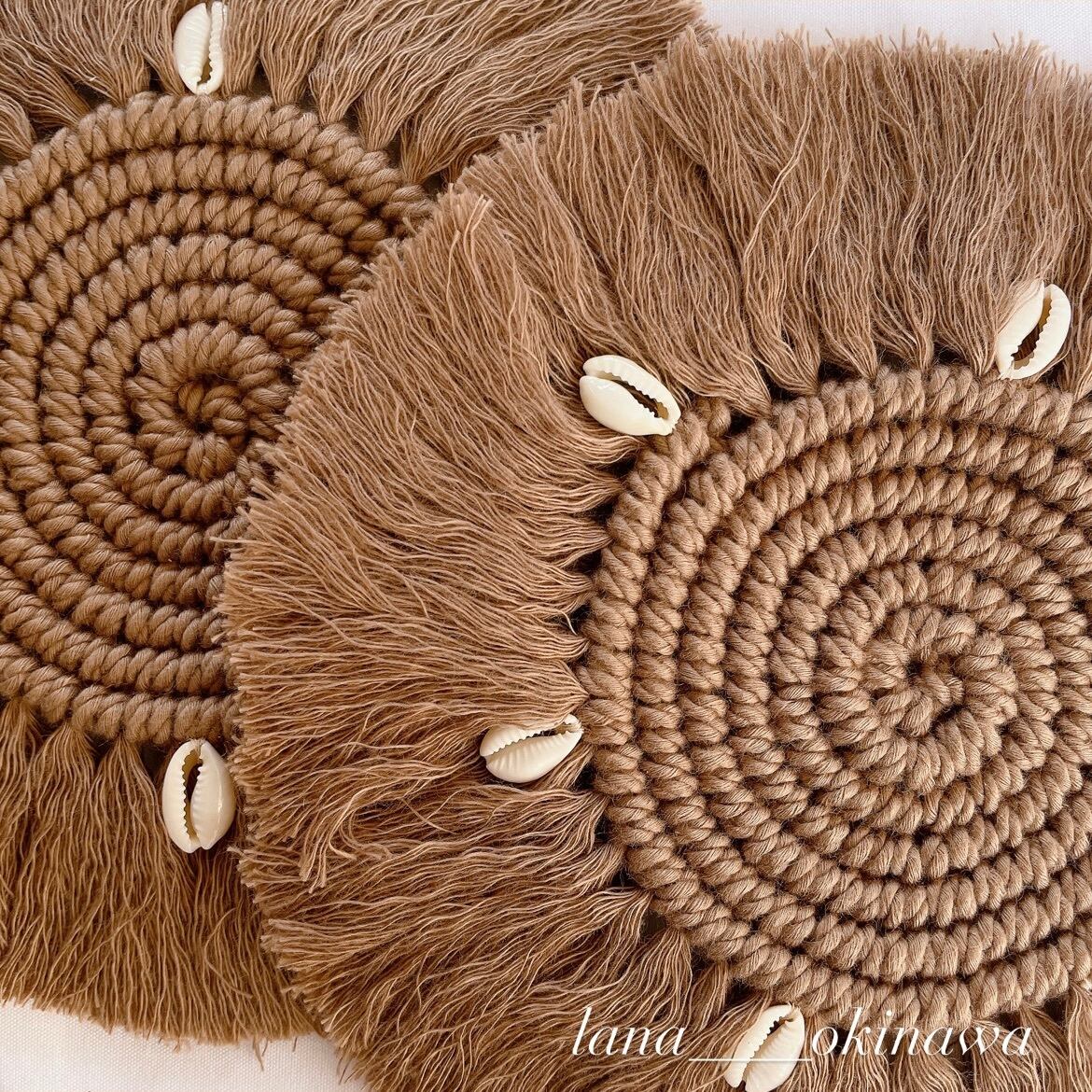 1つ1つ手編みのmacramé編みコースター。いろいろな用途で楽しめるインテリアです♡置くだけで温かみのある雰囲気に変えてくれるアイテム…♡おしゃれかつ、存在感のあるmacramécoaster 日常生活に添えてお楽しみください♡