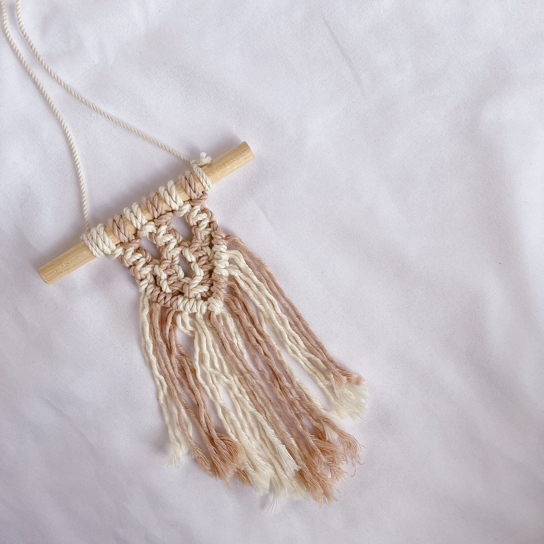 1つ1つ手編みのmacramé編みminiタペストリー。小さめのインテリアとして贈り物にもおすすめのアイテム。お家やお部屋だけでなく、車のバックミラー等にかけてあげても可愛いです♡