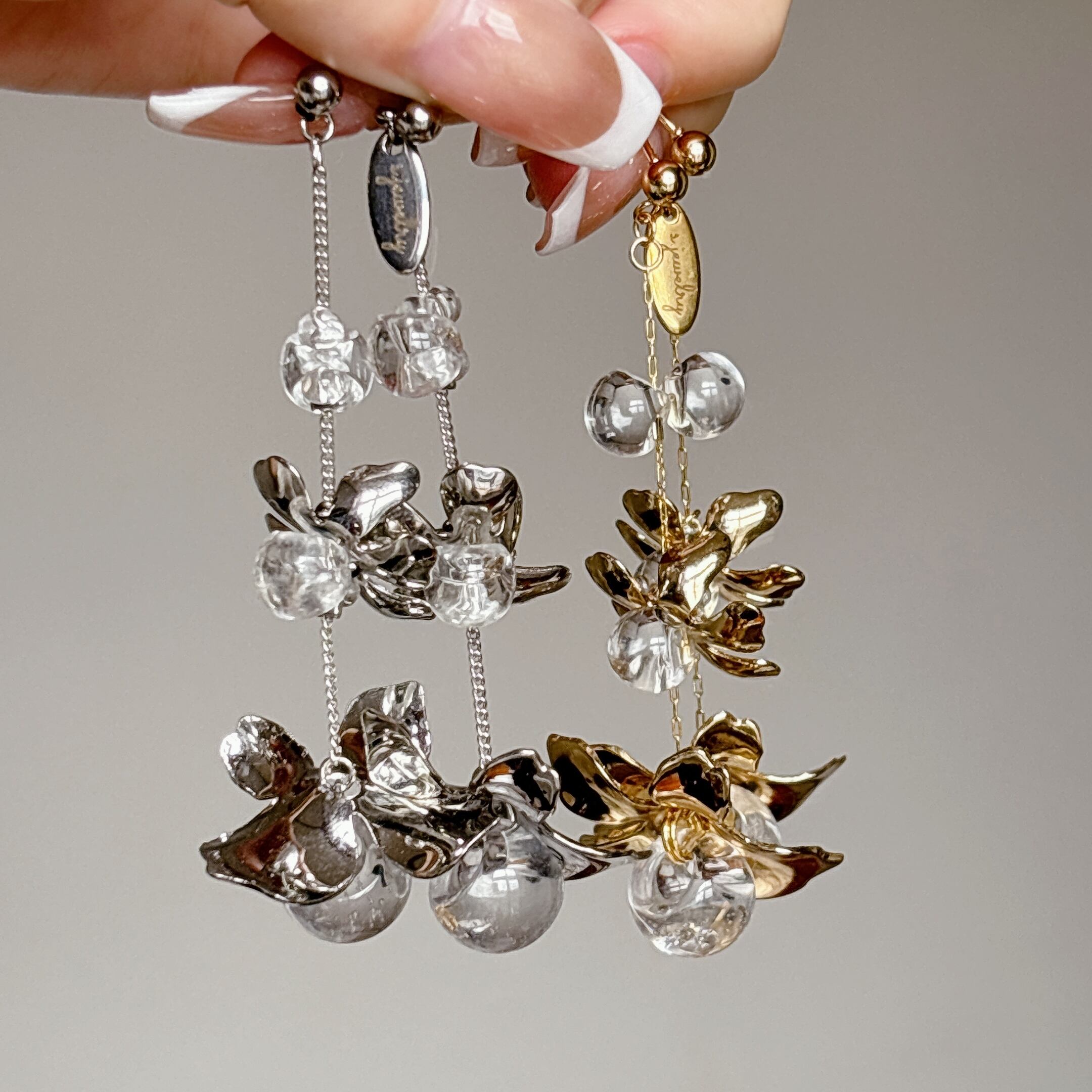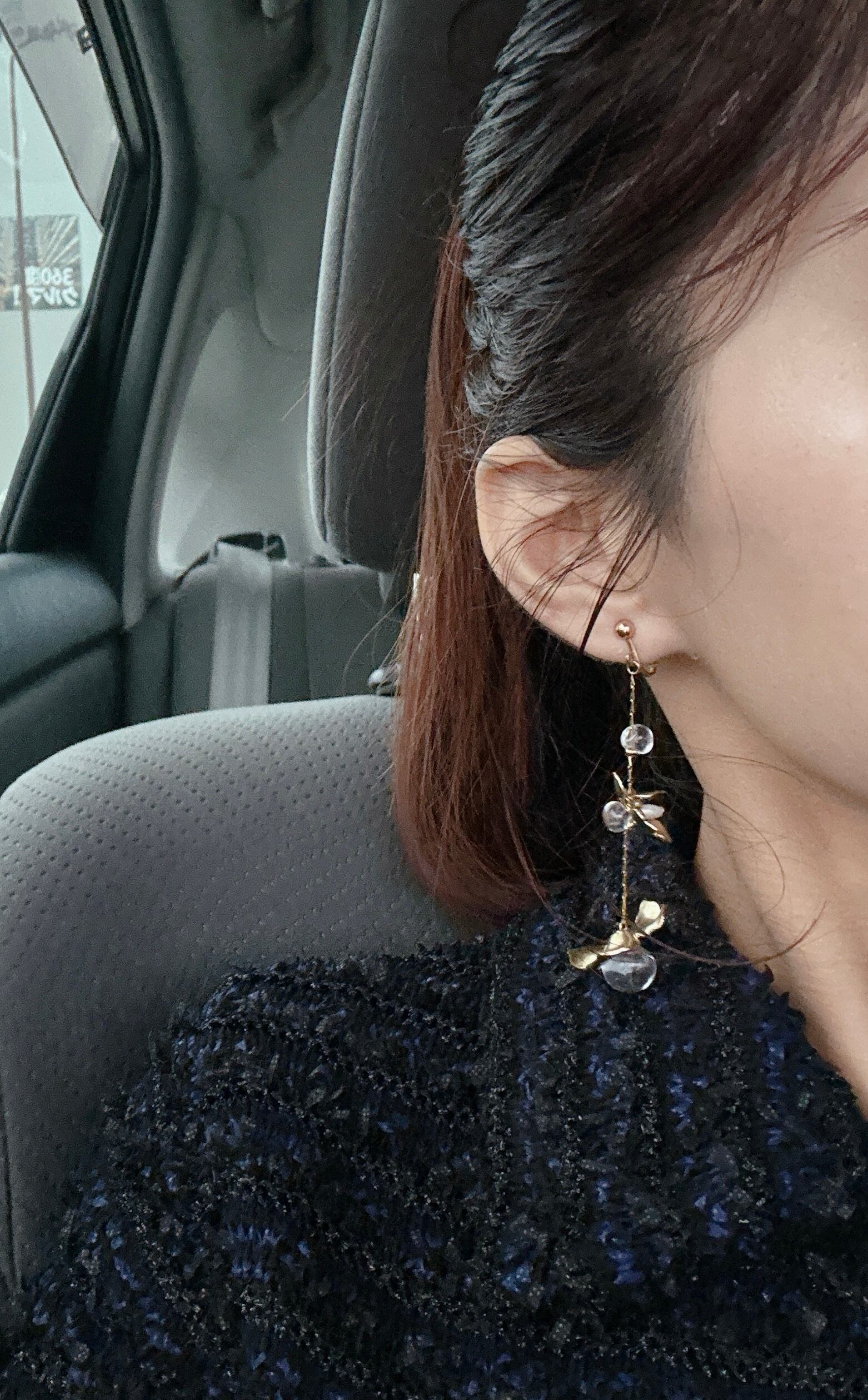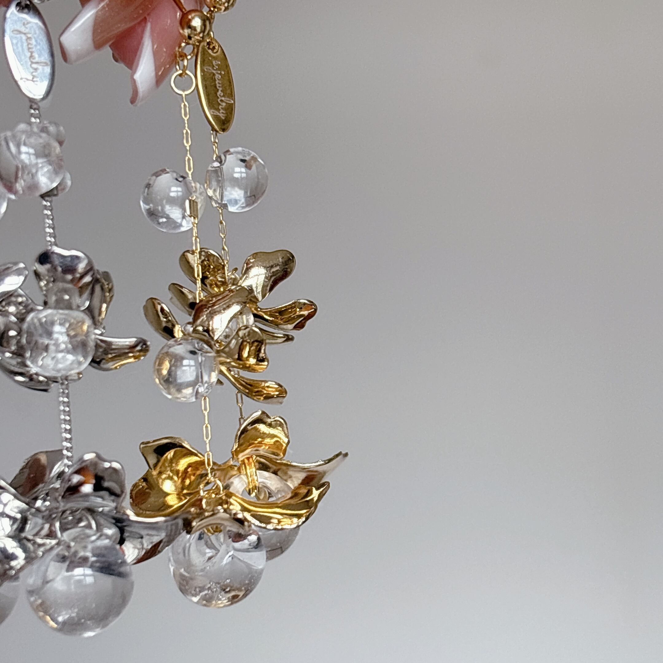 ビーズフラワーロングピアス | 綺麗めワンピコーデ×お呼ばれオケージョン【金属アレルギー対応】