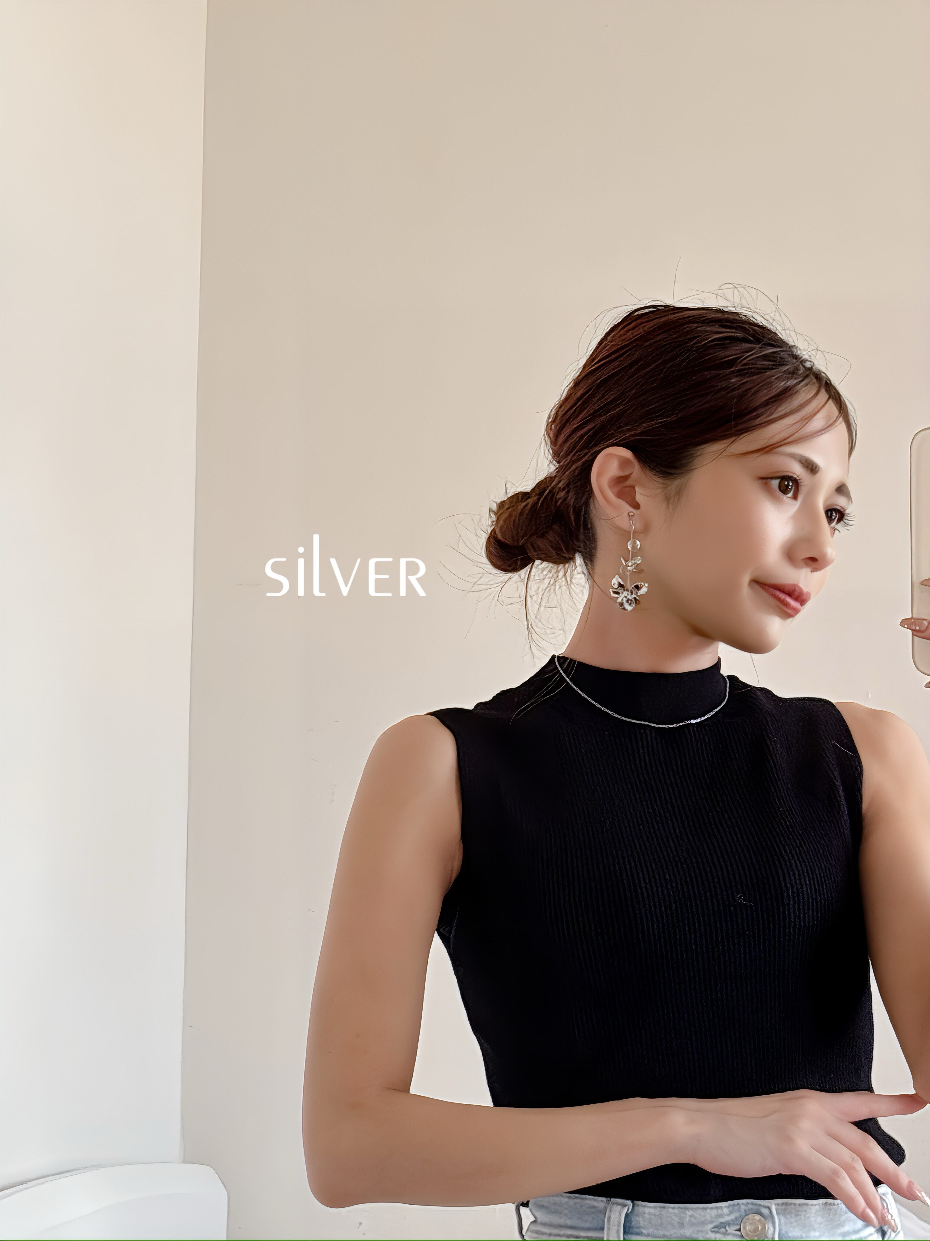 ご要望にお応えしてシルバーカラーも作成しました!ゴールドは華やかで可愛らし印象ですが、シルバーは凛とした色味がクールです。お呼ばれドレスにもバッチリ合わせていただけます♪