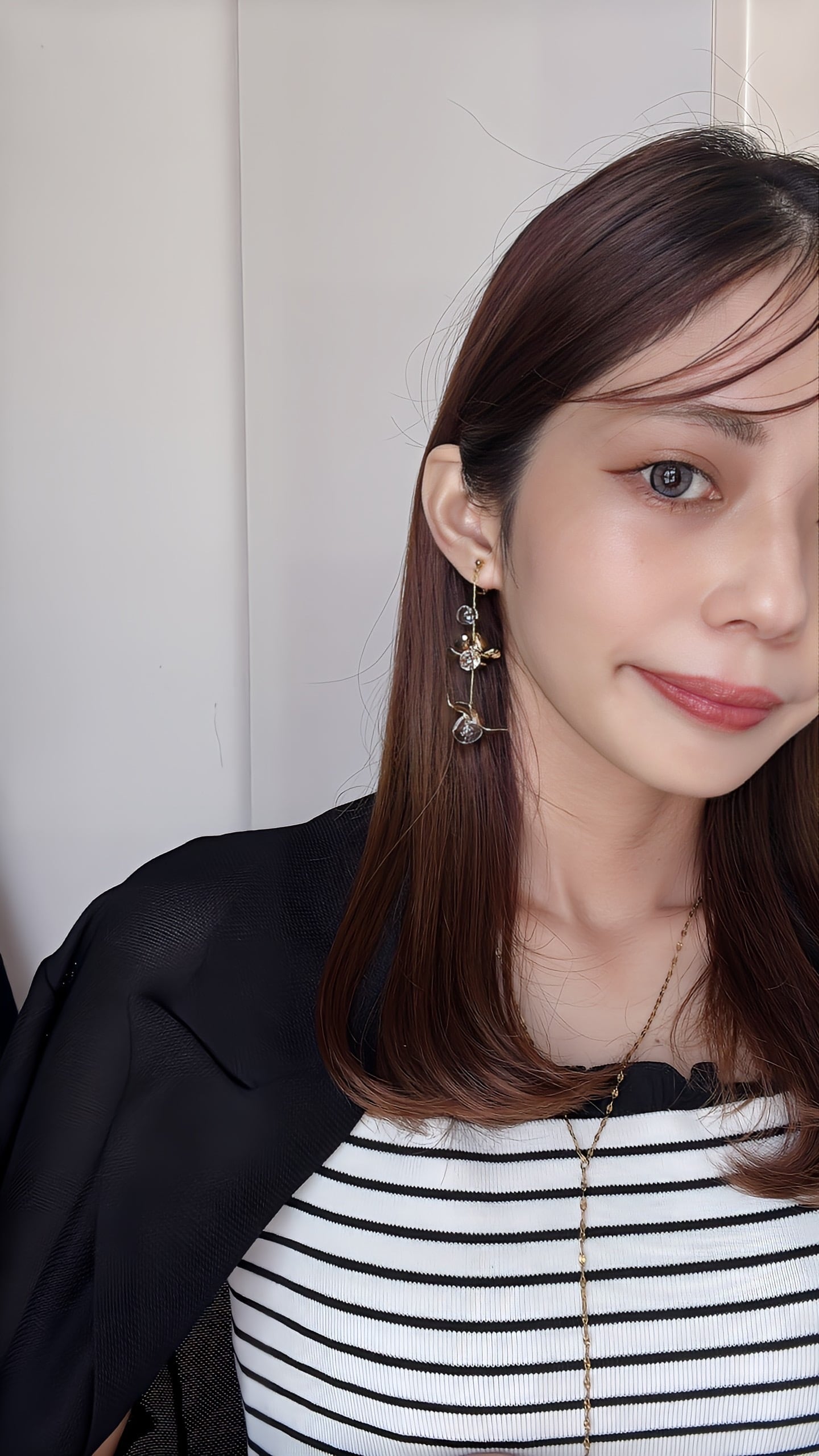 大人カジュアル / 綺麗めカジュアル / お呼ばれコーデ / 結婚式 / フラワーピアス / ロングフラワー / クリアピアス / 綺麗めコーデ / ブラウスコーデ / occasion