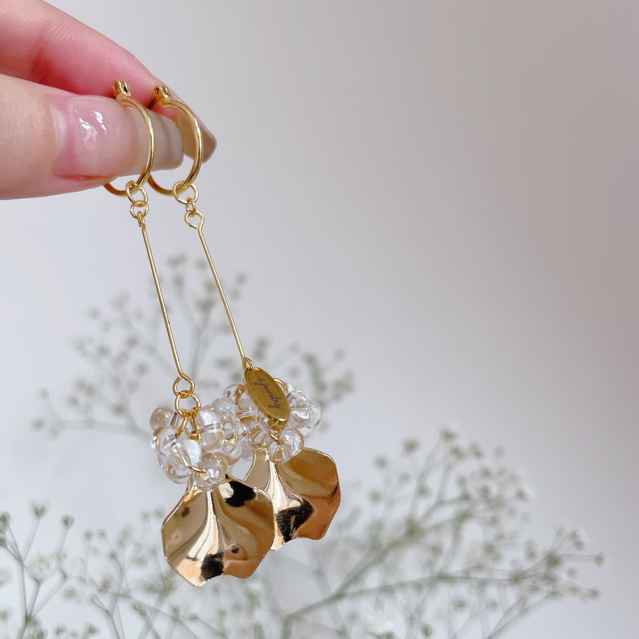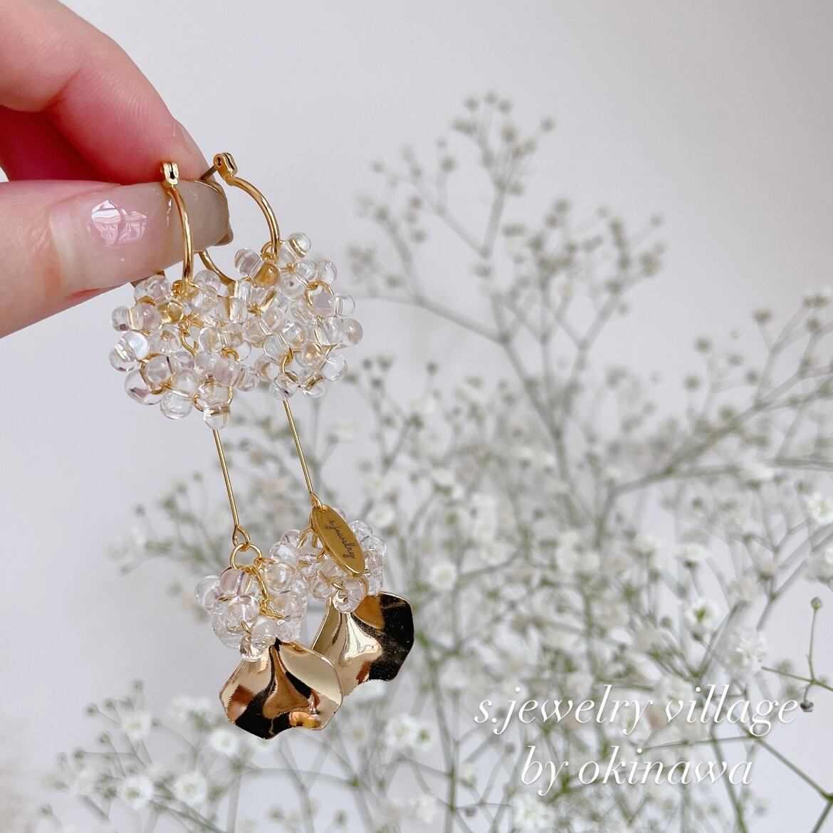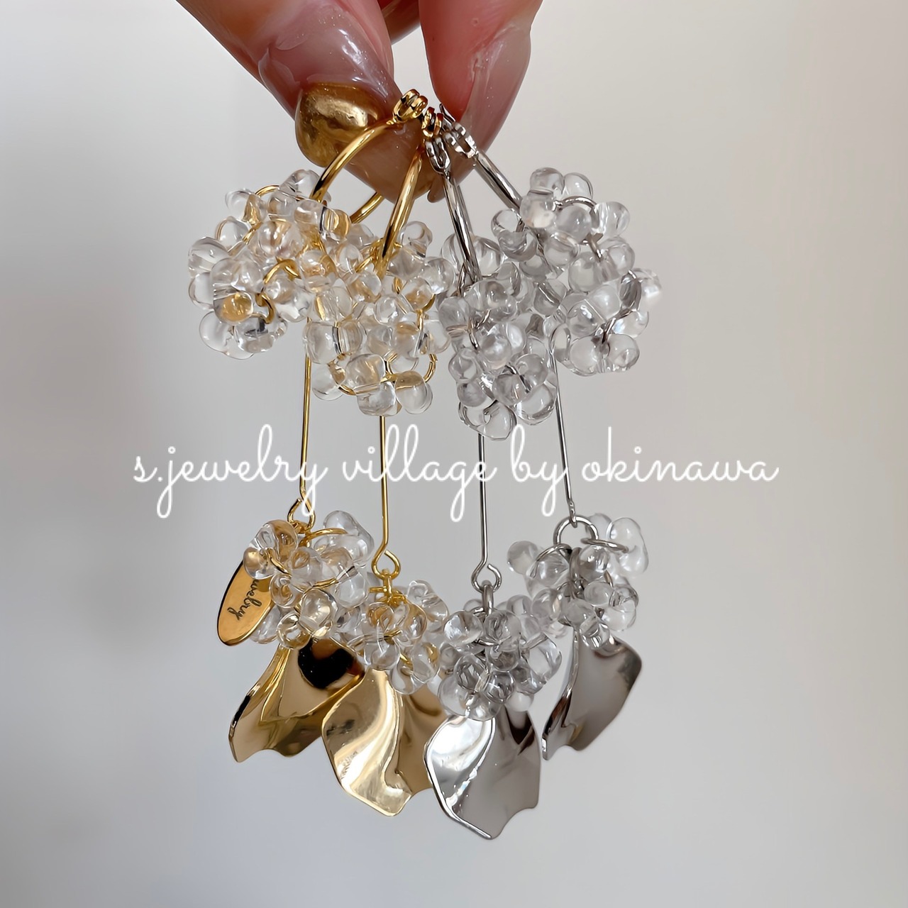 クリアビーズピアス | 4way × お出かけコーデ【金属アレルギー対応】