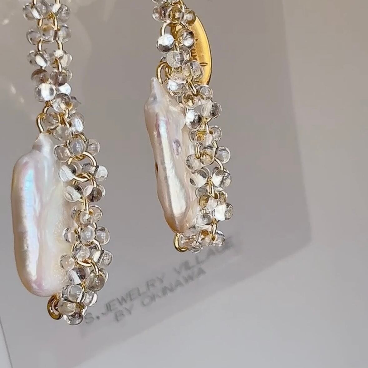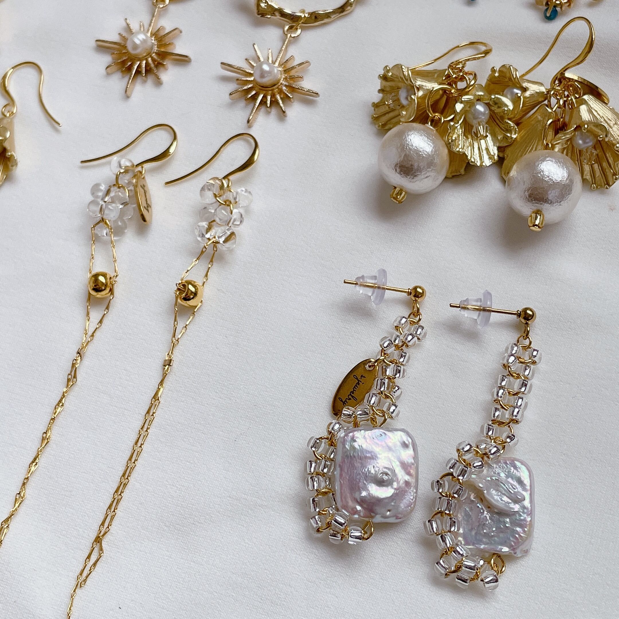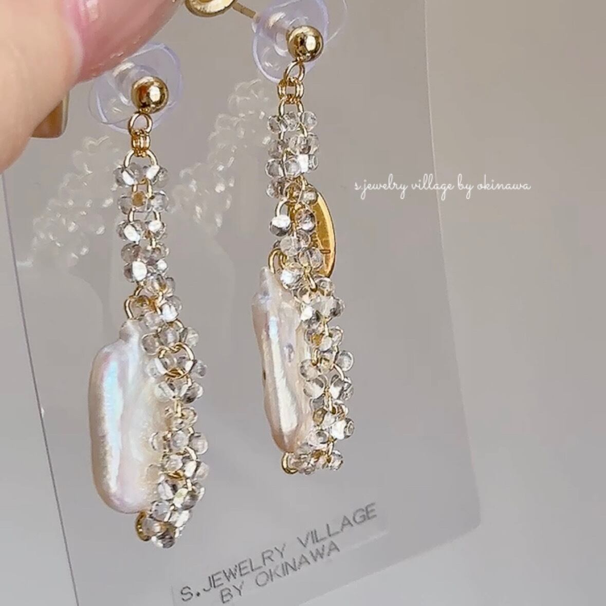 淡水パール✖️クリアビーズが華やかさを引き立たせてくれるデザイン♡ワンピースコーデや、綺麗めなお出かけコーデ、普段使いもしやすい、オケージョン使いもできるように仕上げてます♩