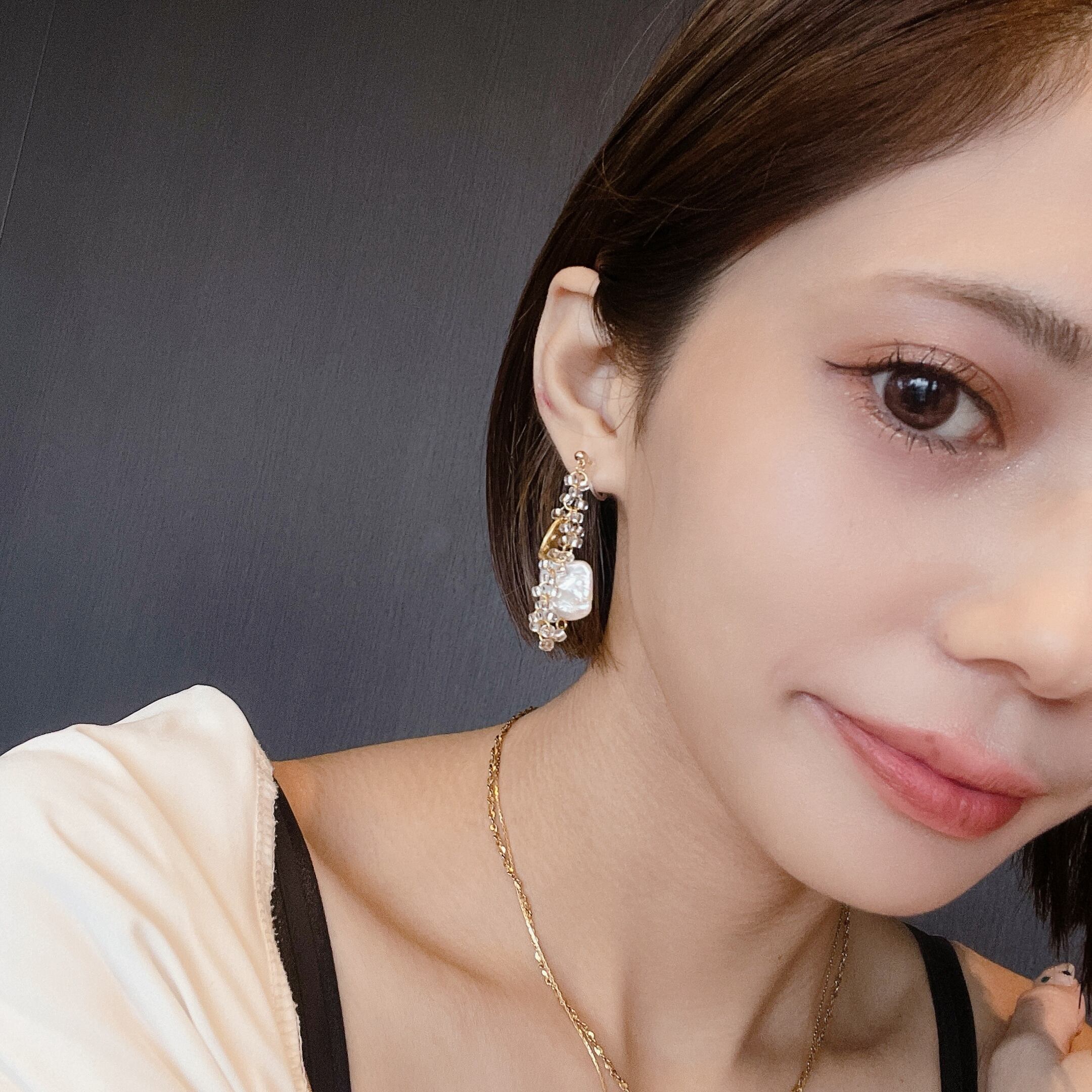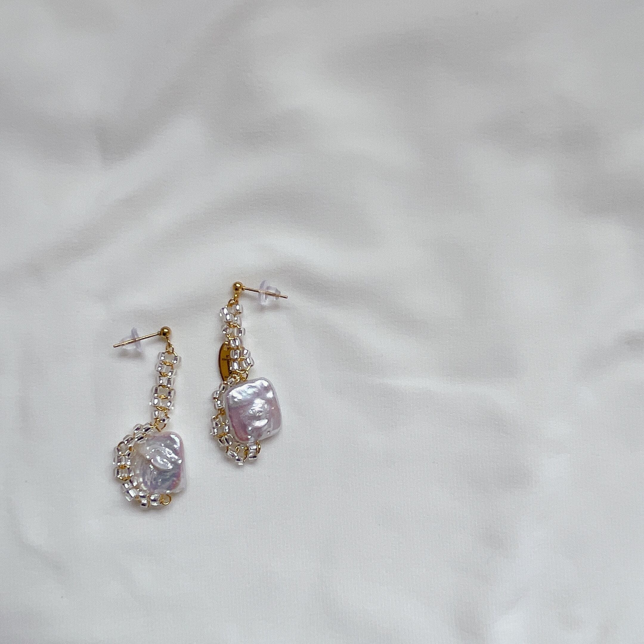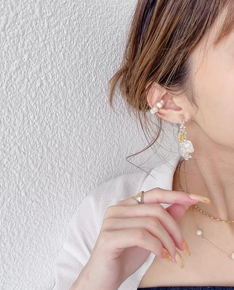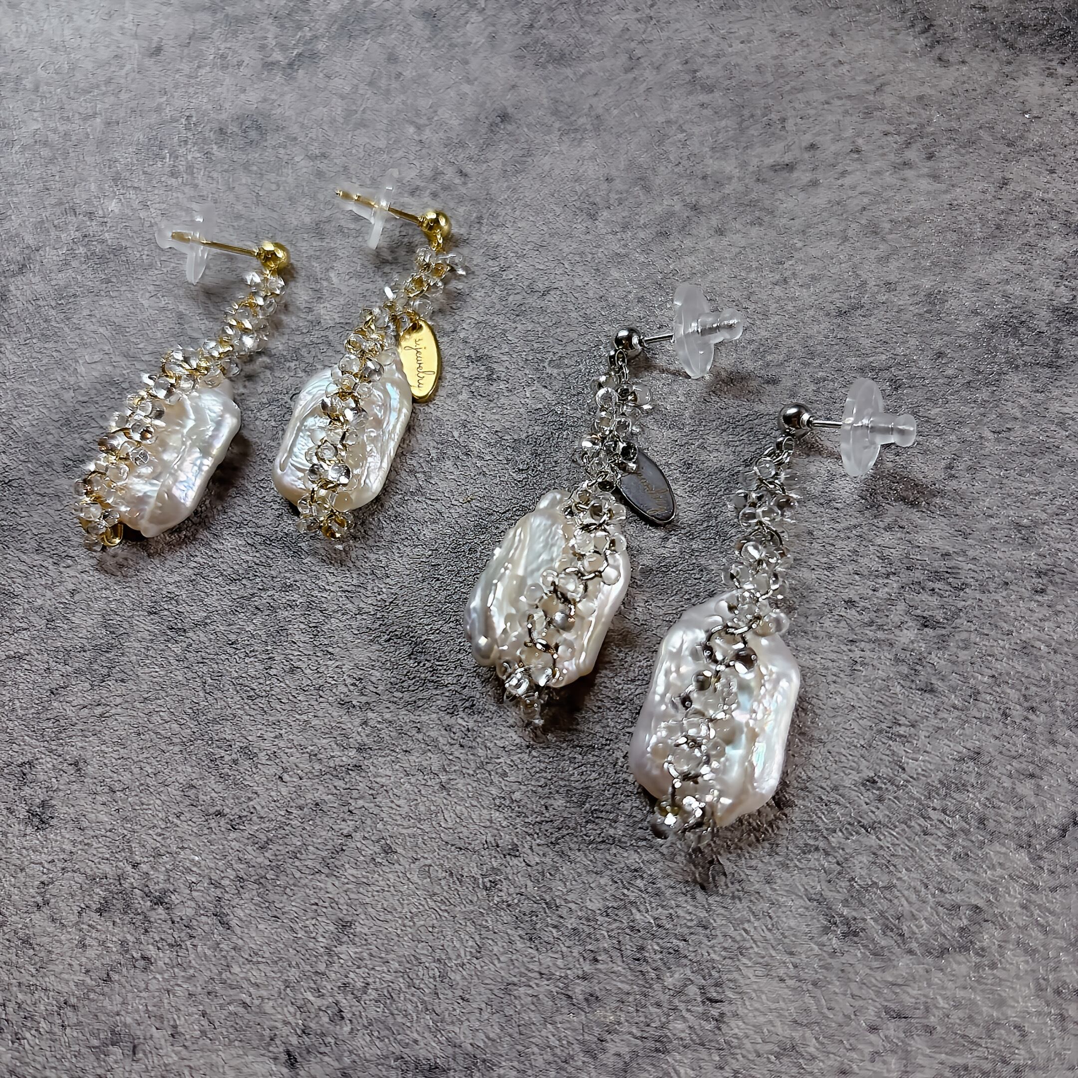 淡水パール✖️クリアビーズが華やかさを引き立たせてくれるデザイン♡ワンピースコーデや、綺麗めなお出かけコーデ、普段使いもしやすい、オケージョン使いもできるように仕上げてます♩