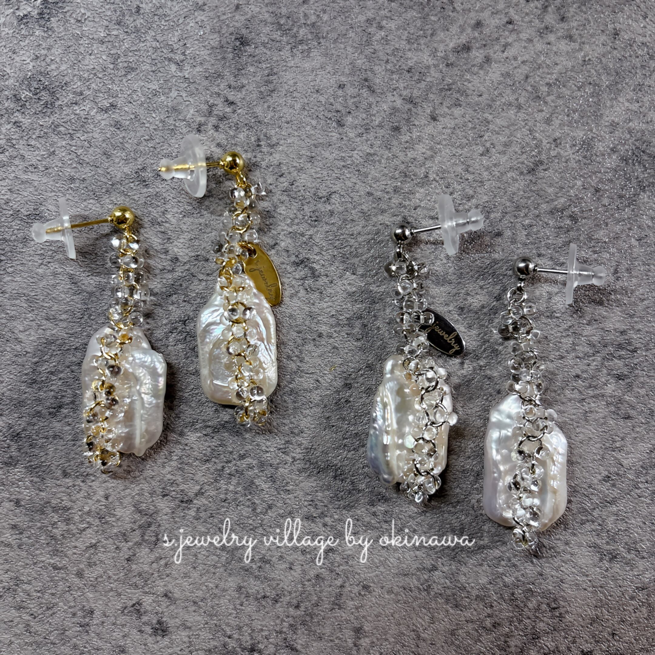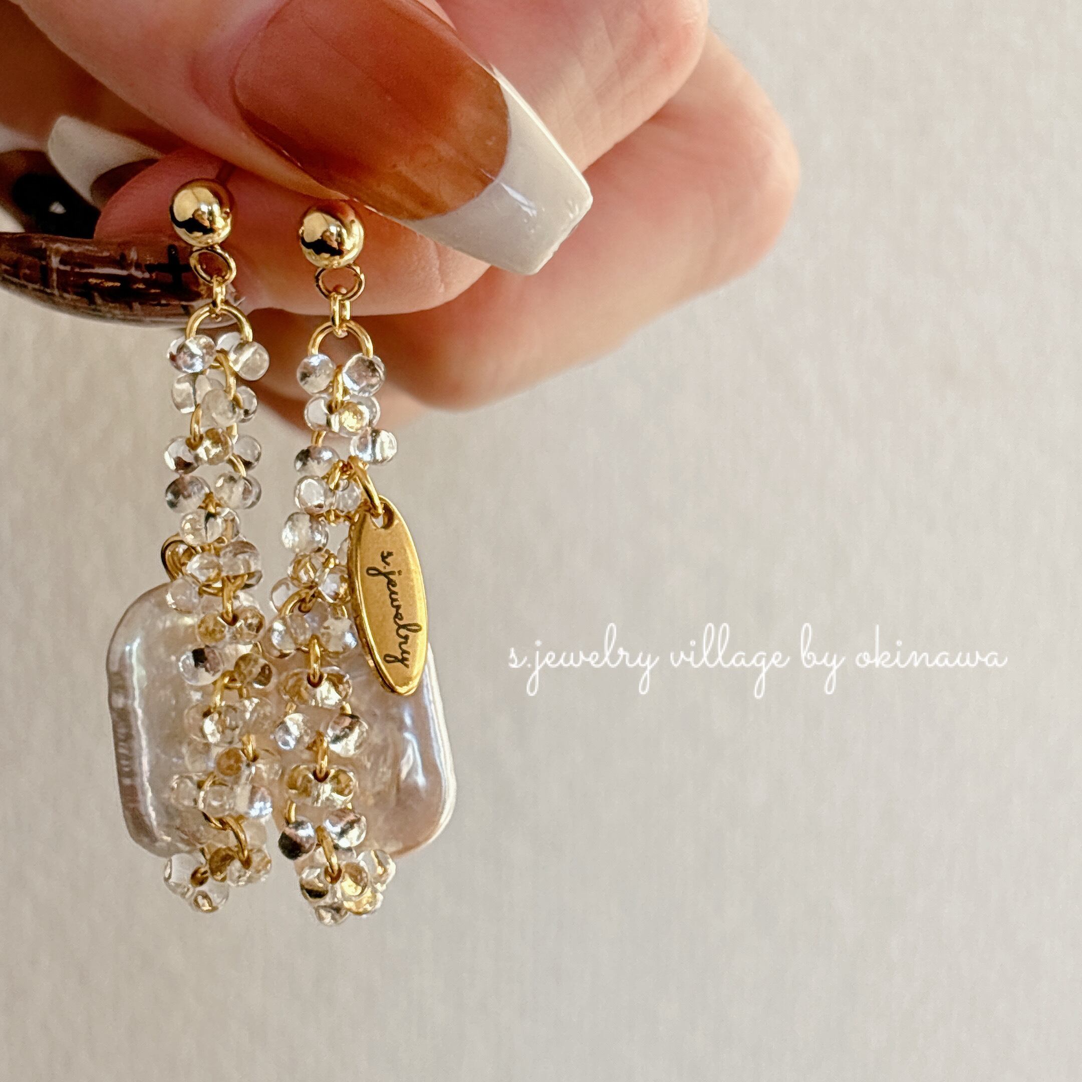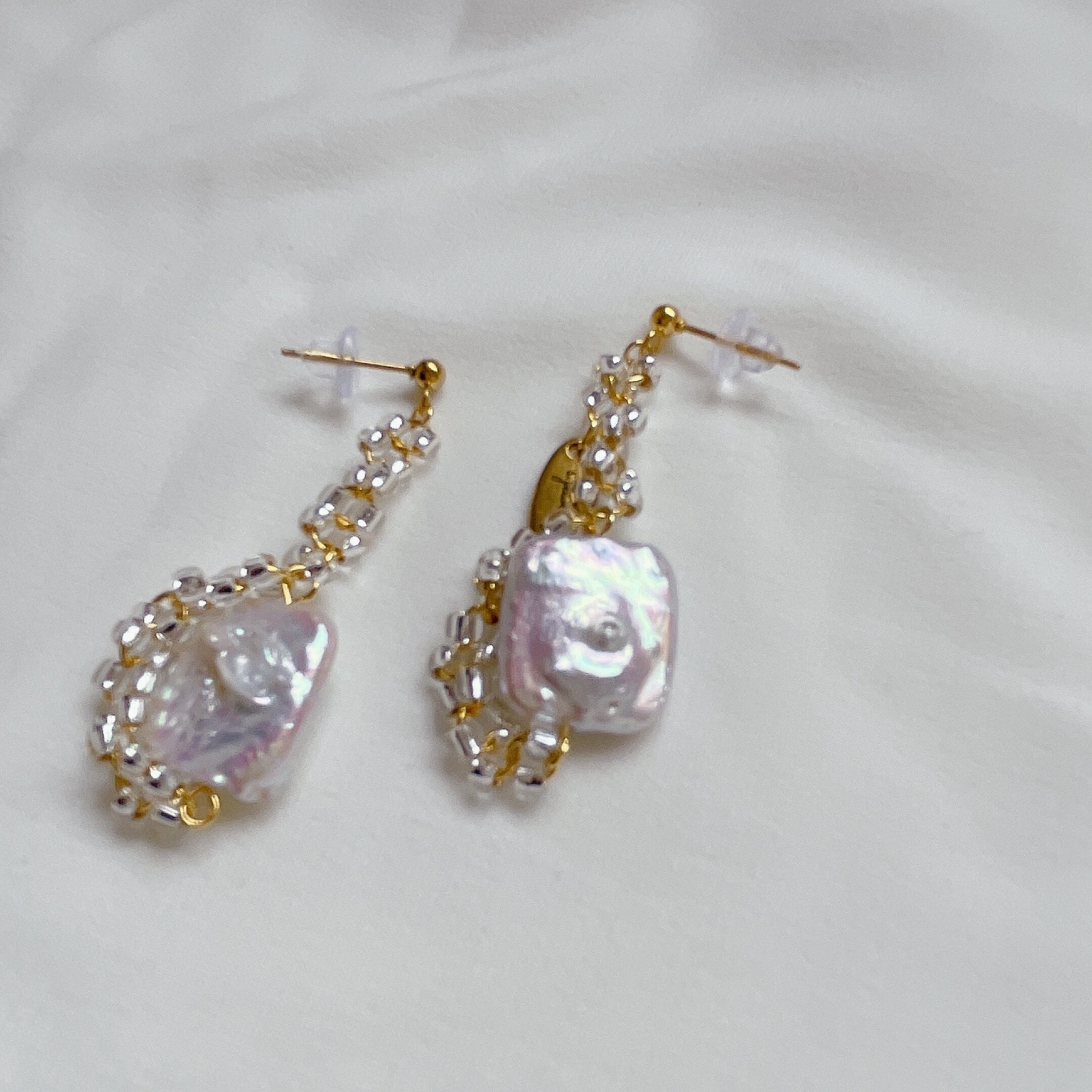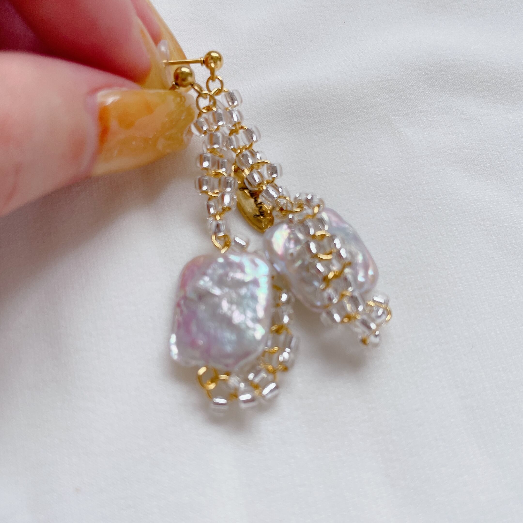 淡水パールビーズピアス | 綺麗めコーデ×大人の揺れるピアス【金属アレルギー対応】