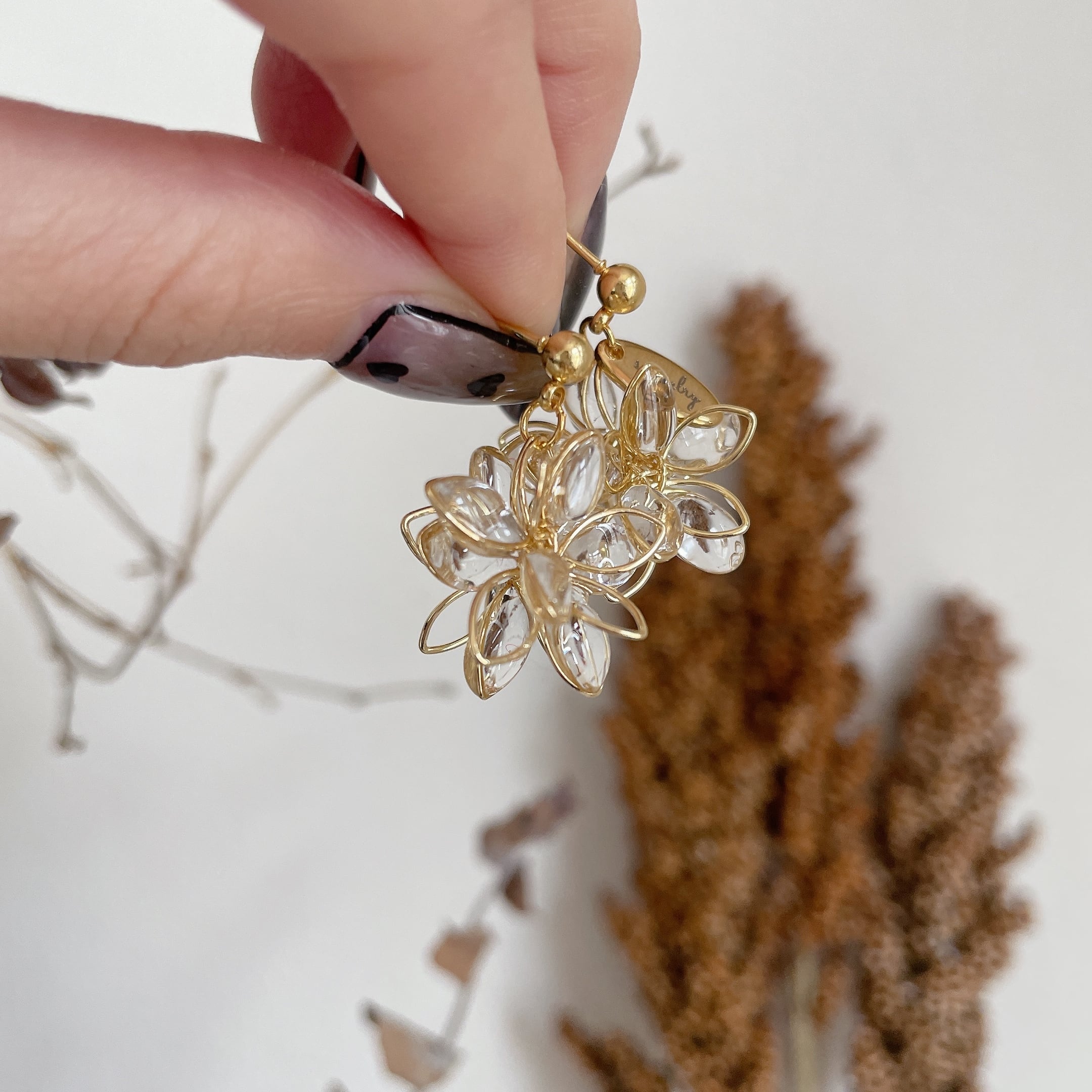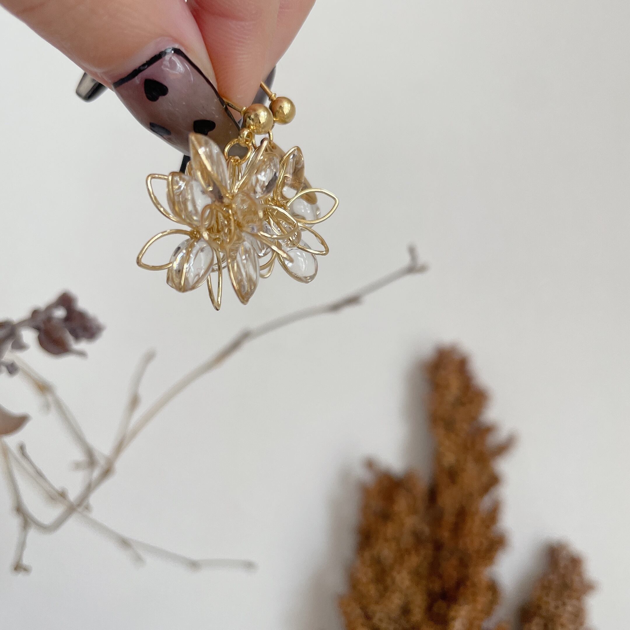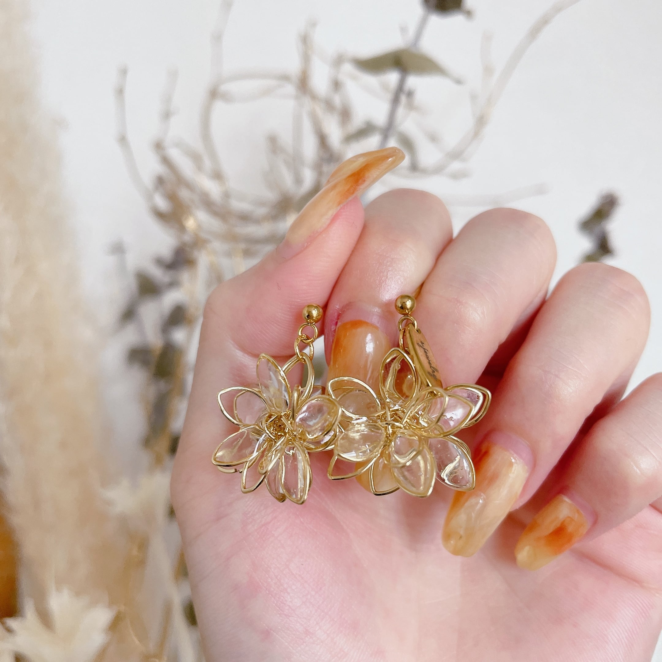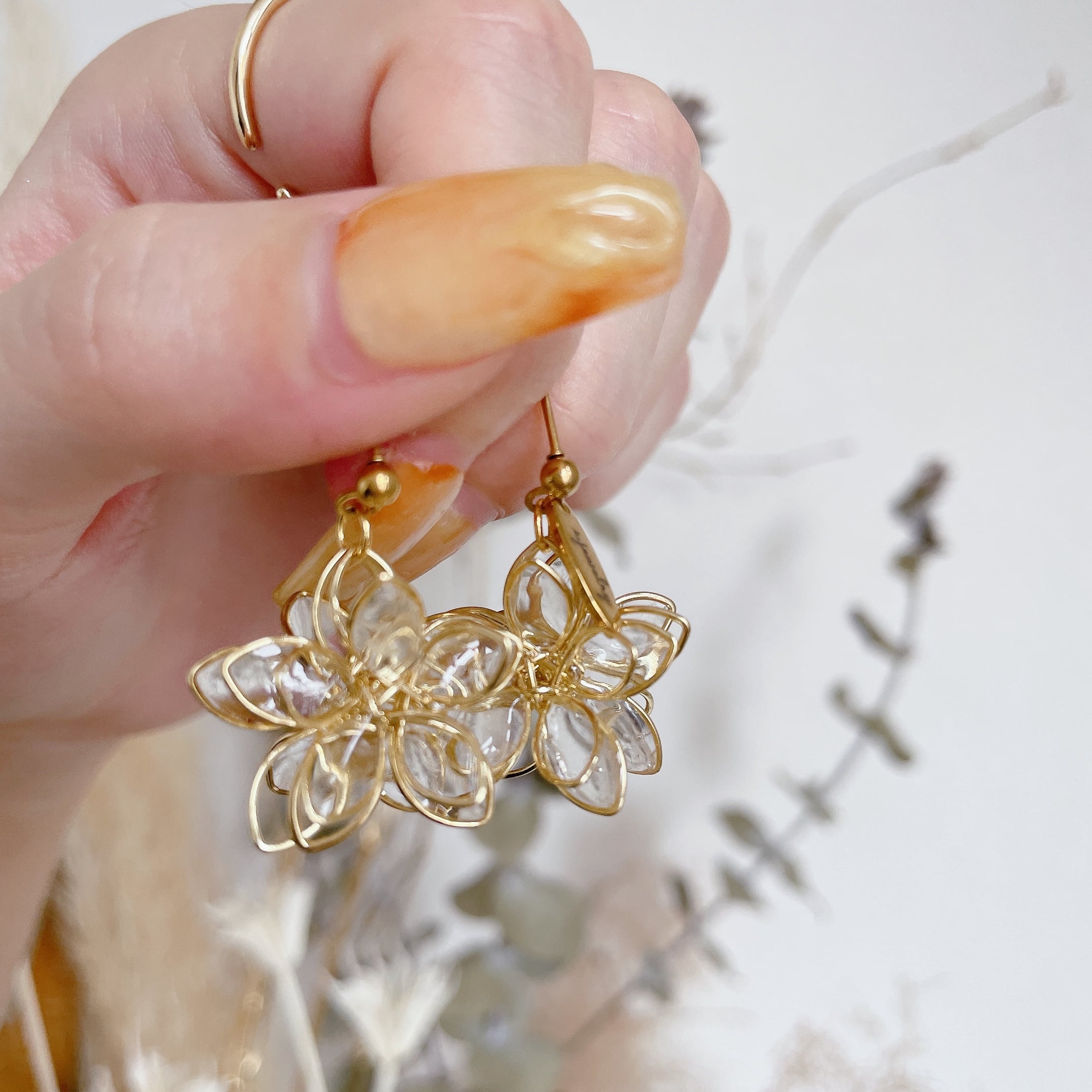 どの角度から見てもお花が楽しめる立体フラワーピアス♡不規則にぷっくりさせた花びらが光の反射で煌めき程よい存在感のアクセサリーです♡