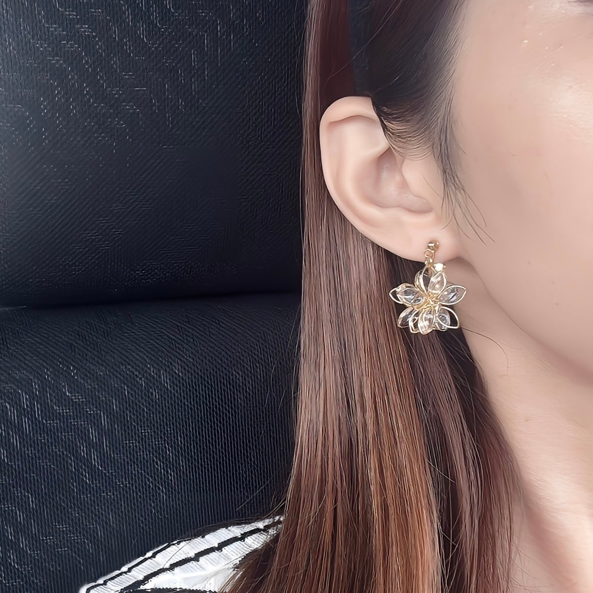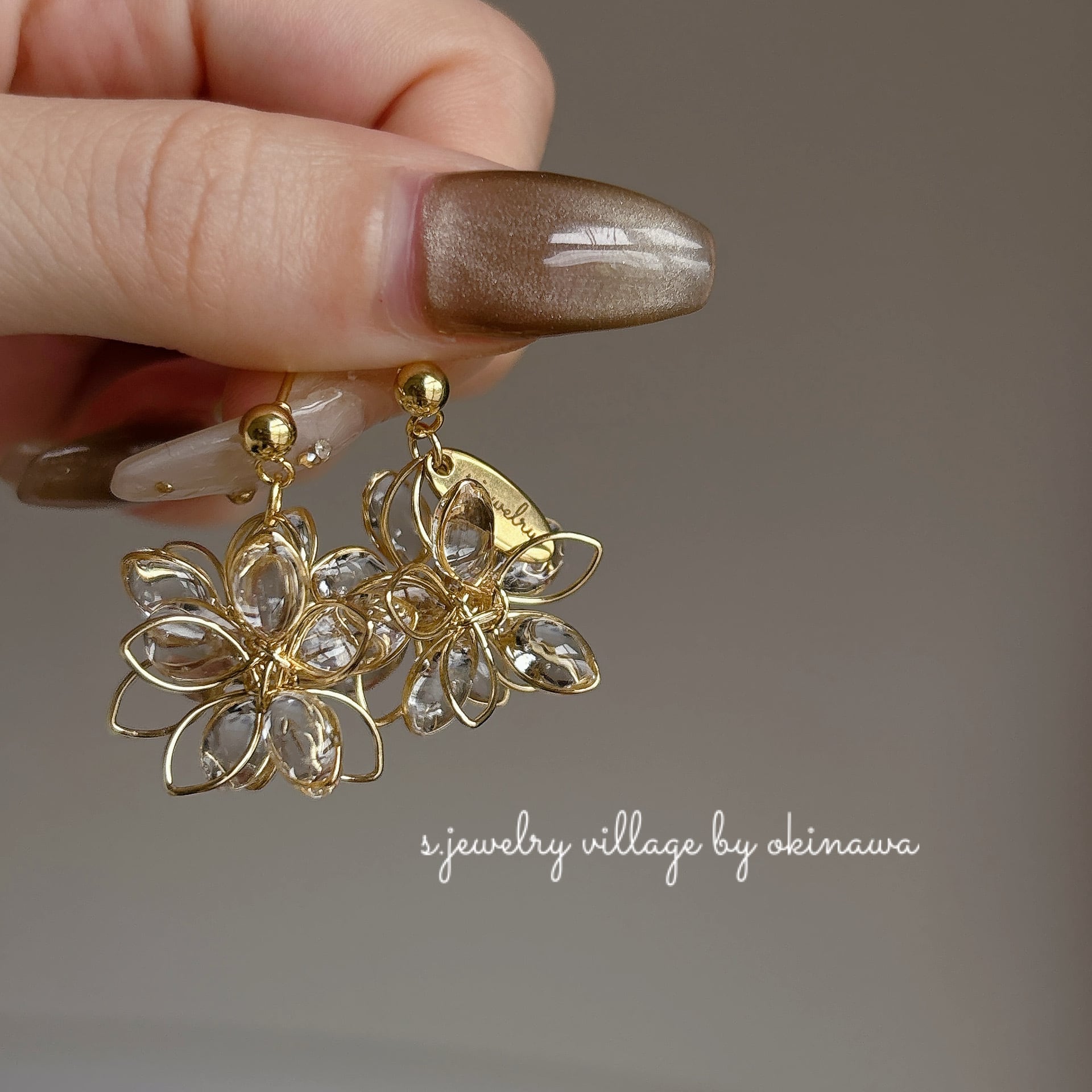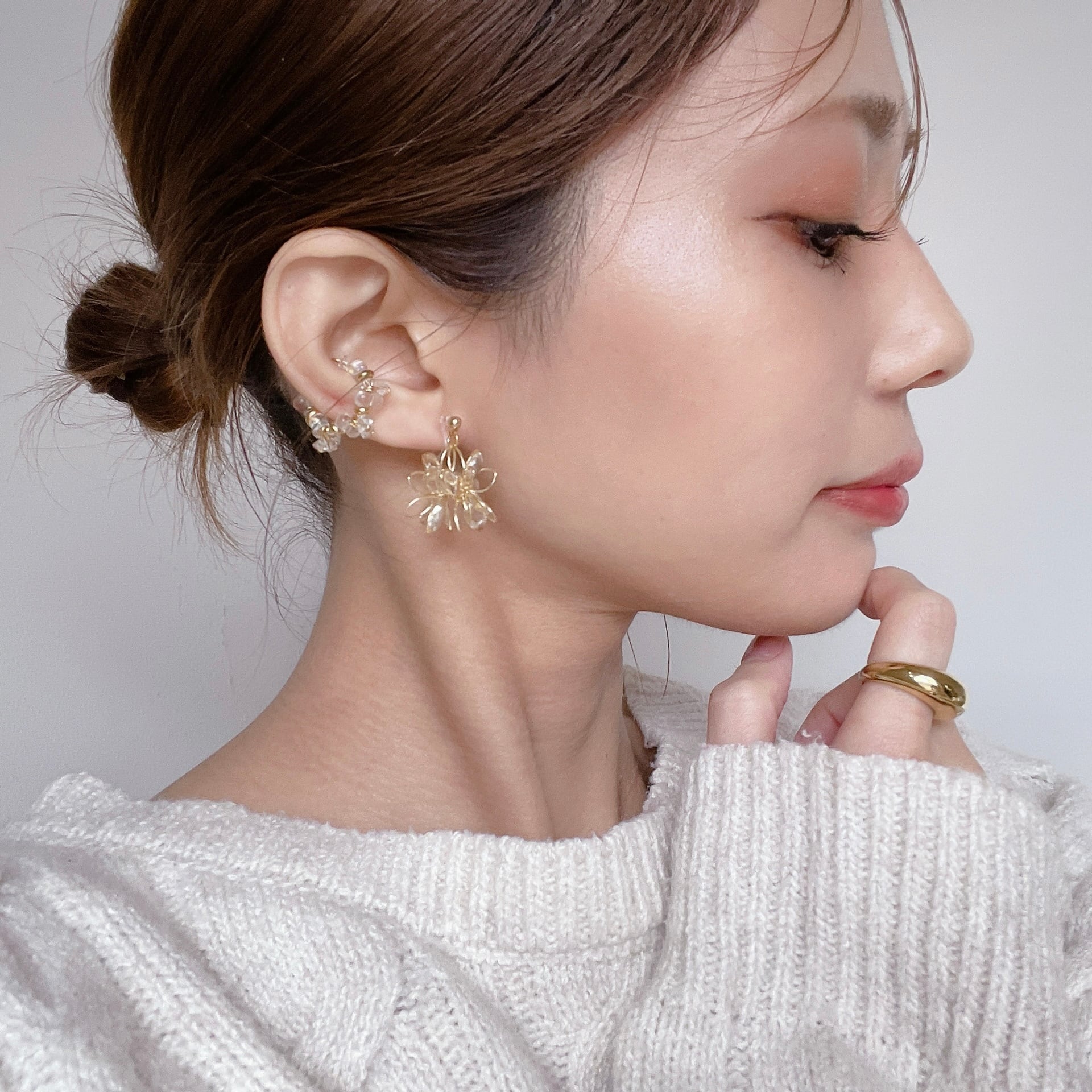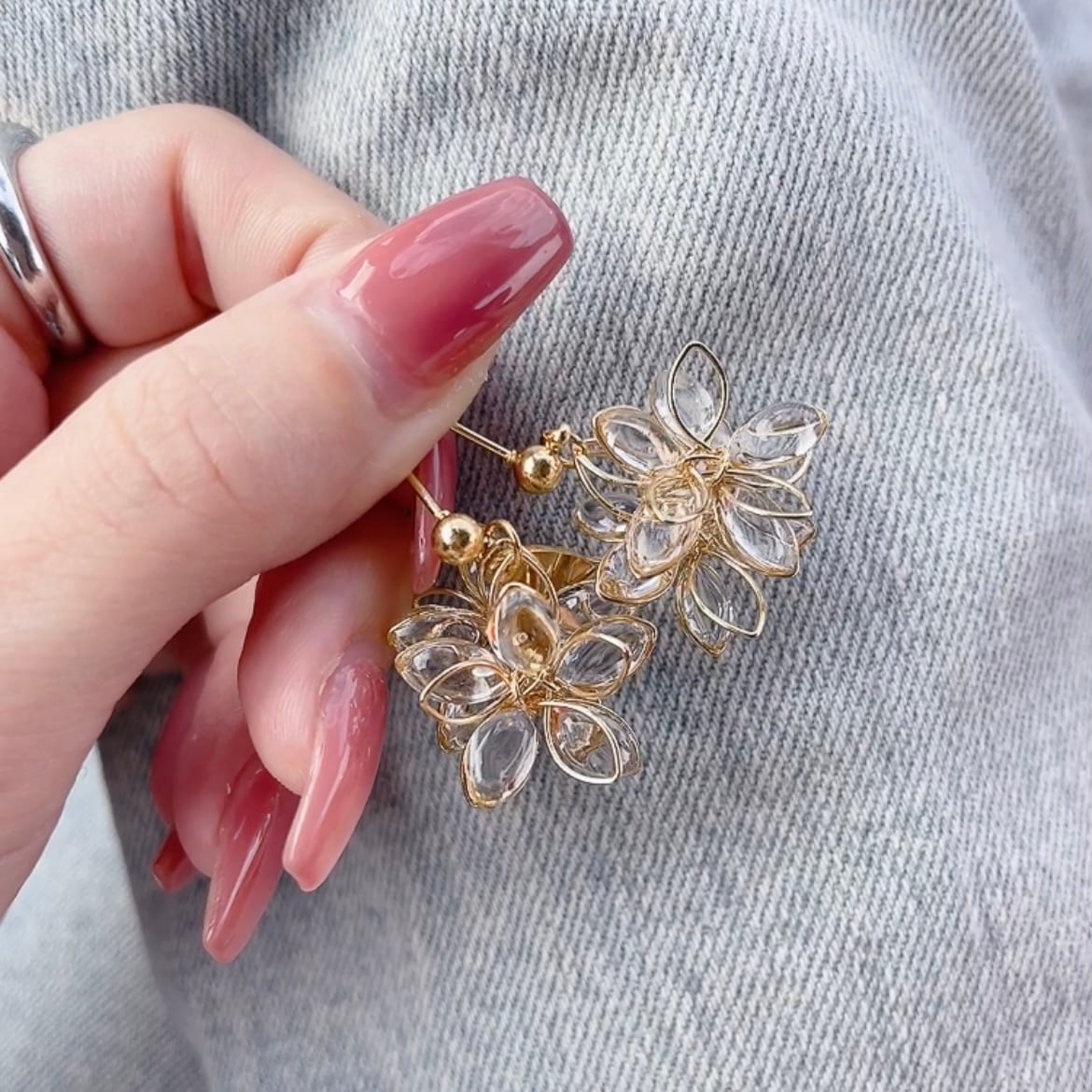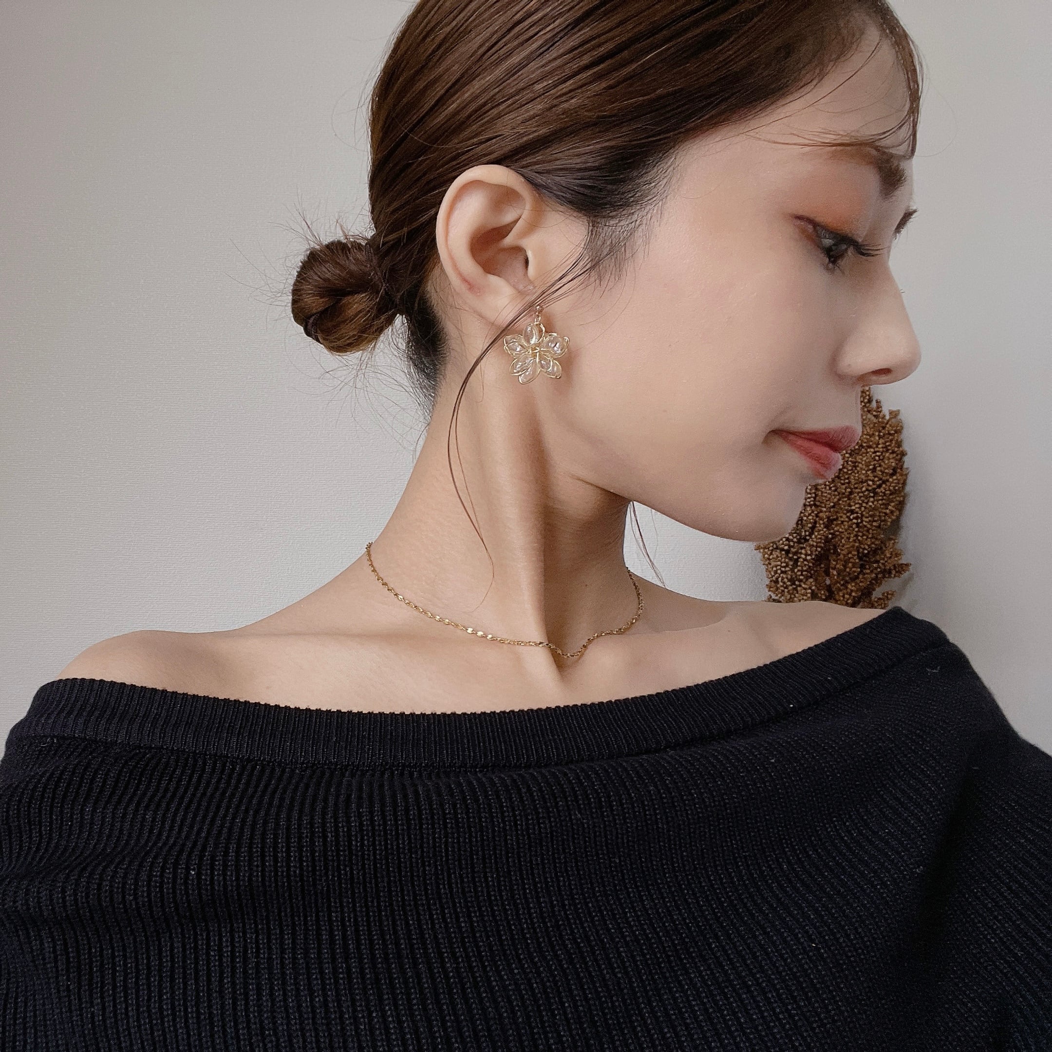 どの角度から見てもお花が楽しめる立体フラワーピアス♡不規則にぷっくりさせた花びらが光の反射で煌めき程よい存在感のアクセサリーです♡