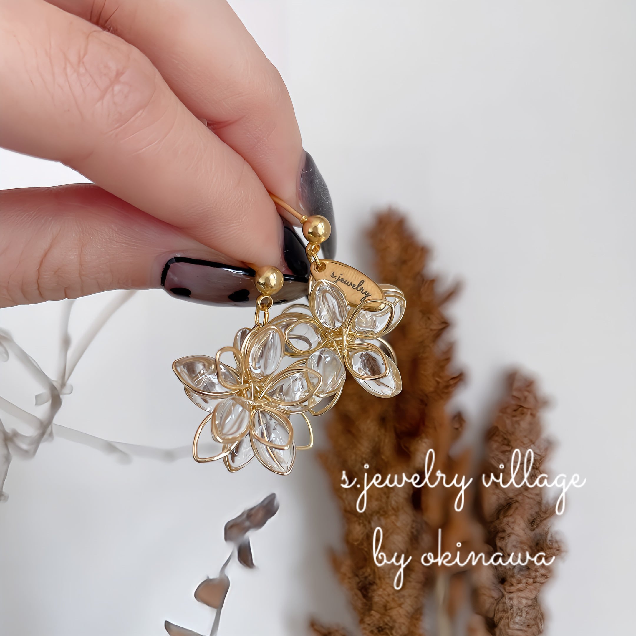 立体2花レジンピアス | ぷっくり透明感×華やか【金属アレルギー対応】