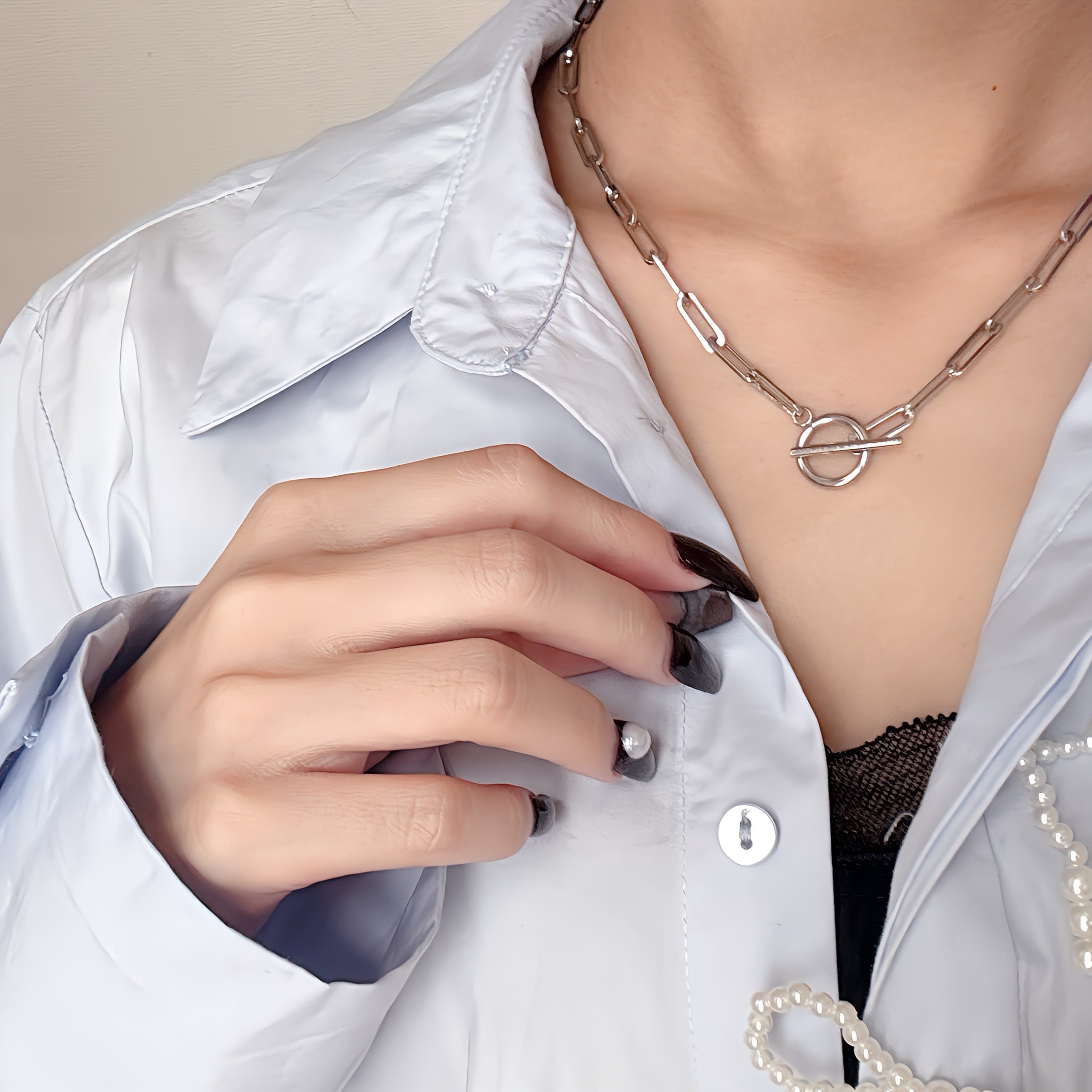 ワイドチェーンマンテルネックレス | 大人カジュアル×存在感【金属アレルギー対応】