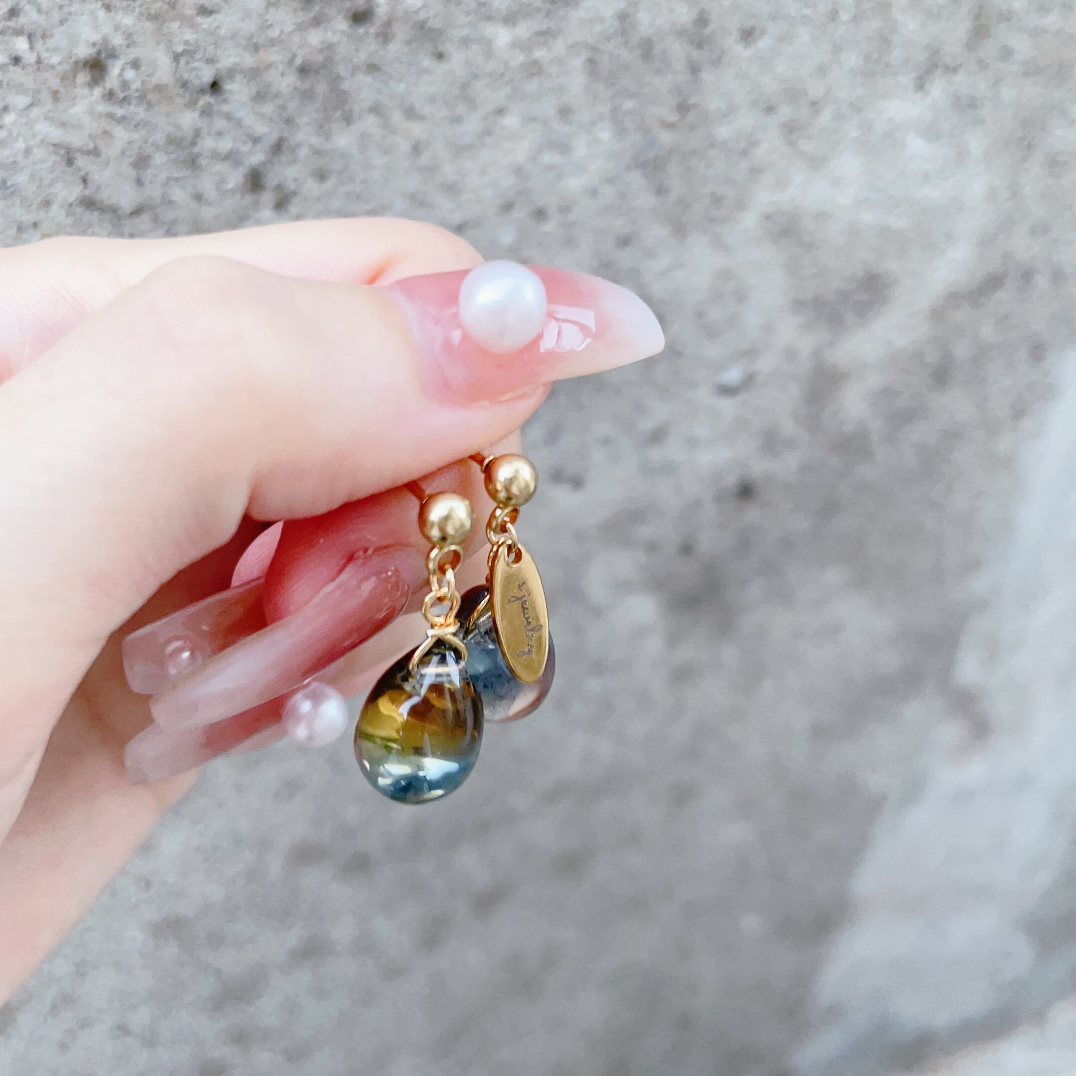 正面からみるとゴールドビーズ一粒ピアス♡揺れる動きでほんのり見える色味が変わるのも楽しめるポイントです!シルバーカラーもご用意しました♡