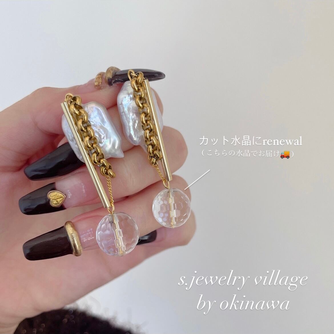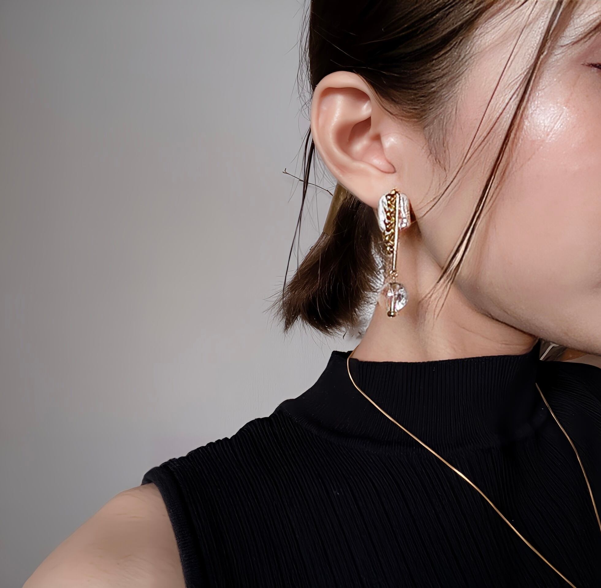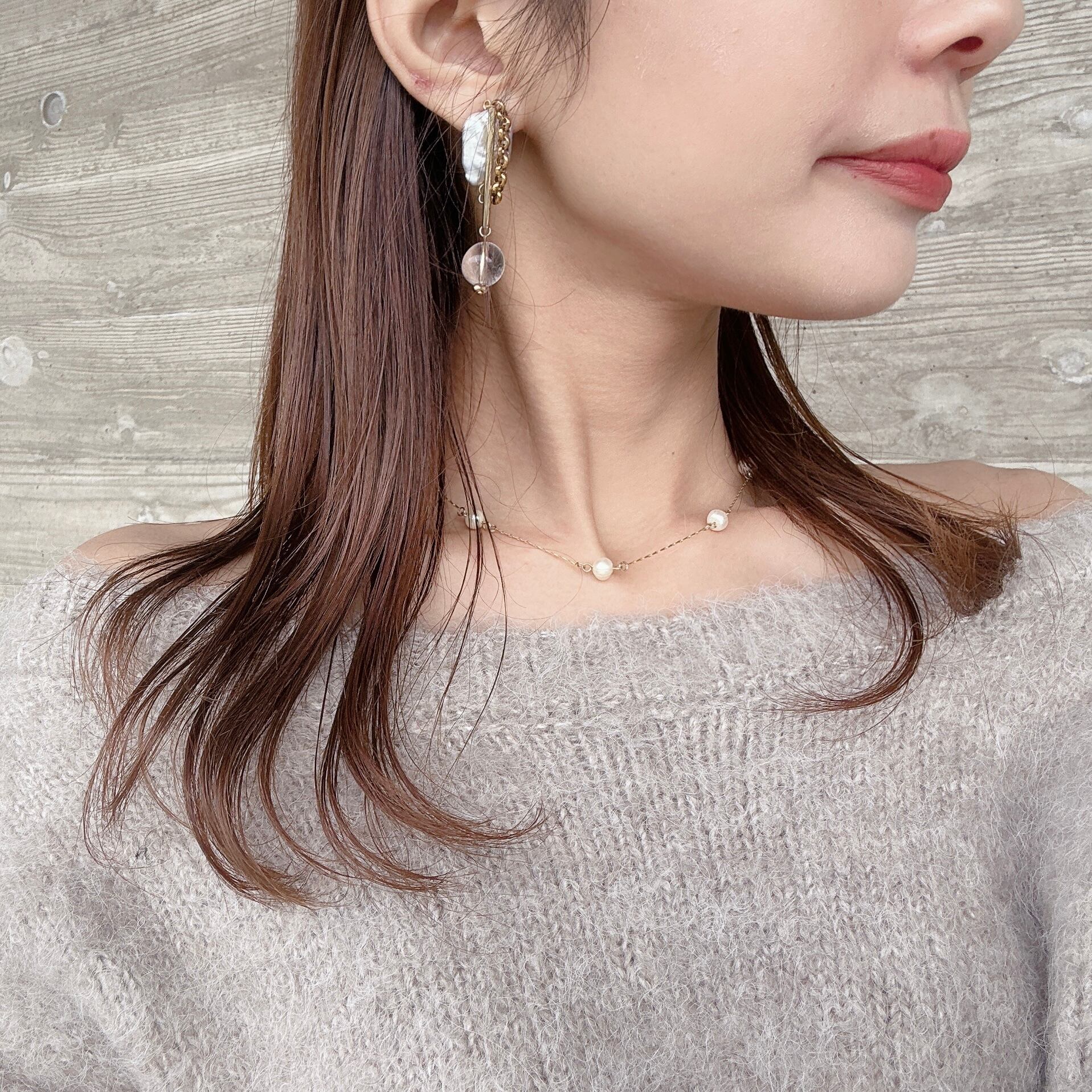 淡水パールと水晶ピアス | 個性はデザイン×綺麗めカジュアル【金属アレルギー対応】