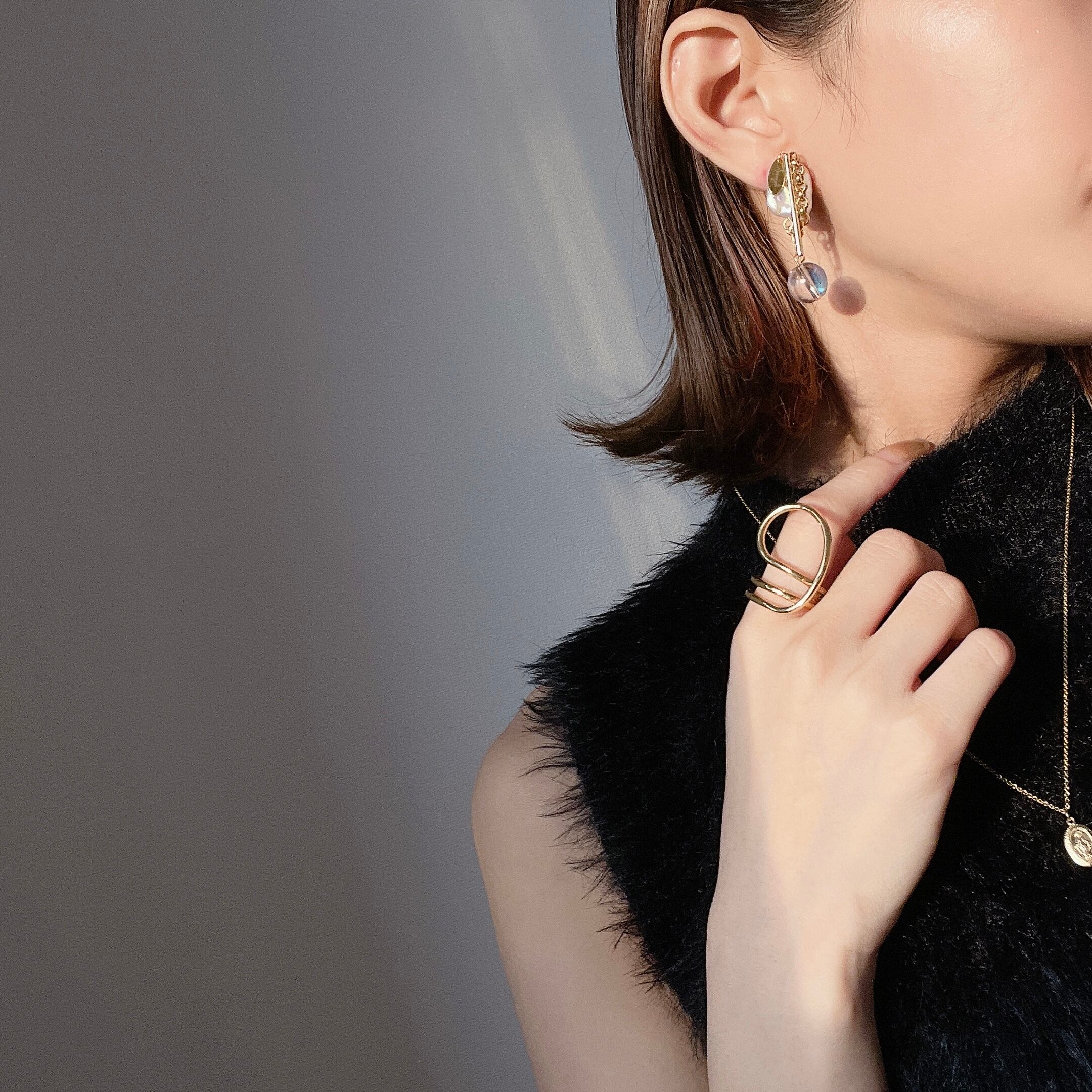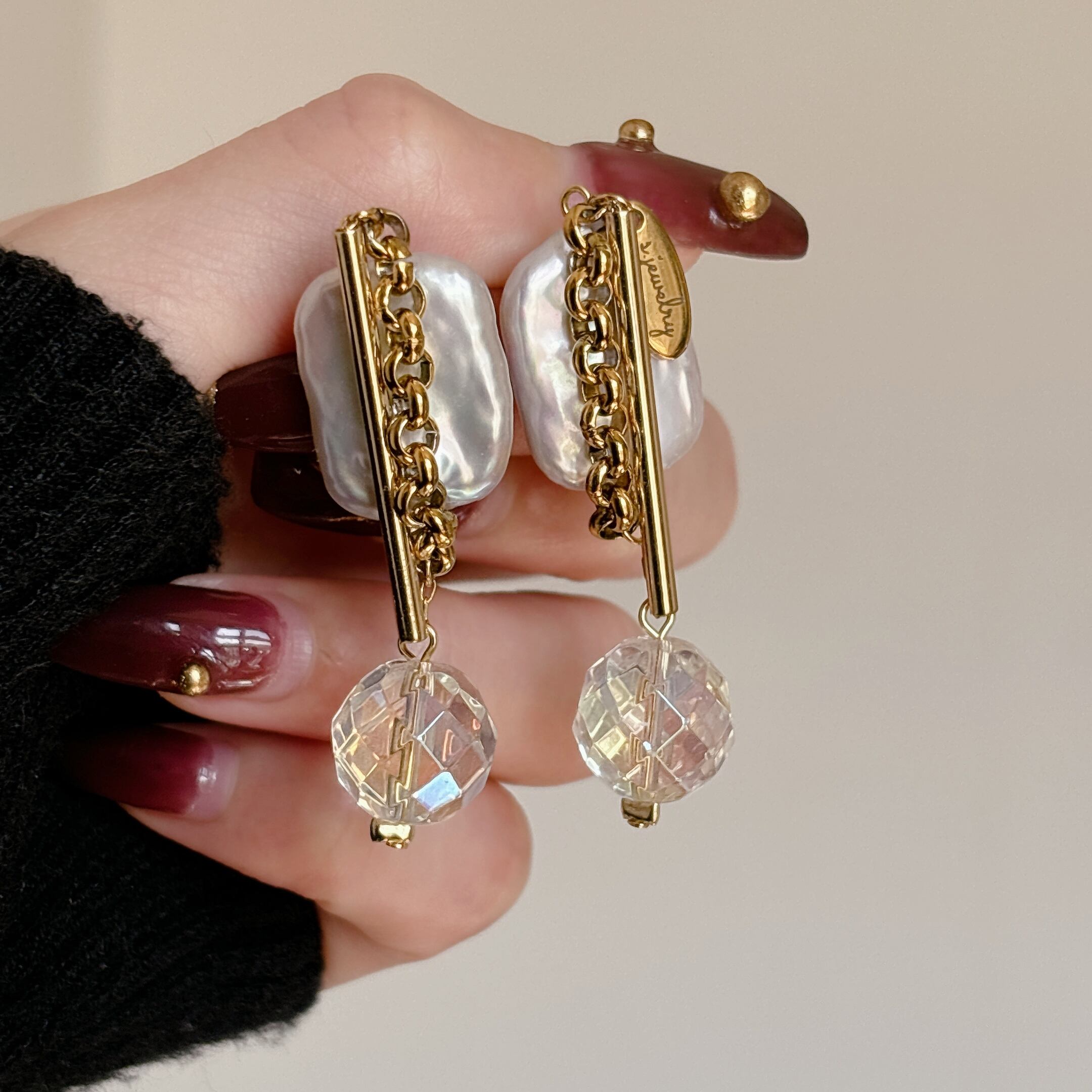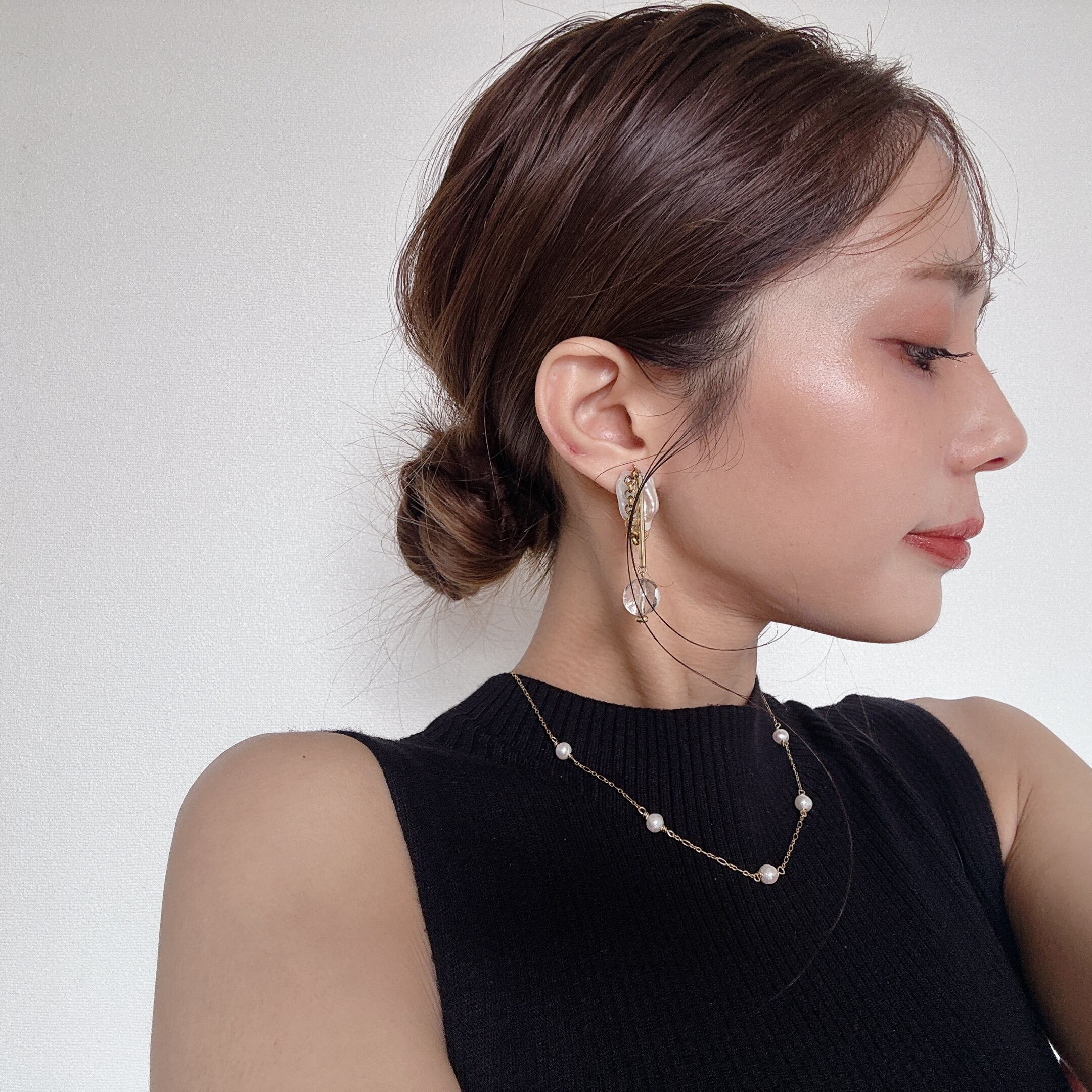 淡水パールと水晶ピアス | 個性はデザイン×綺麗めカジュアル【金属アレルギー対応】