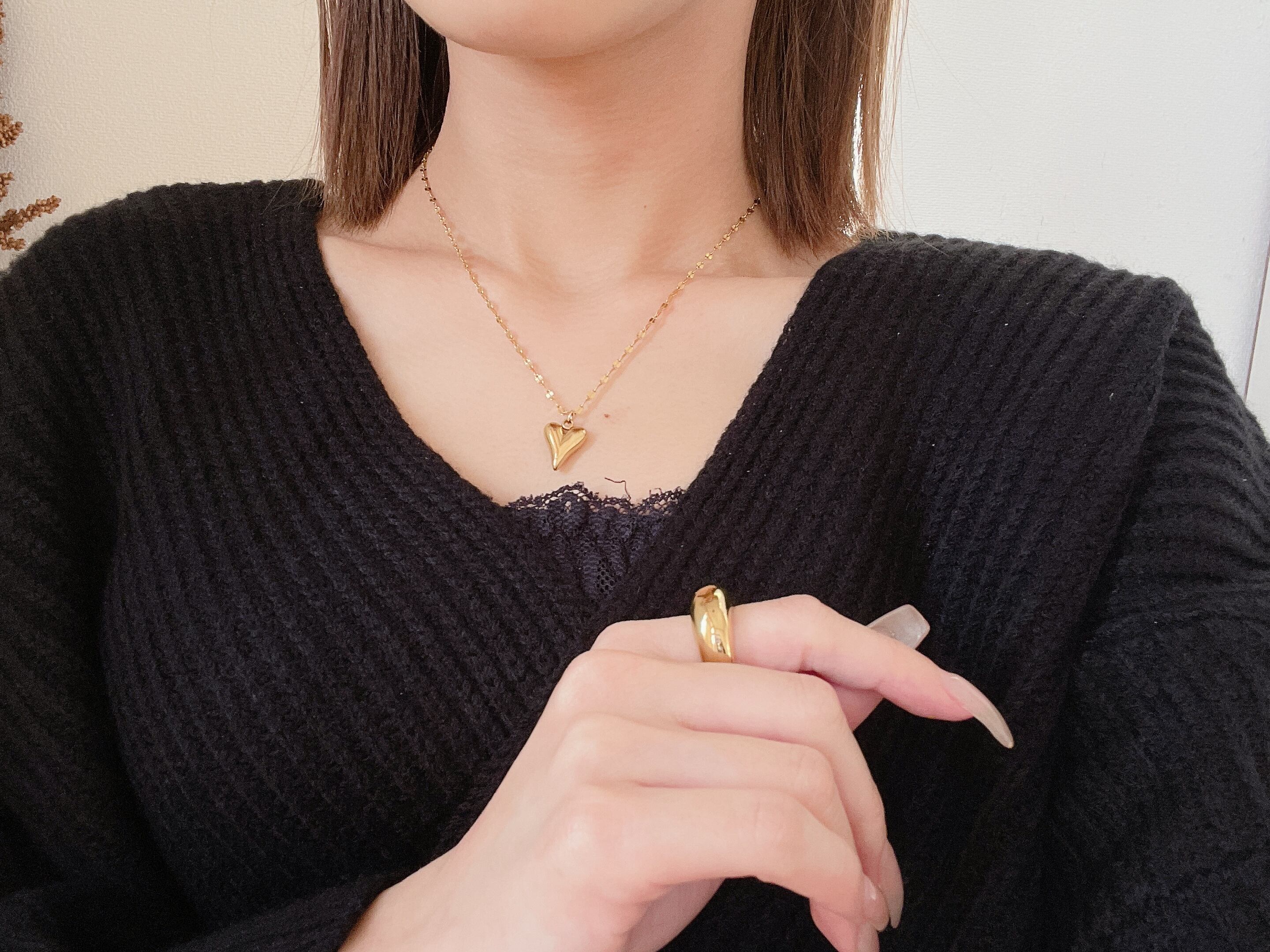 大人な雰囲気のハートネックレス。甘くなりすぎないハートに煌めきのあるペタルチェーンを組み合わせて程よい存在感を楽しめるネックレスです♡