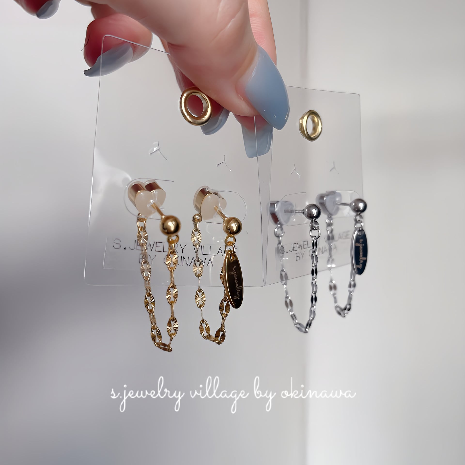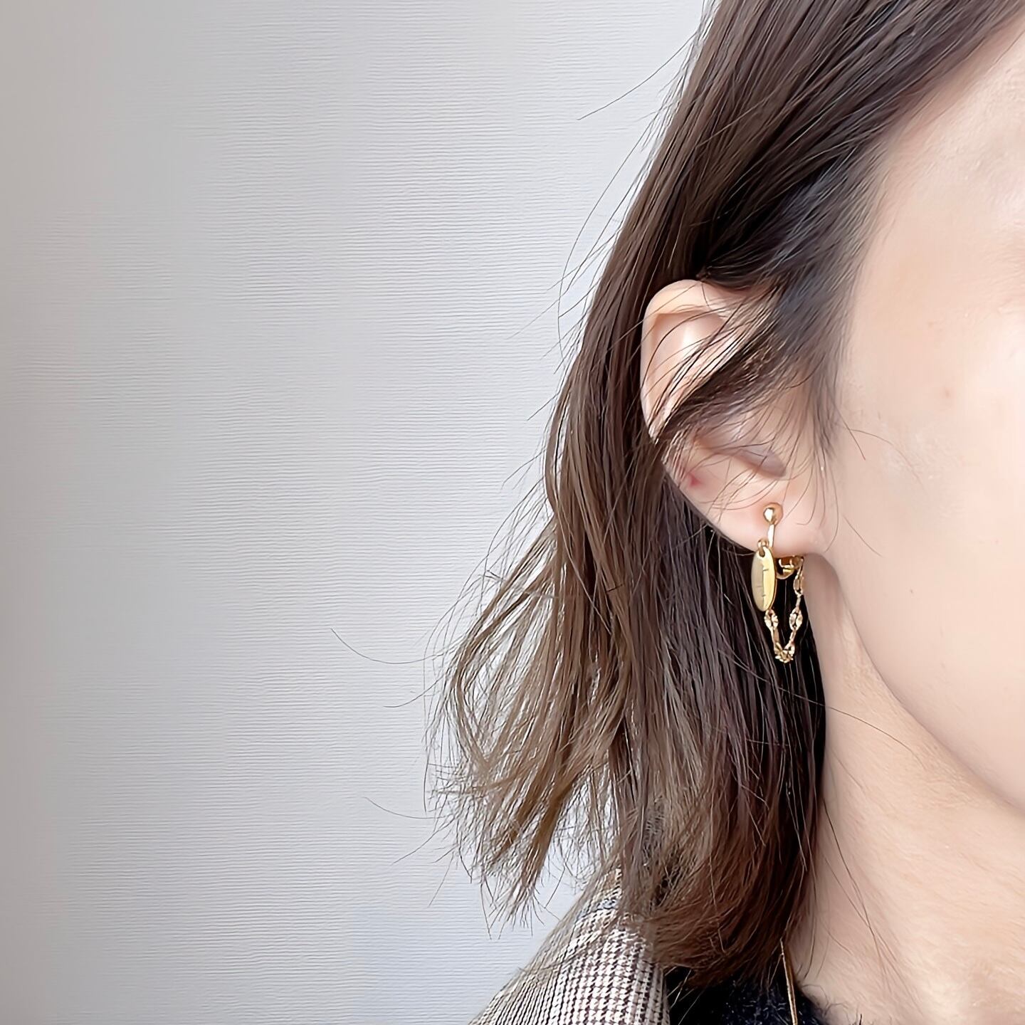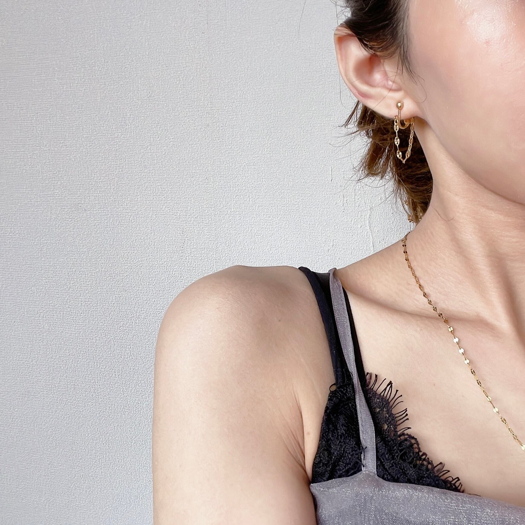 ピアス、イヤリング共にフープっぽさが楽しめるチェーンピアス。シンプルかつさりげない存在感で日常使いのしやすいデザインです♩