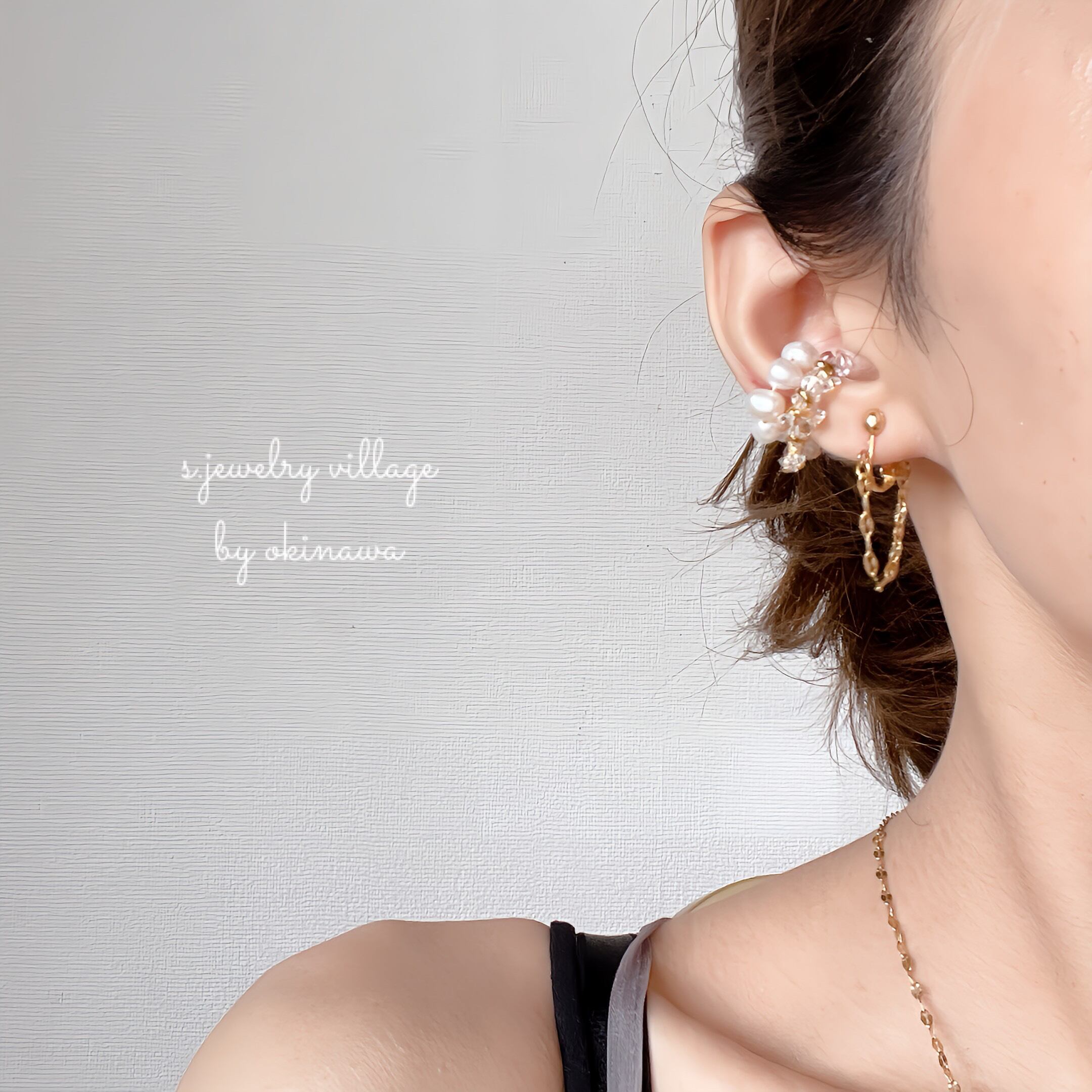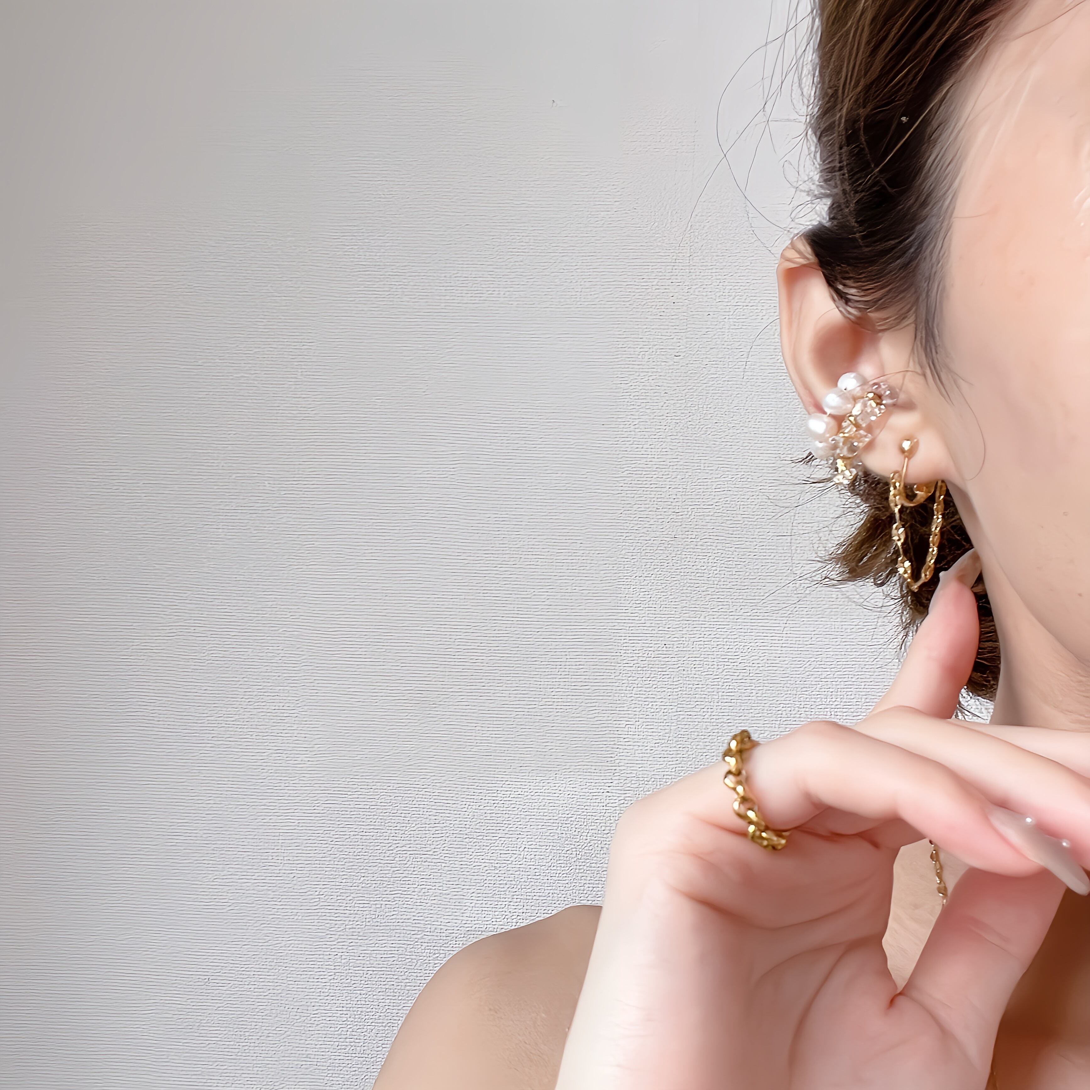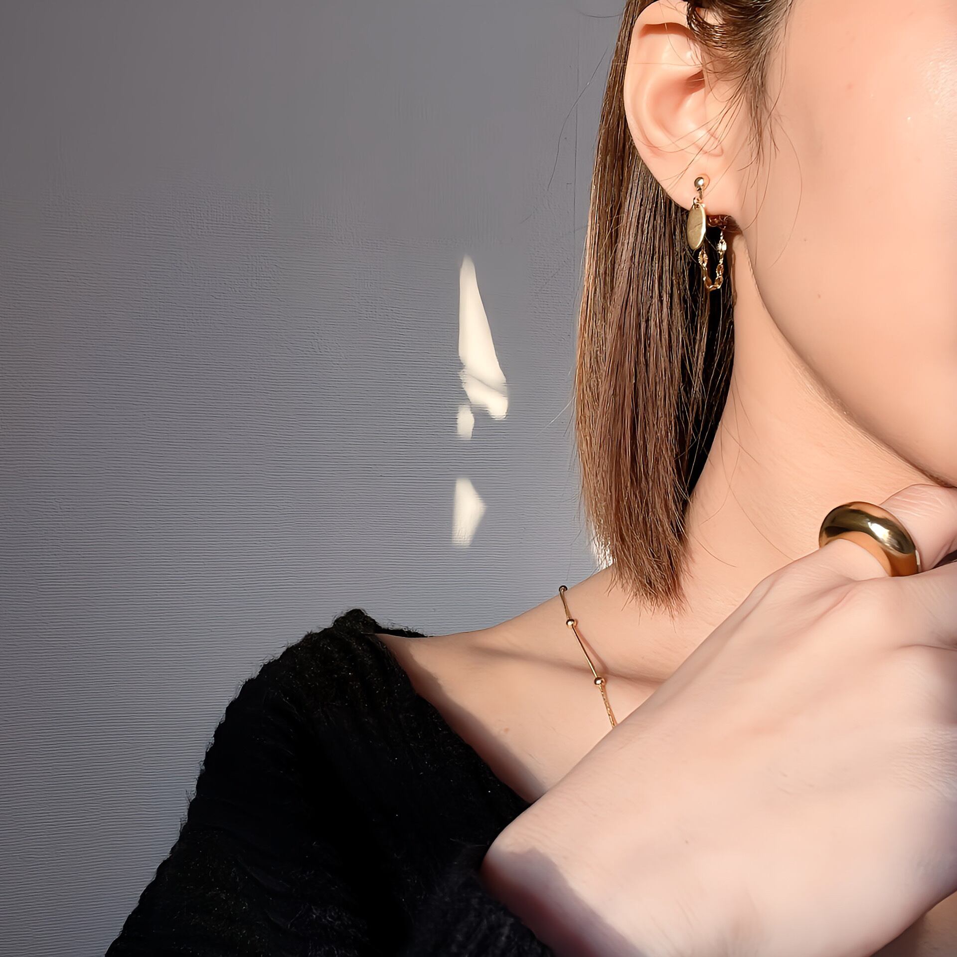 ピアス、イヤリング共にフープっぽさが楽しめるチェーンピアス。シンプルかつさりげない存在感で日常使いのしやすいデザインです♩